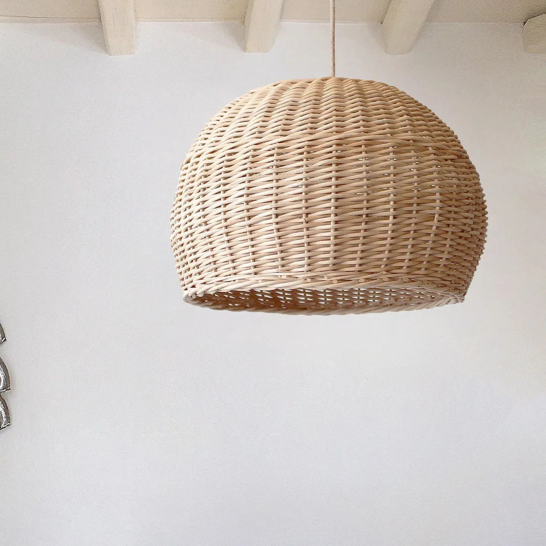 Handwoven Bamboo Rattan Pendant Light Flexible Natural Wood Basket Woven Pendant Lampshade