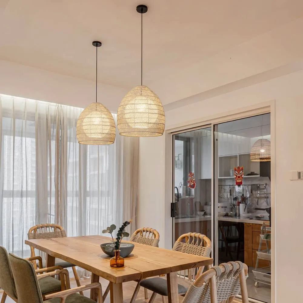 It is made of rattan material, and the rattan art hanging lamp is durable and has long-lasting use. Rattan weaving design makes it a perfect decoration for living rooms, tearooms, hotels, restaurants, parties, etc. Besides, it is easy to install and use., fine workmanship, decorative and beautiful. Unique shape design rattan weaving lamp will make your house look adorable Well, handmade rattan material, very natural and eco-friendly, safe and durable.
