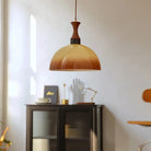 Retro Amber Persimmon Round Cone Oak Glass Farmhouse Pendant Light