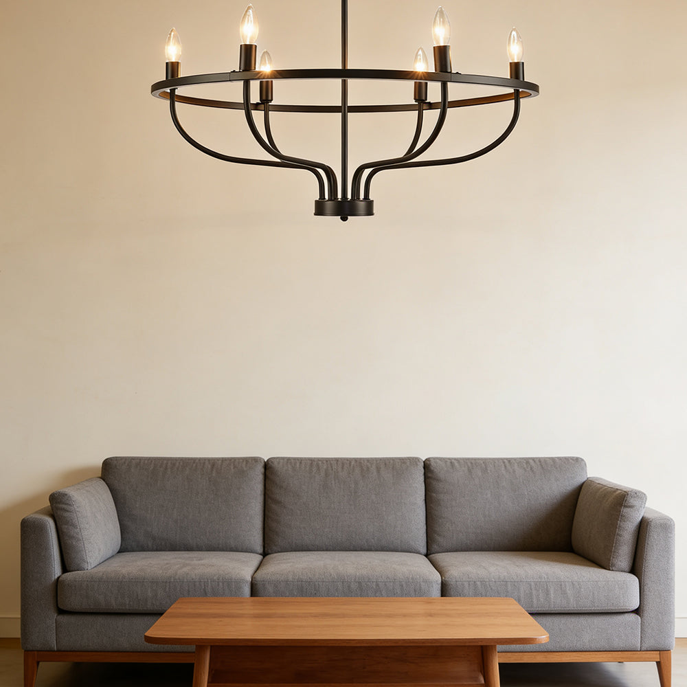 Retro Country Round Candle Black Iron Chandelier elevate kitchens, living & dining rooms with refined simplicity. Sturdy iron build, sleek finishes, and minimalist design—seamlessly merging practical function with quiet elegance.