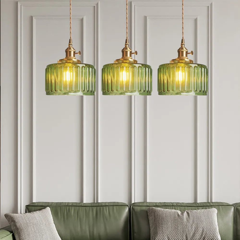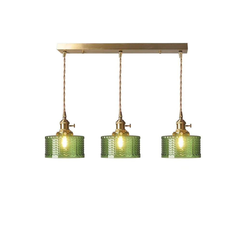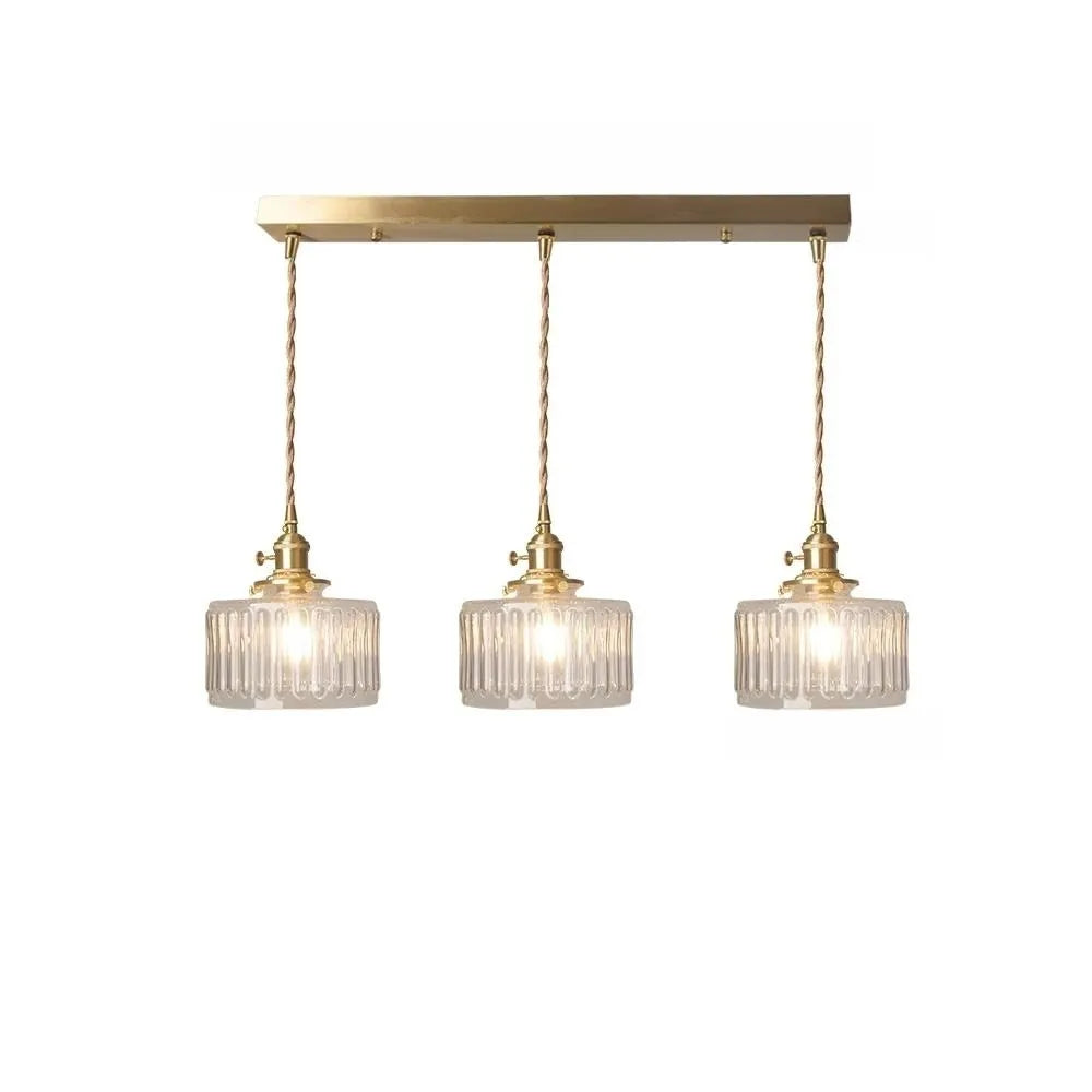 Retro Exquisite Brass Lantern Glass Pendant Light