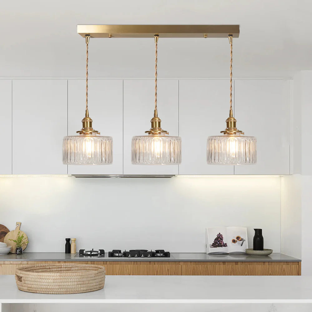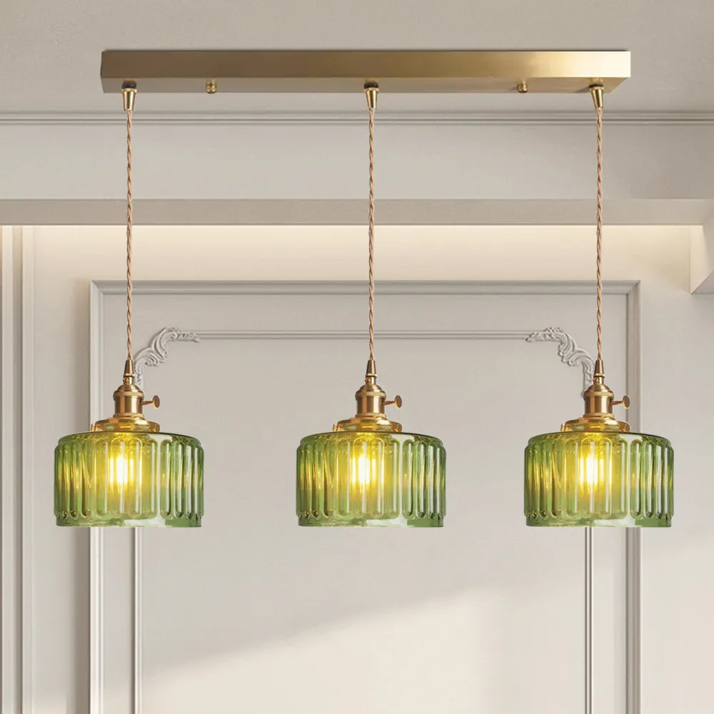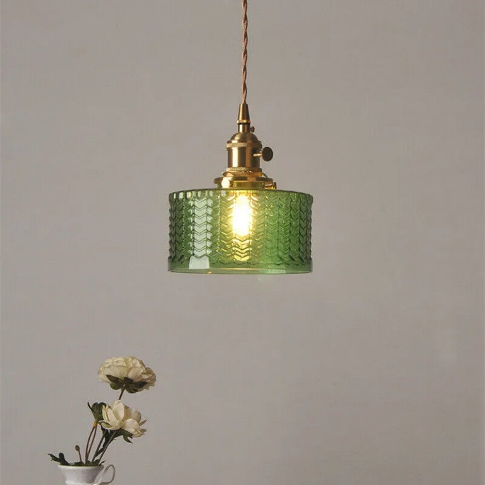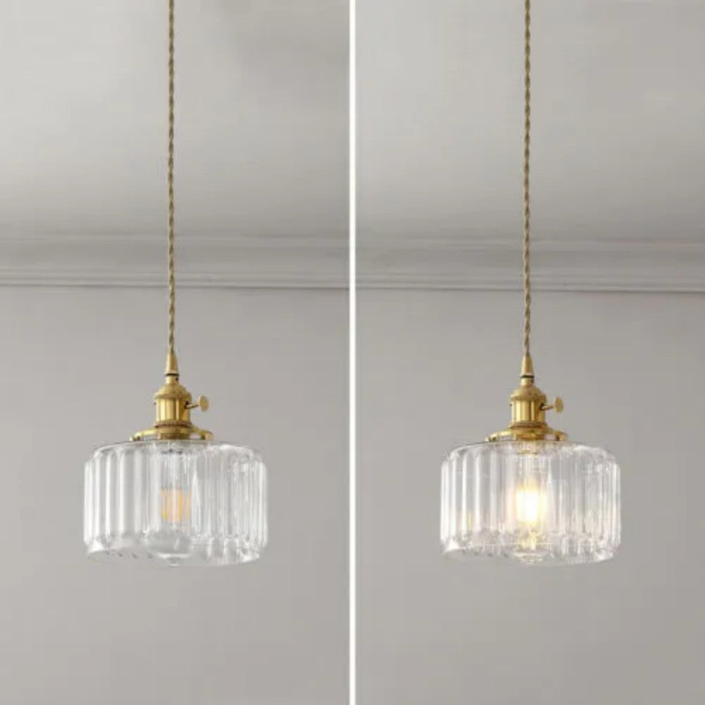 Retro Exquisite Brass Lantern Glass Pendant Light