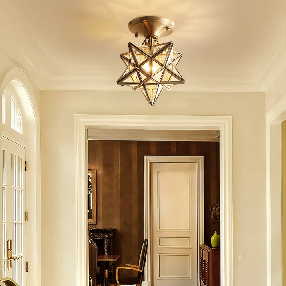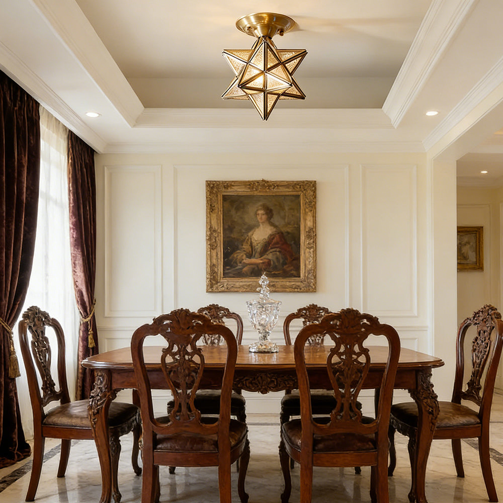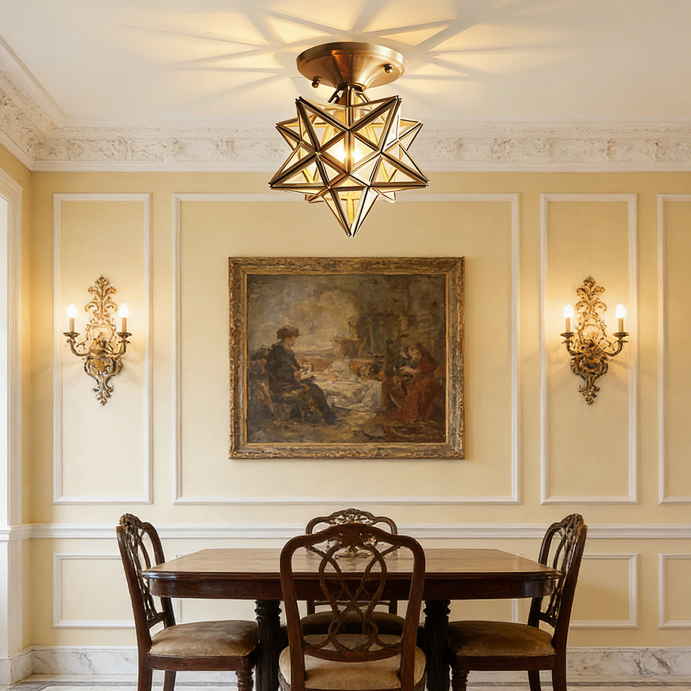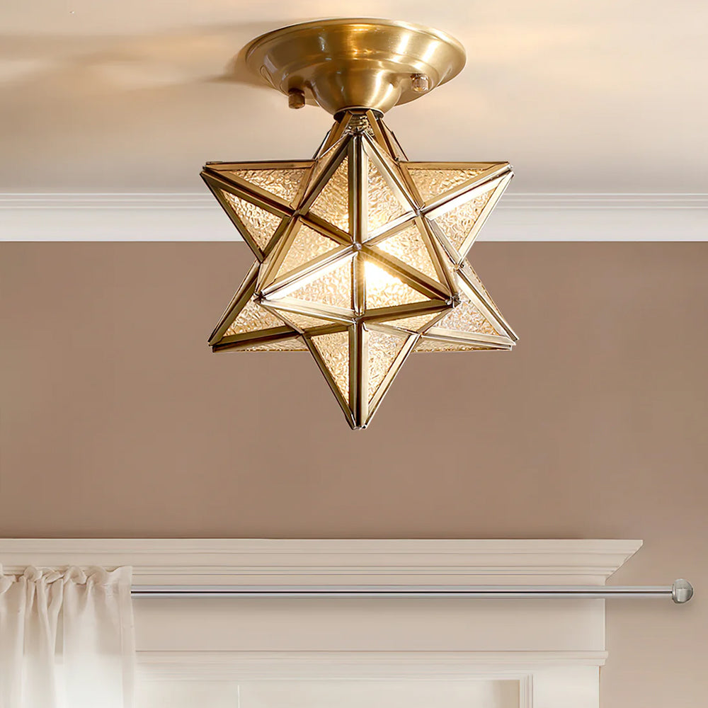 Premium indoor lighting with unique design! Top-tier brass ensures durability + classic elegance, while the detailed glass pentagram emits warm soft glow to create a cozy home atmosphere.