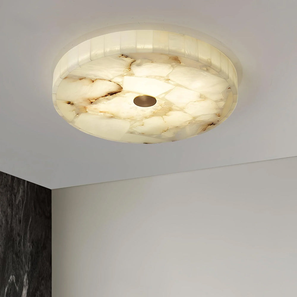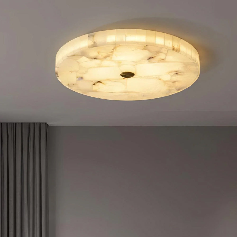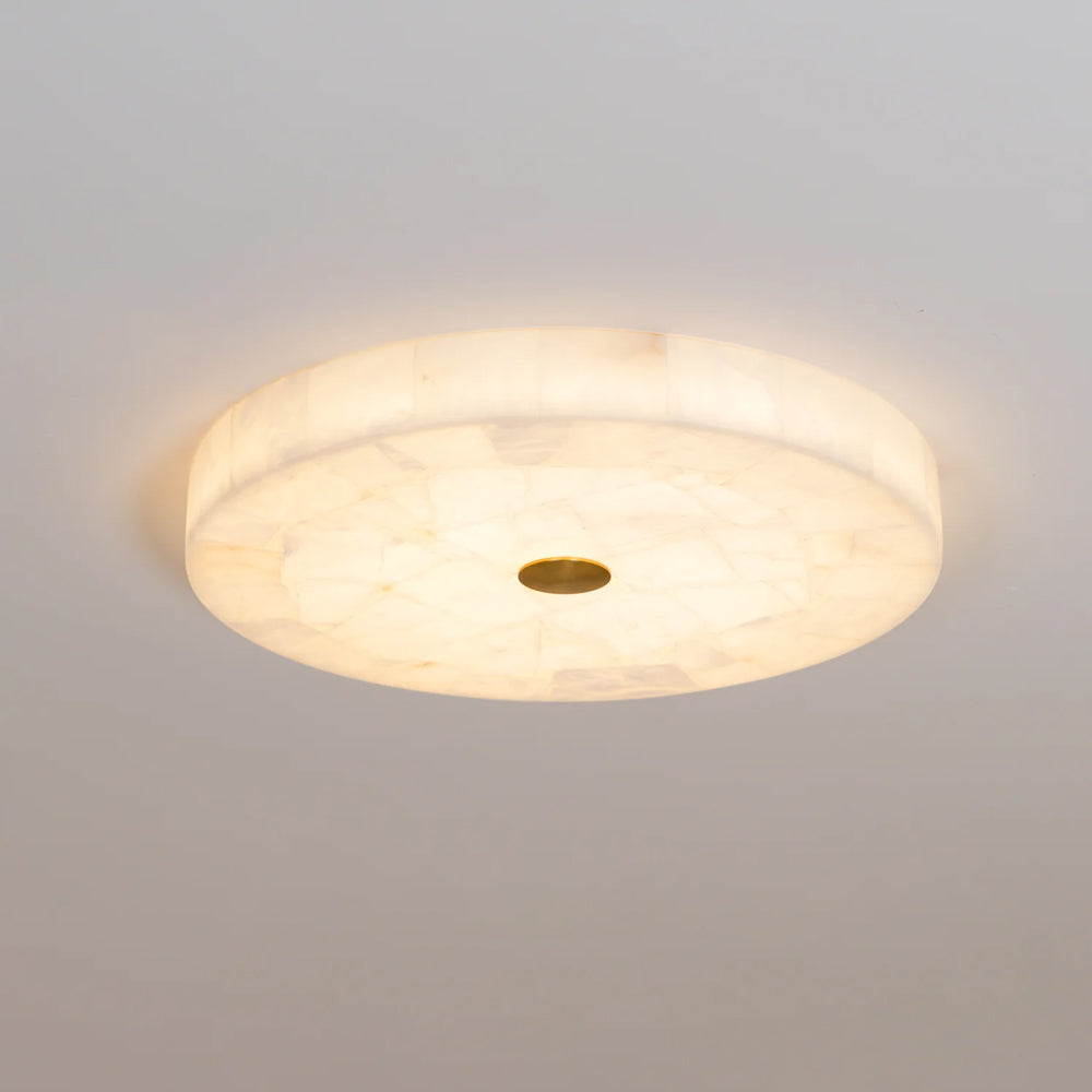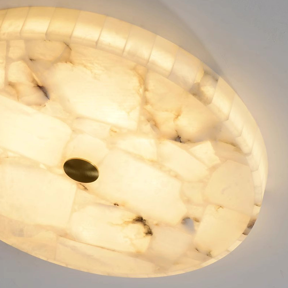 Elevate your interior with understated luxury! Genuine alabaster construction delivers a soft, warm glow, while its sleek round design blends seamlessly into any room for an inviting ambiance.