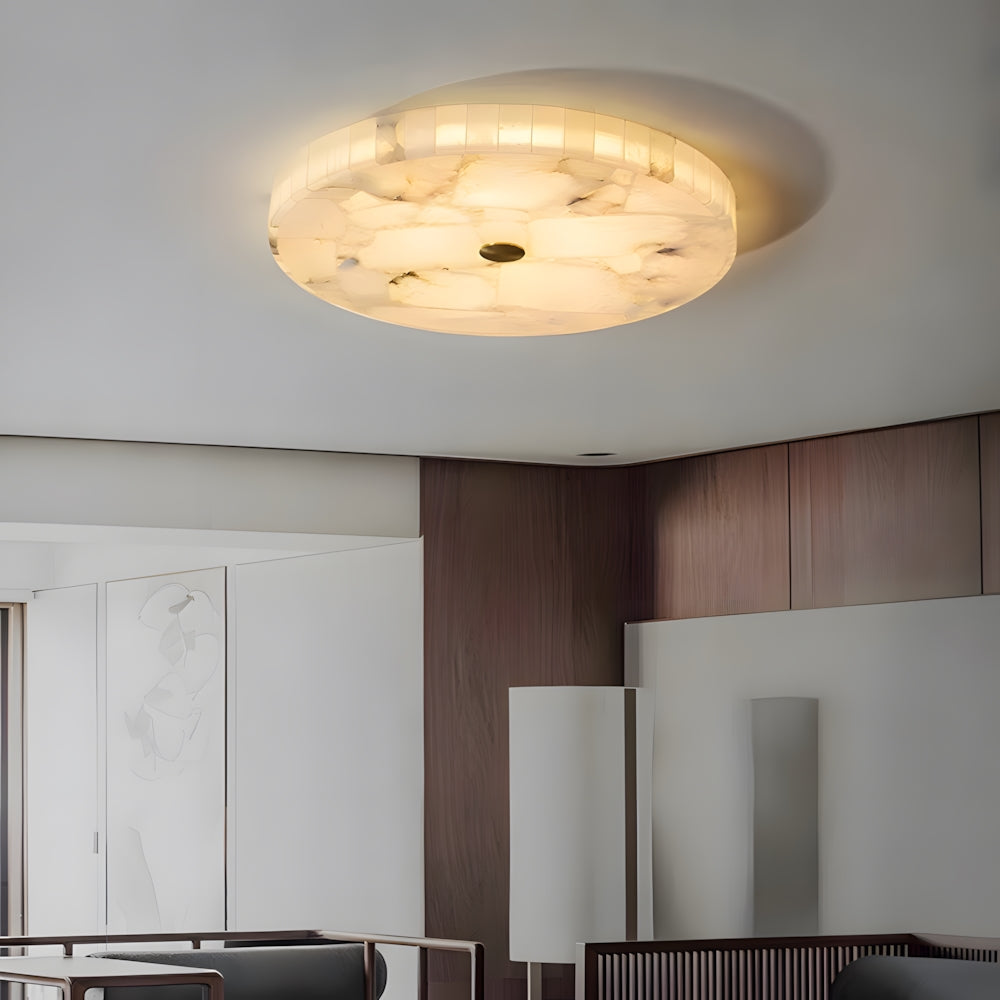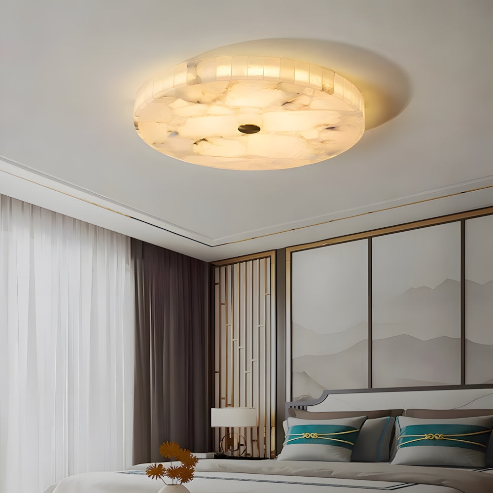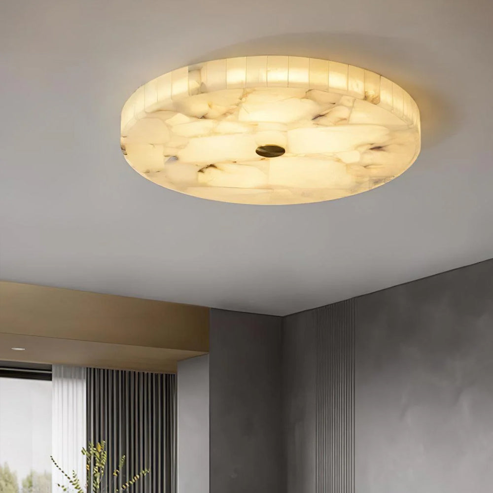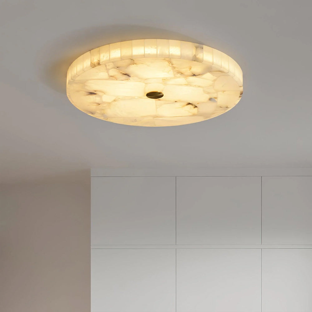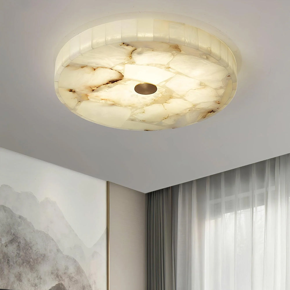 Elevate your interior with understated luxury! Genuine alabaster construction delivers a soft, warm glow, while its sleek round design blends seamlessly into any room for an inviting ambiance.