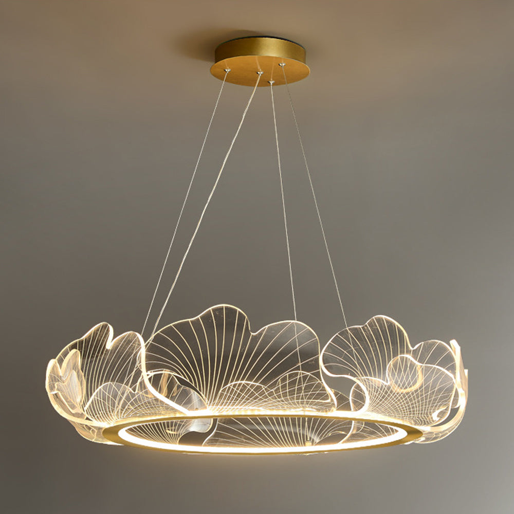 With its elegant leaf shape and opulent golden finish adorned with a subtle scallop edge, this fixture adds a fresh, sophisticated appeal to any space. It provides ideal functional lighting for kitchens and offices, while its natural hue creates a warm ambiance.