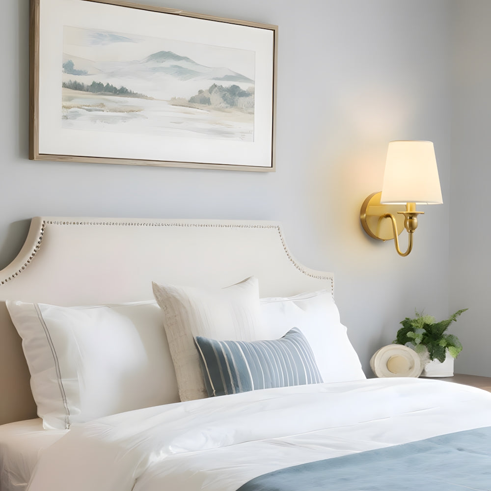 Dimmable Wireless Gold LED Wall Sconce elevate any space with retro charm! Brushed gold metal and fabric blend seamlessly with modern or vintage decor. Wiring-free, installation-free design—install anywhere, from bedrooms to fireplaces, for cozy, adjustable glow.
