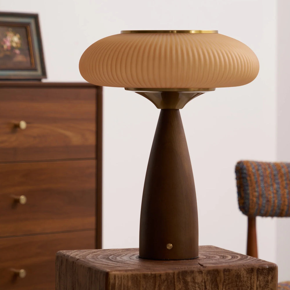 Vintage Luxe Wooden Rechargeable Table Lamp