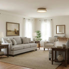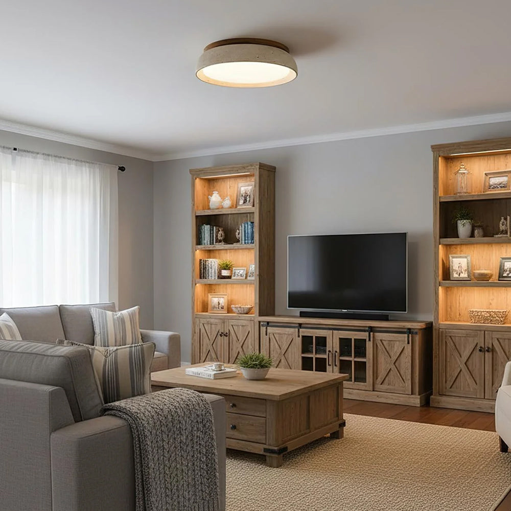 Sculpted Light. A serene glow is cast through the smooth, rounded form of this travertine ceiling light. Accented with warm wood, it brings a touch of quiet luxury and organic harmony to your home.