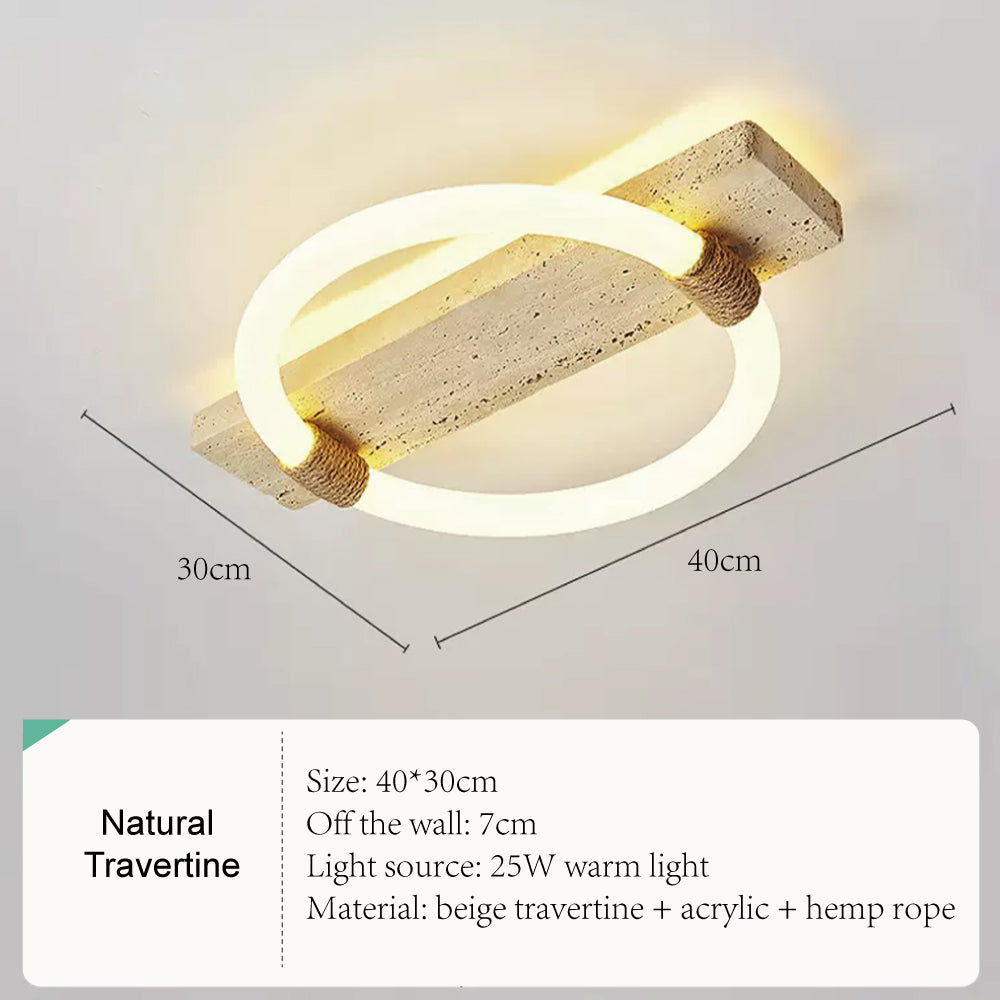 Design Style: This ceiling lamp adopts the Japanese wabi-sabi style design concept, emphasizing nature, simplicity and simplicity. The wabi-sabi style pursues an imperfect beauty and focuses on the original texture and natural texture of the material. In this lamp, the holes and rough surface of the travertine, the transparency and smooth texture of the acrylic, and the natural texture of the hemp rope are carefully presented, creating a quiet, harmonious and Zen-like space atmosphere.