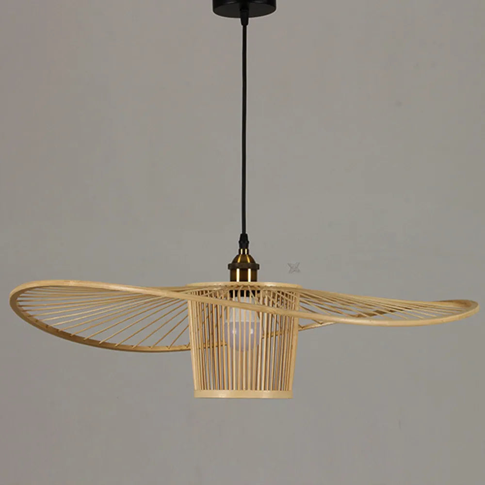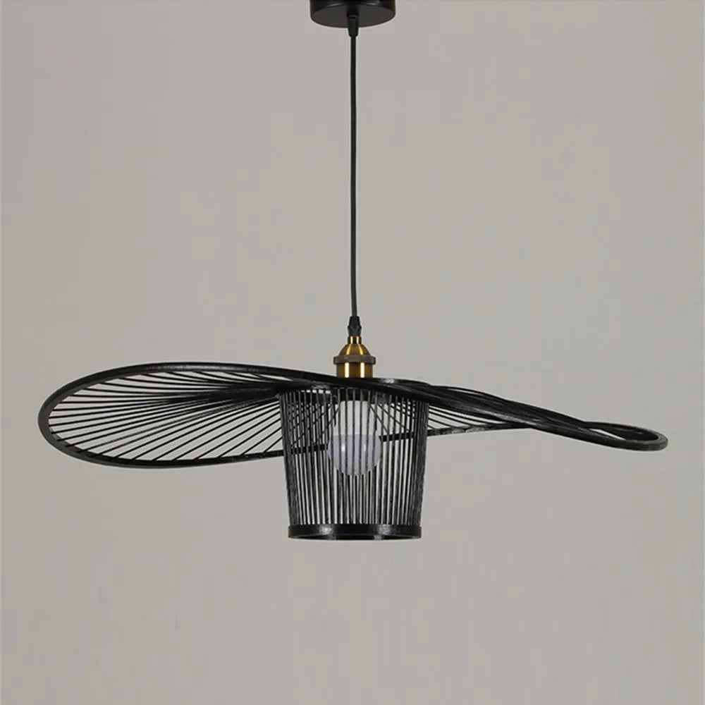 Waving Bamboo Vintage Woven Wicker Handmade Hat Rattan Pendant Light