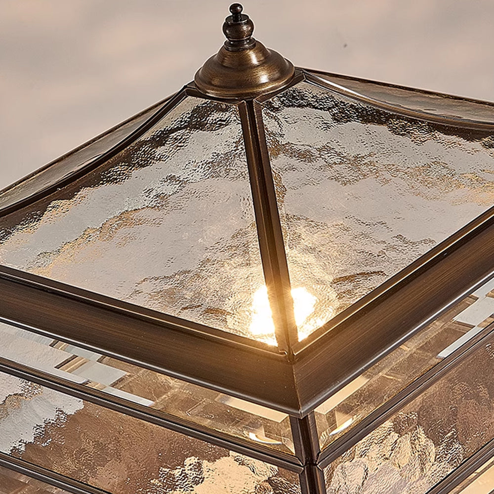 Vintage Square Ribbed Glass Outdoor Pier Pillar Light