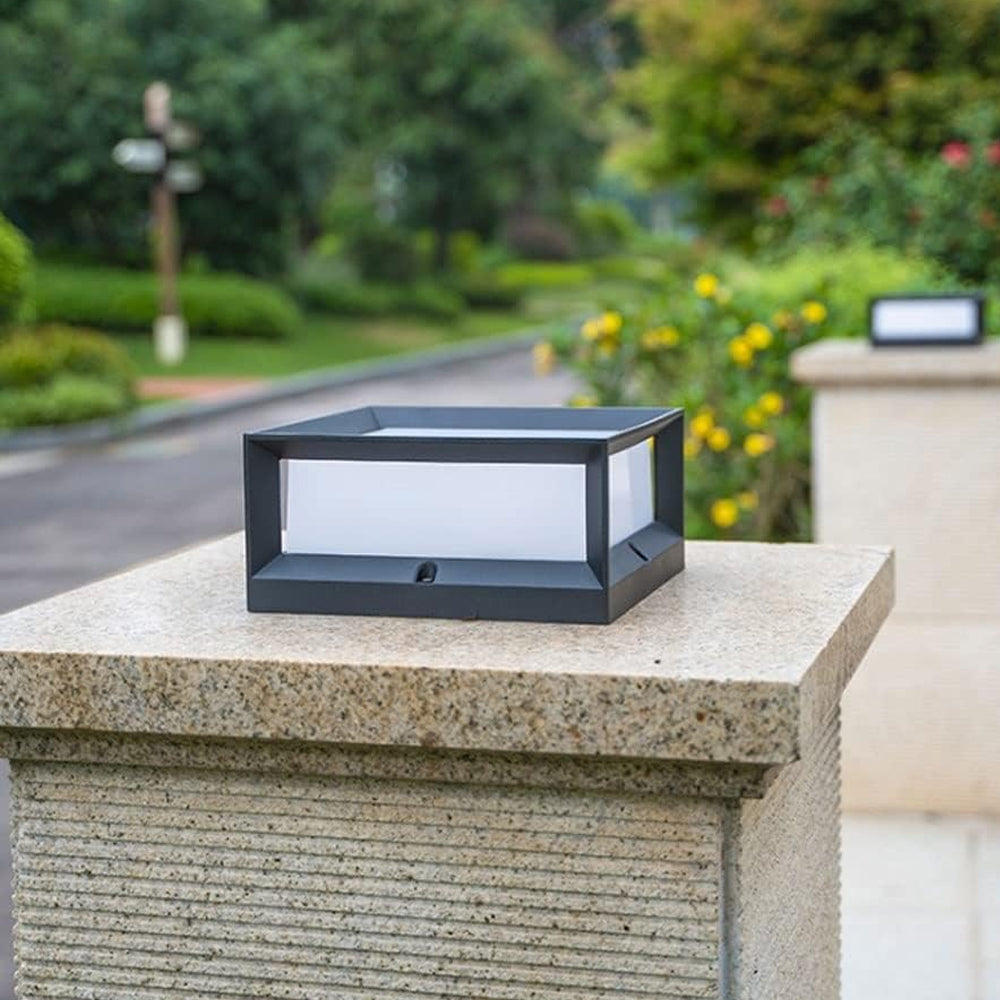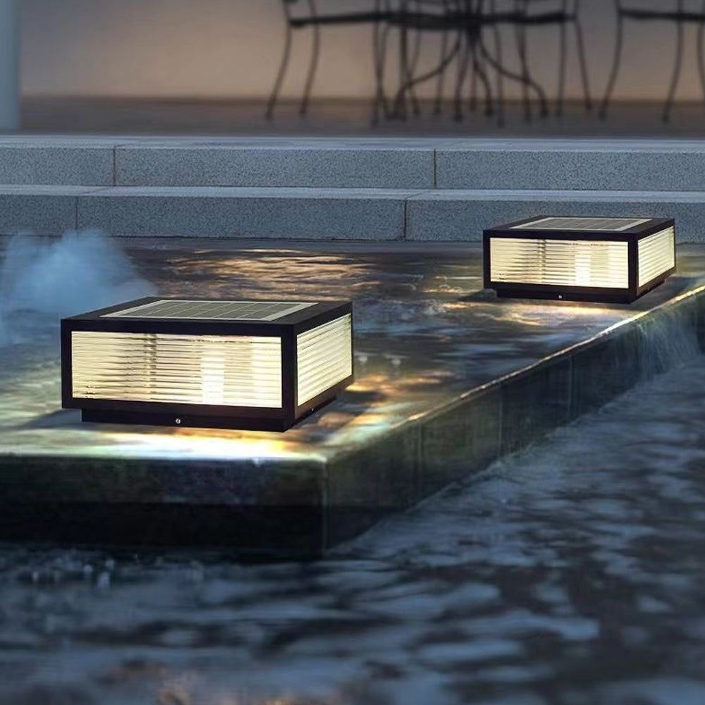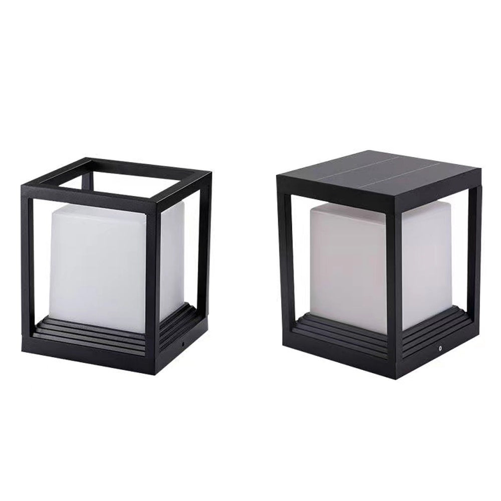 Modern Square Waterproof Black Solar Lights Outdoor Pier Pillar Lights