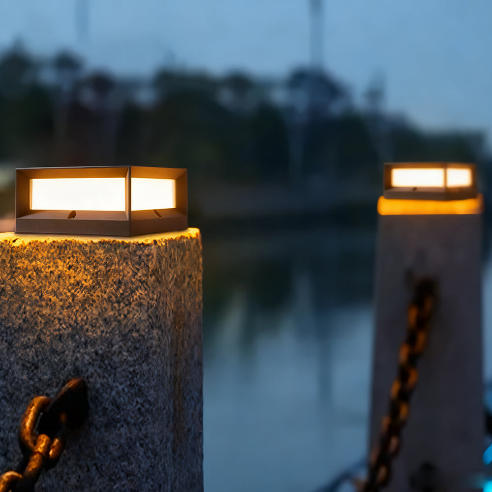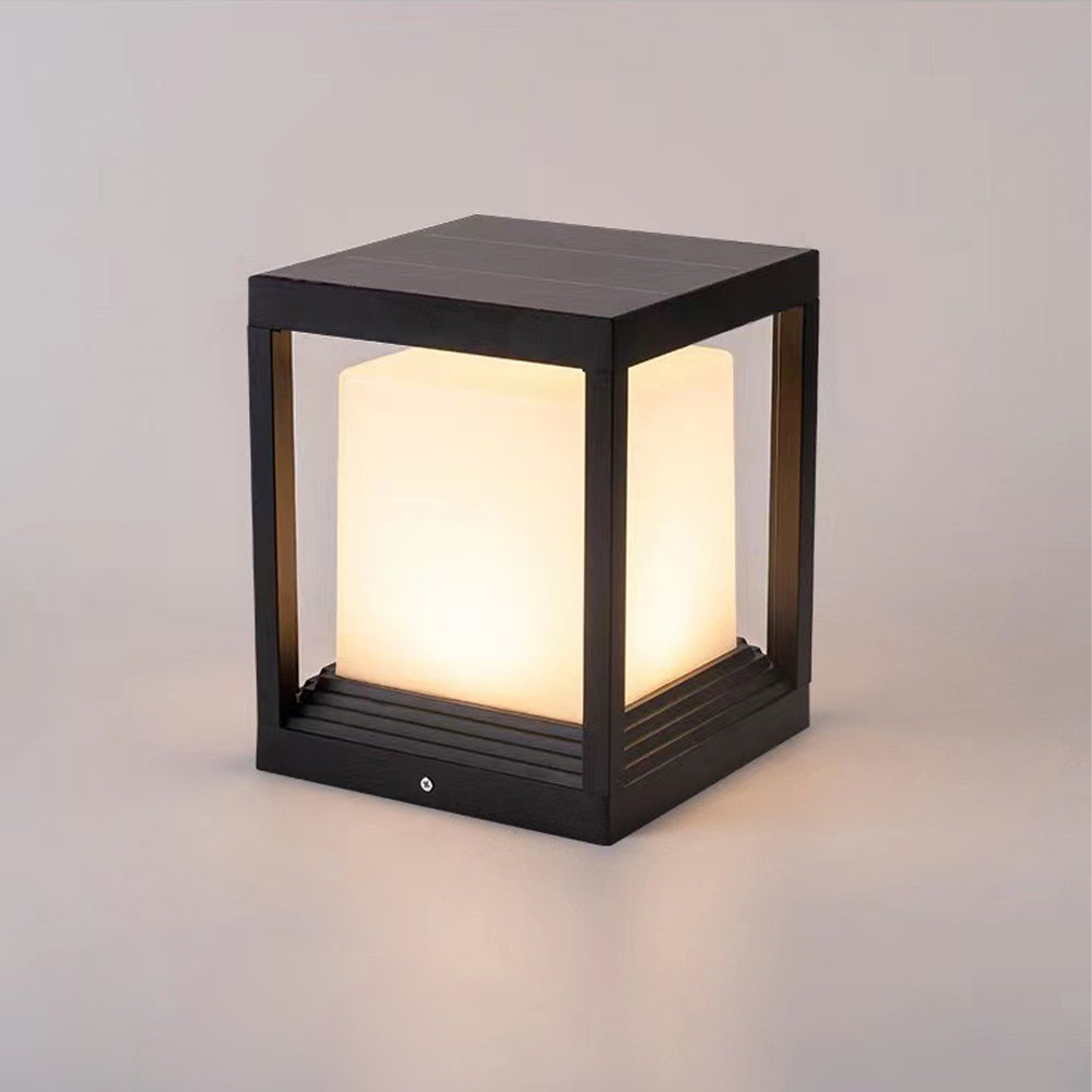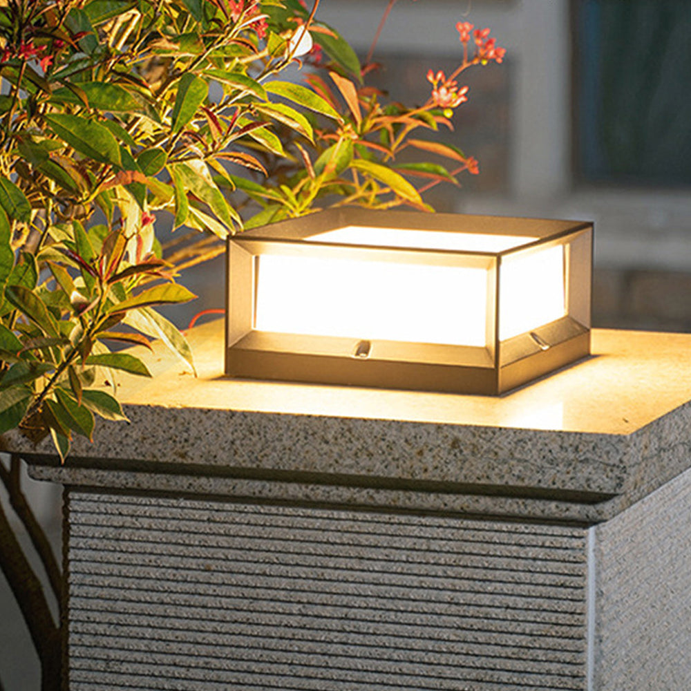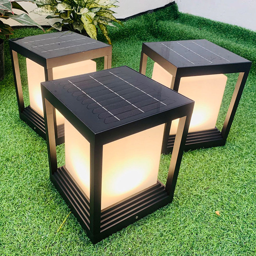 Modern Square Waterproof Black Solar Lights Outdoor Pier Pillar Lights