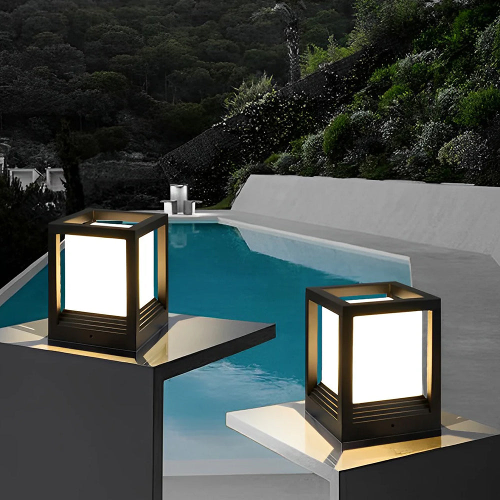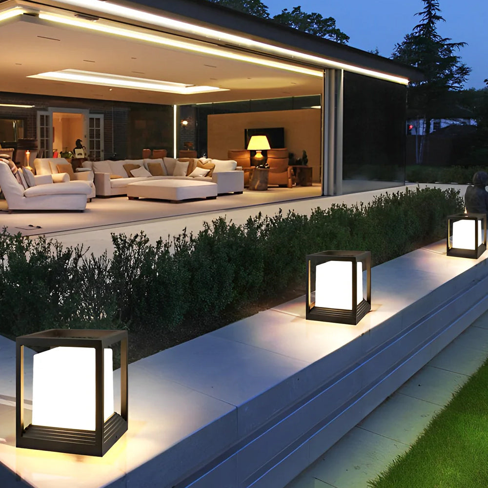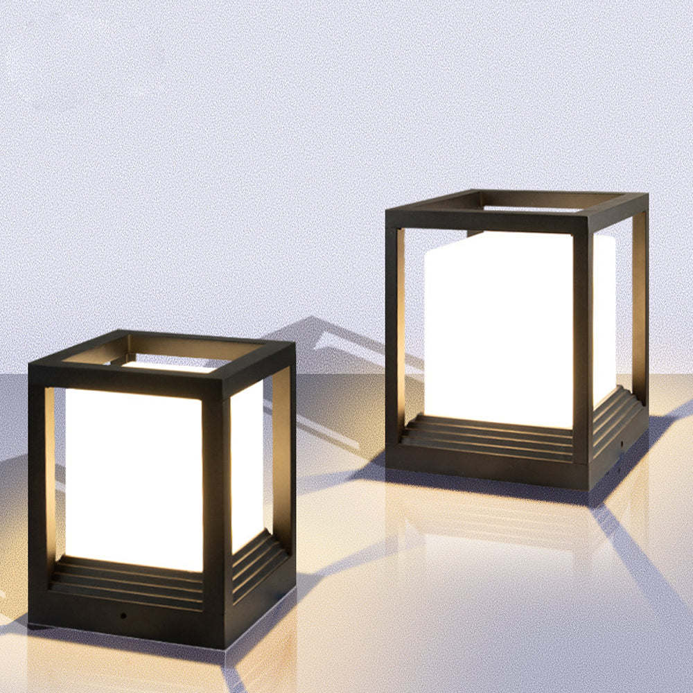Minimalist Square Waterproof LED Black Outdoor Pillar Light