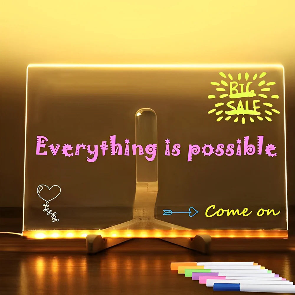 Simple LED Acrylic Message Board Colorful Writable Table Lamp