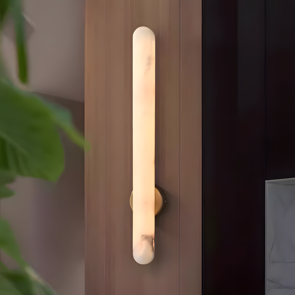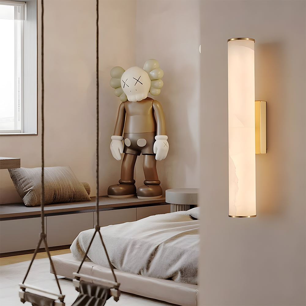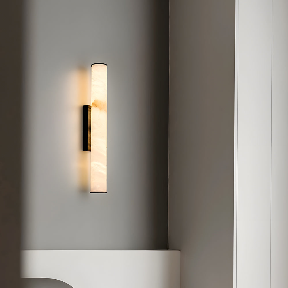 Minimalist Modern Cylindrical Natural Marble & Brass Wall Lamp