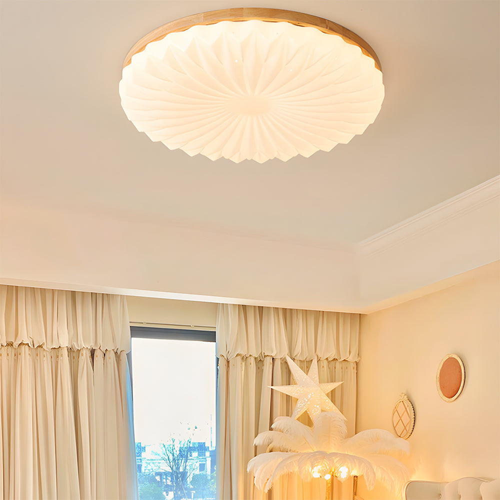 Mid Century Wood Ceiling Light Dimmable LED Flush Mount Ceiling Light