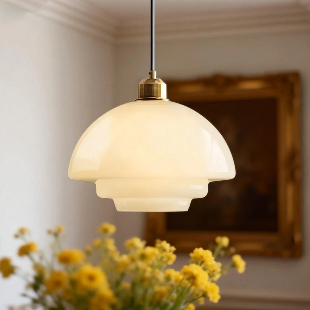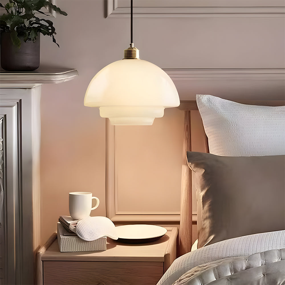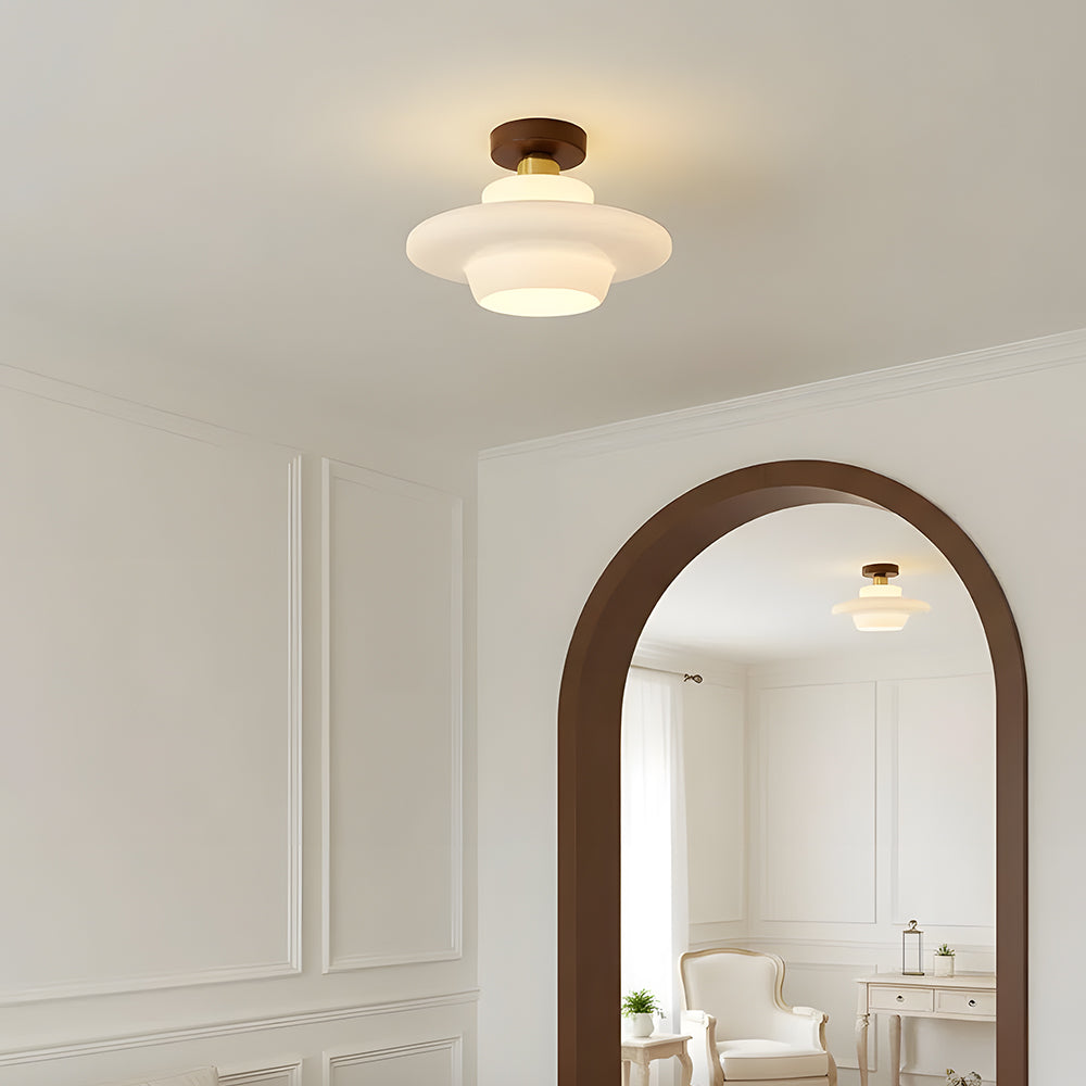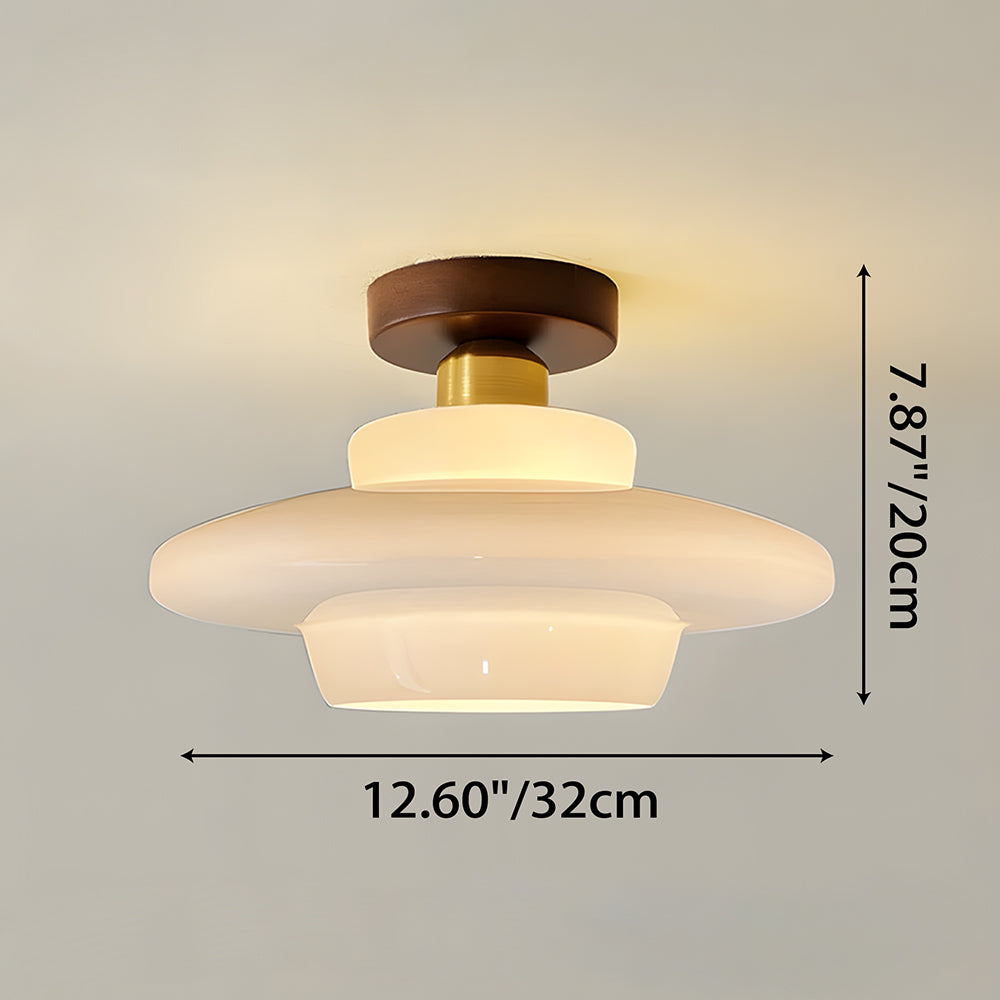 Nordic Modern Minimalist Walnut & Glass Ceiling Light