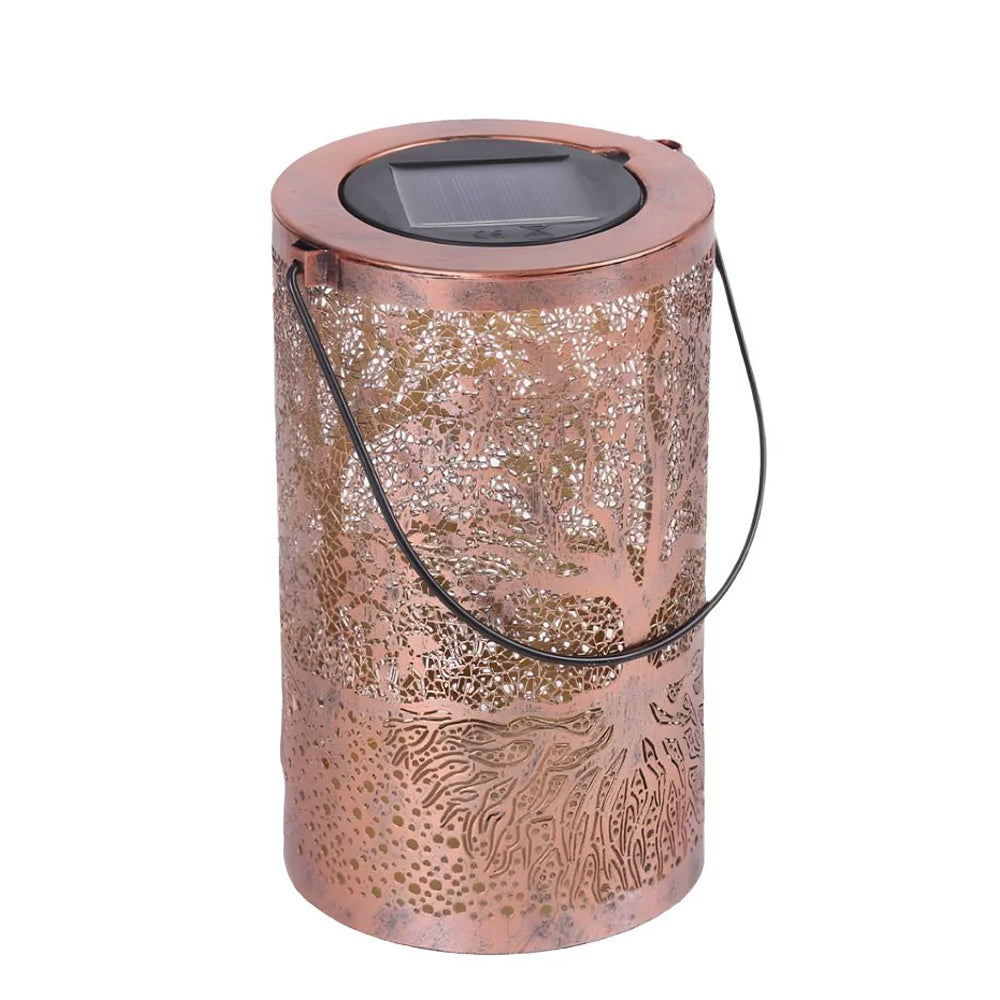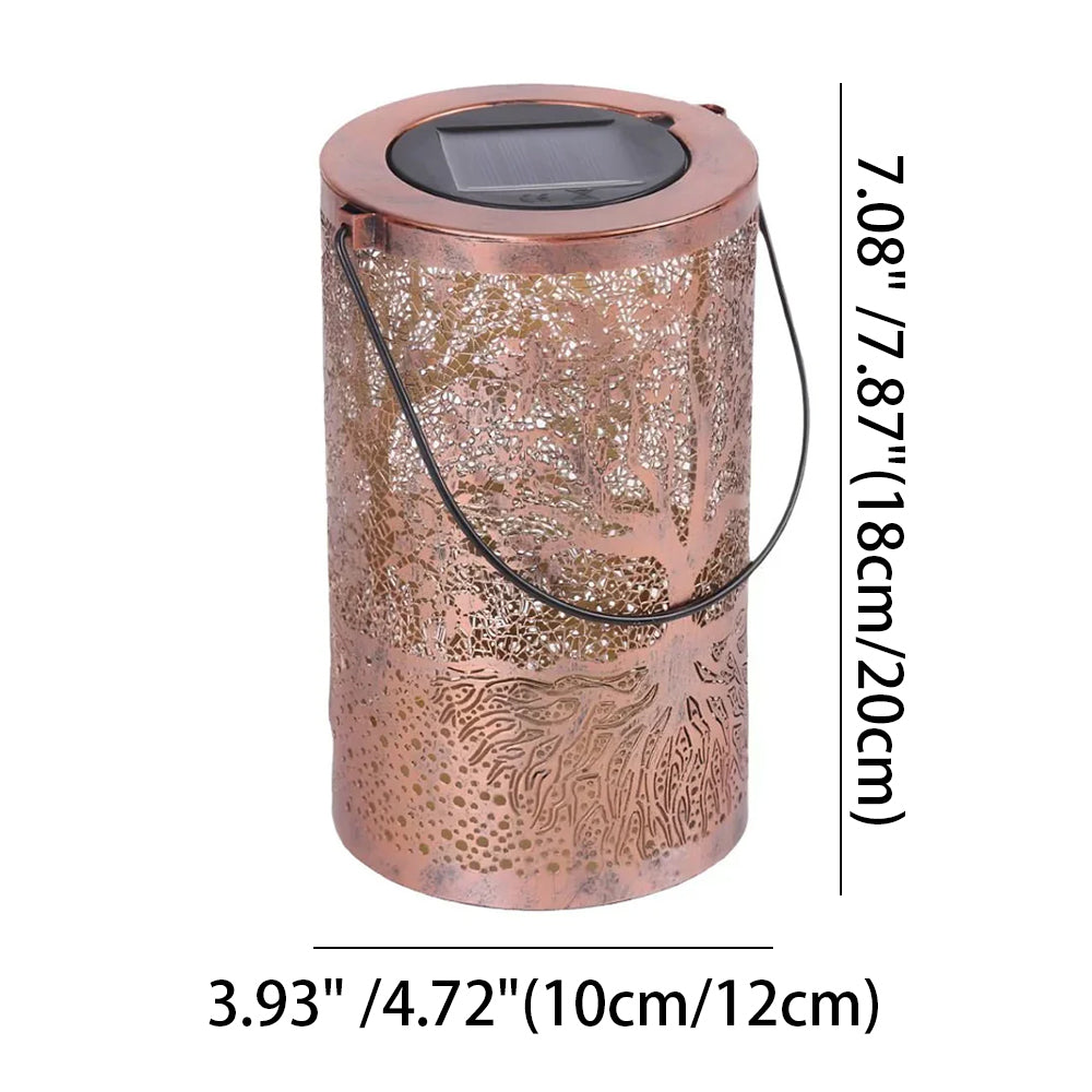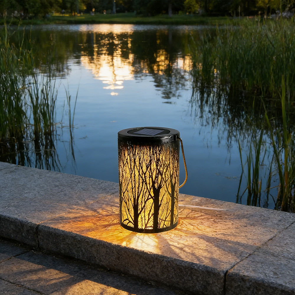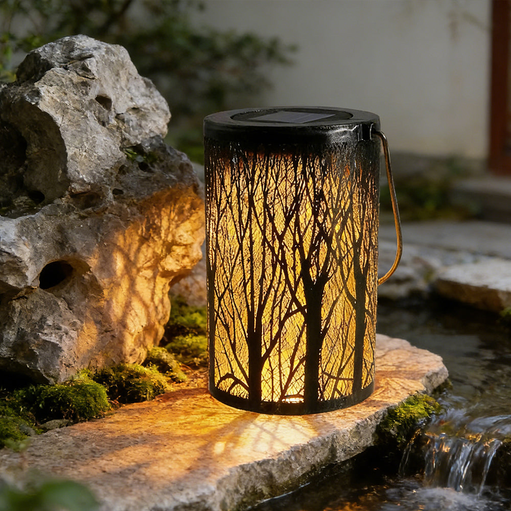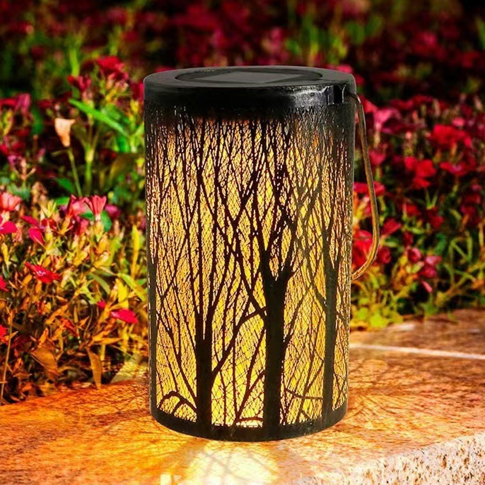 This waterproof solar lantern casts a magical tree pattern. Portable with a handy handle, it's perfect for hanging or placing anywhere to create a warm, enchanting glow.