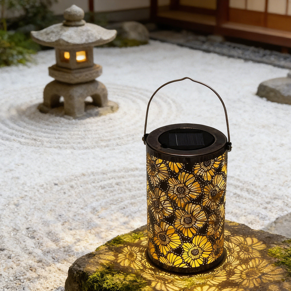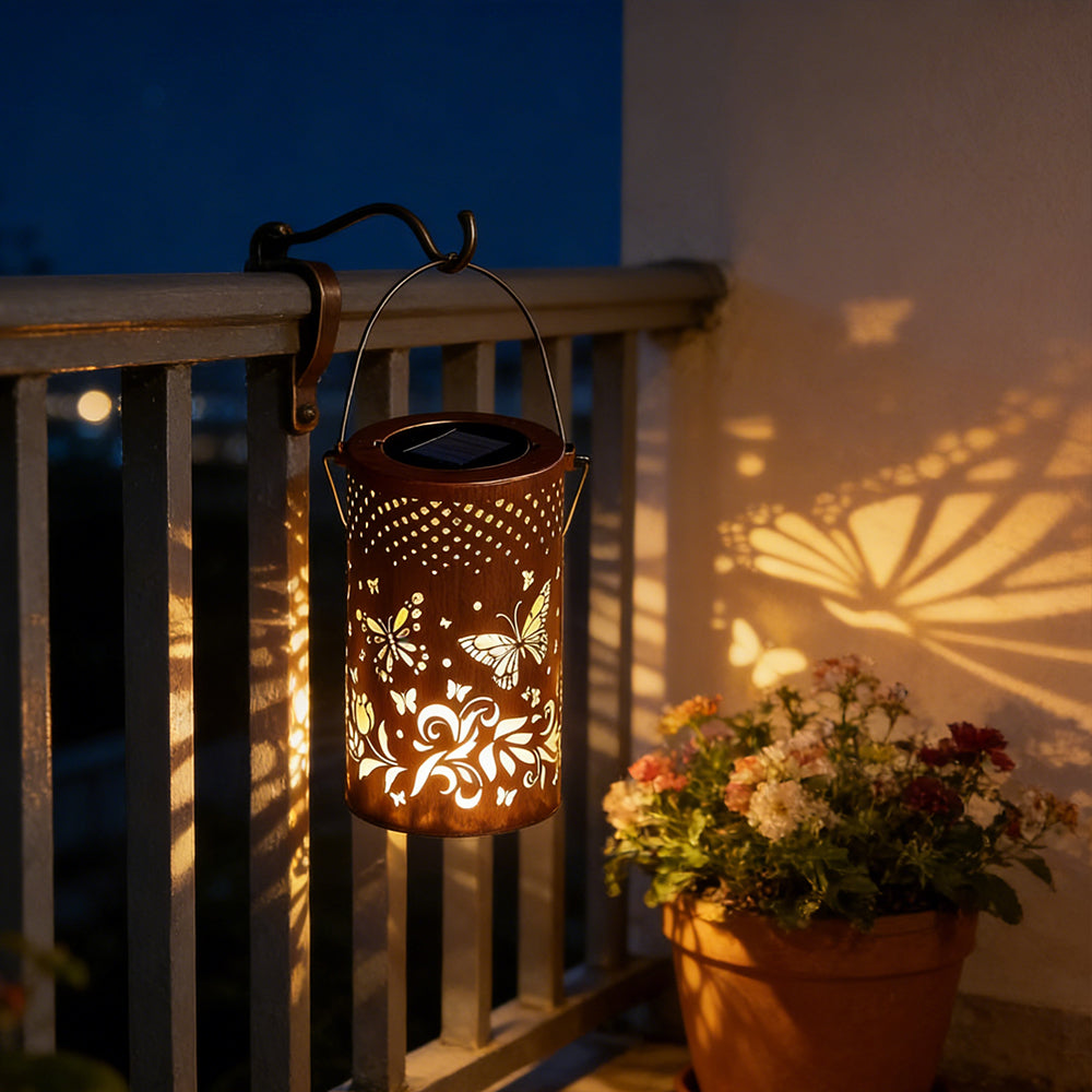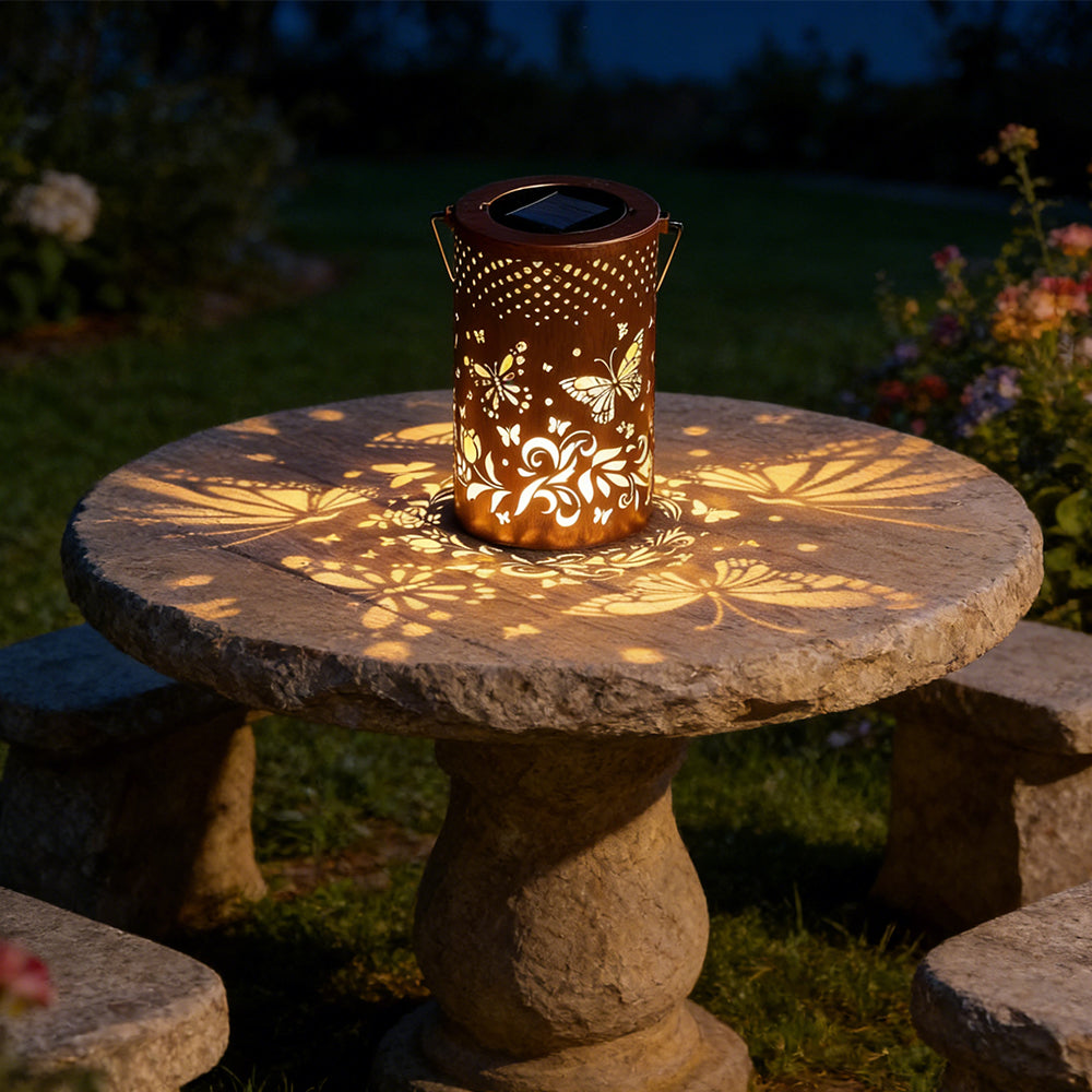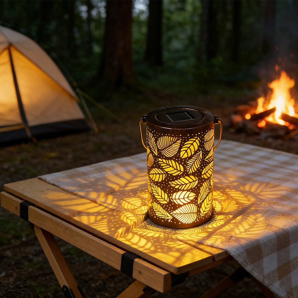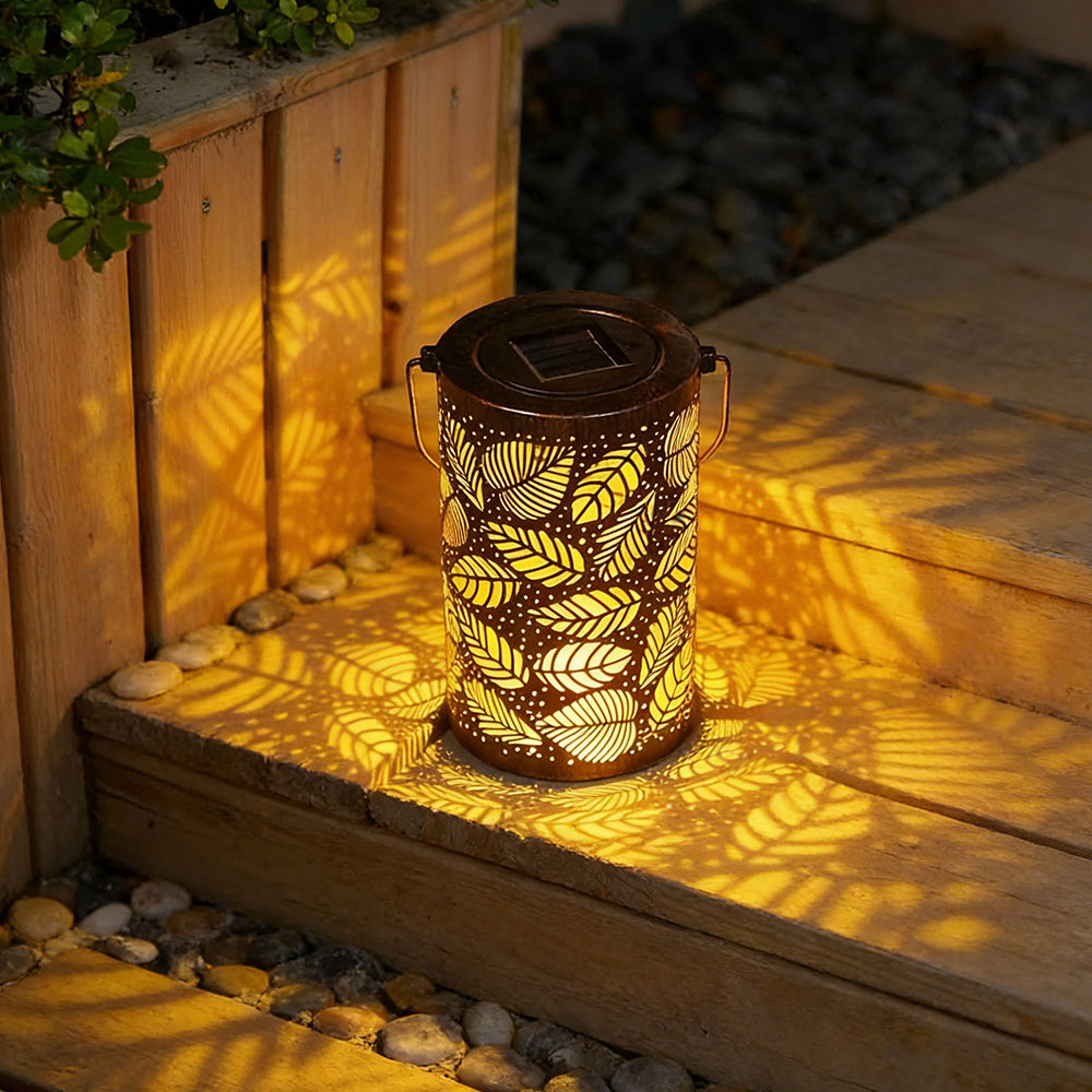 This waterproof solar lantern casts a magical tree pattern. Portable with a handy handle, it's perfect for hanging or placing anywhere to create a warm, enchanting glow.