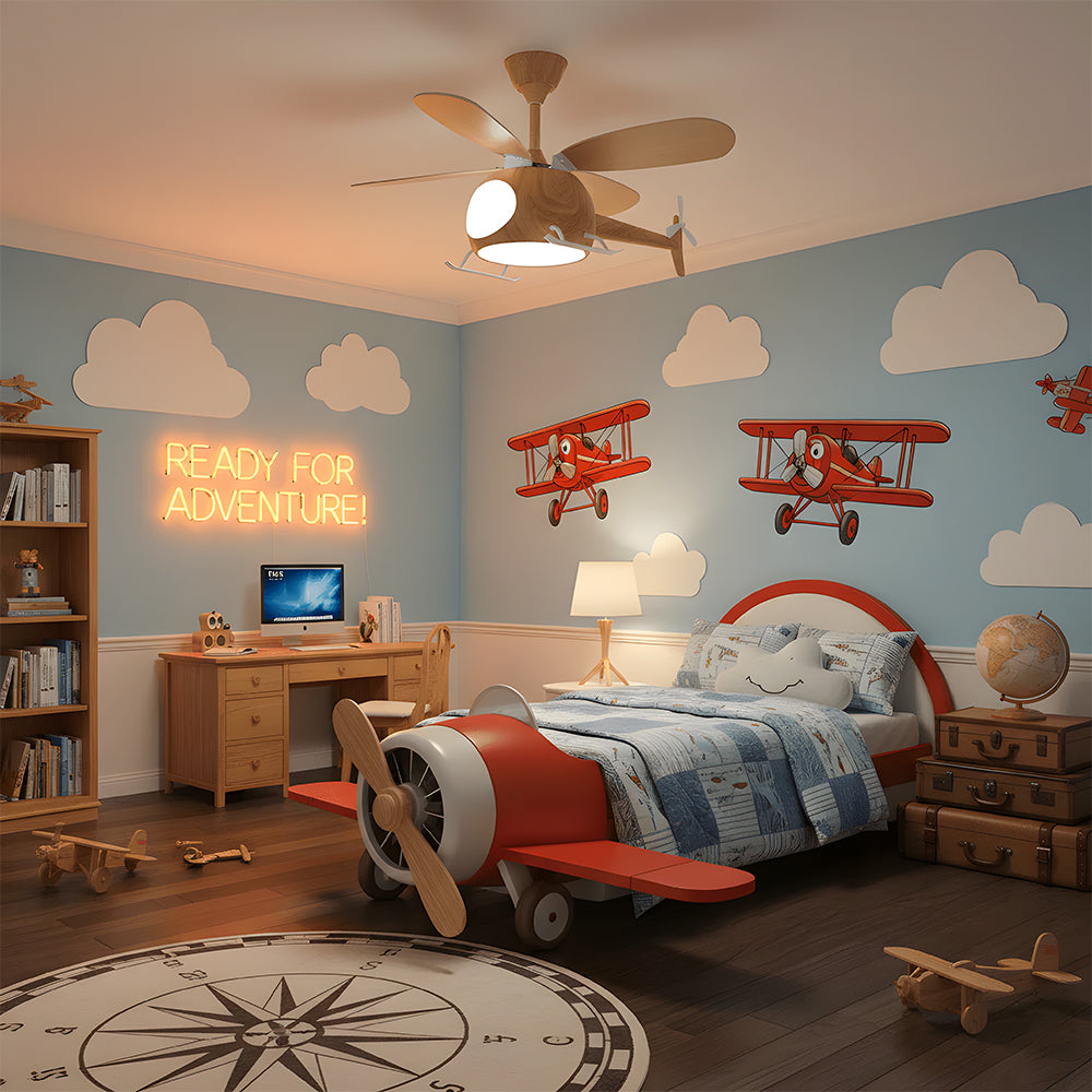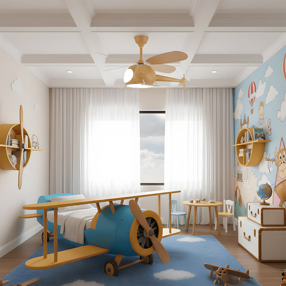 Cartoon Creative Airplane-shaped Metal Ceiling Fan Light