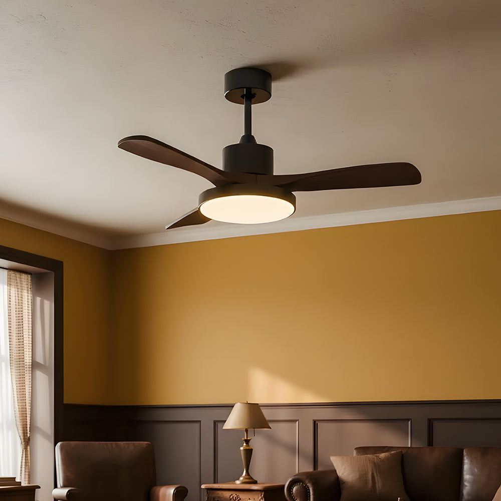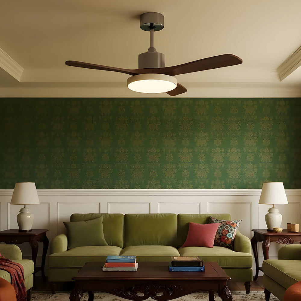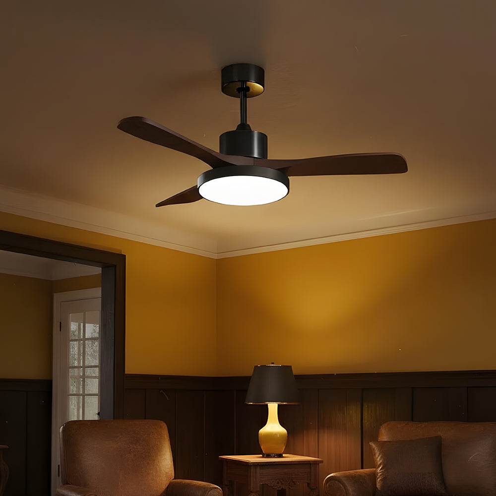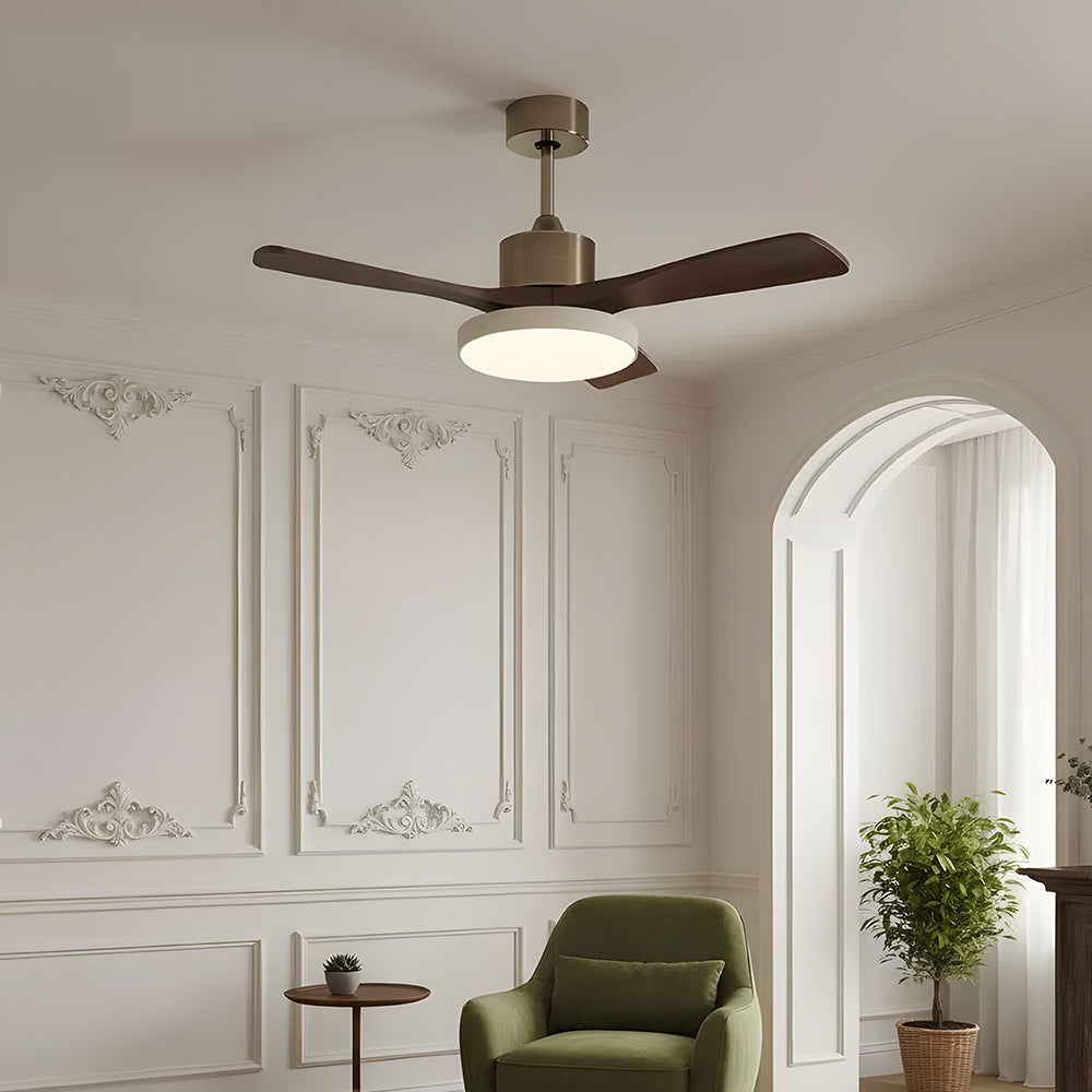 American Retro Minimalist Wooden LED Ceiling Fan