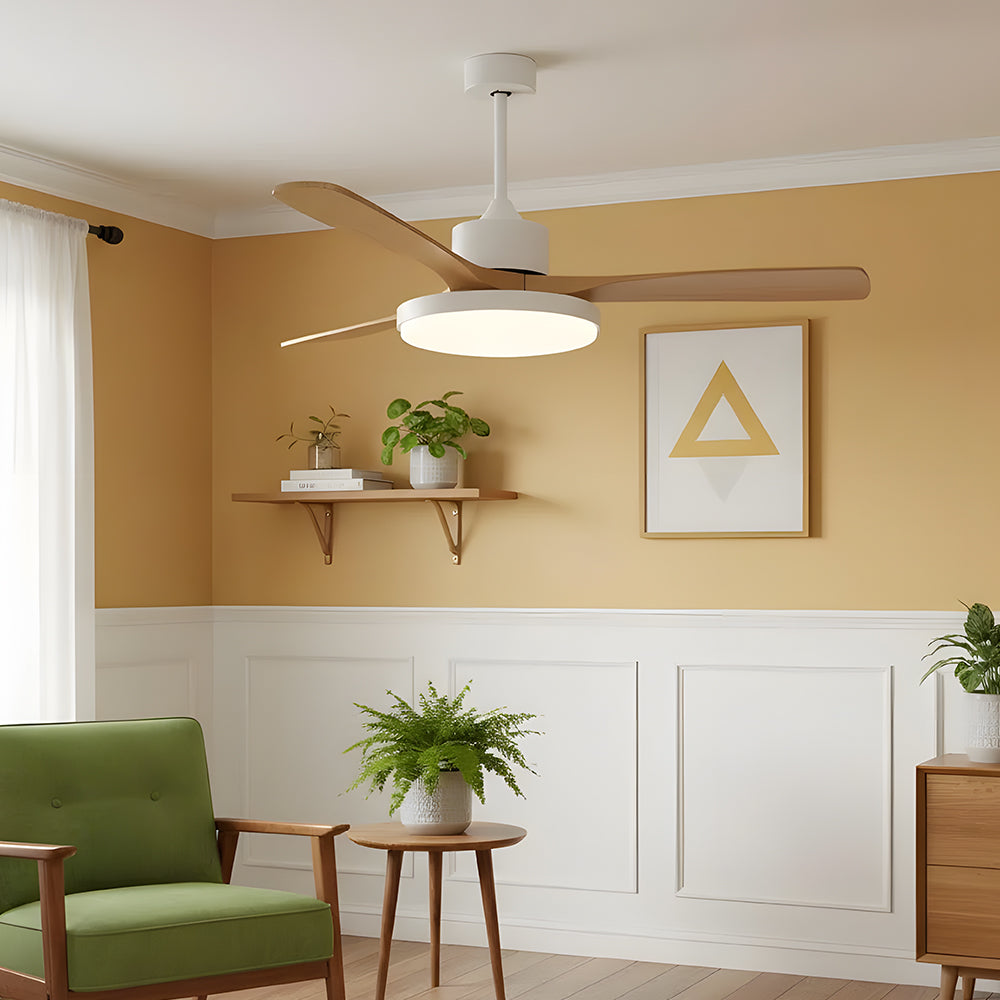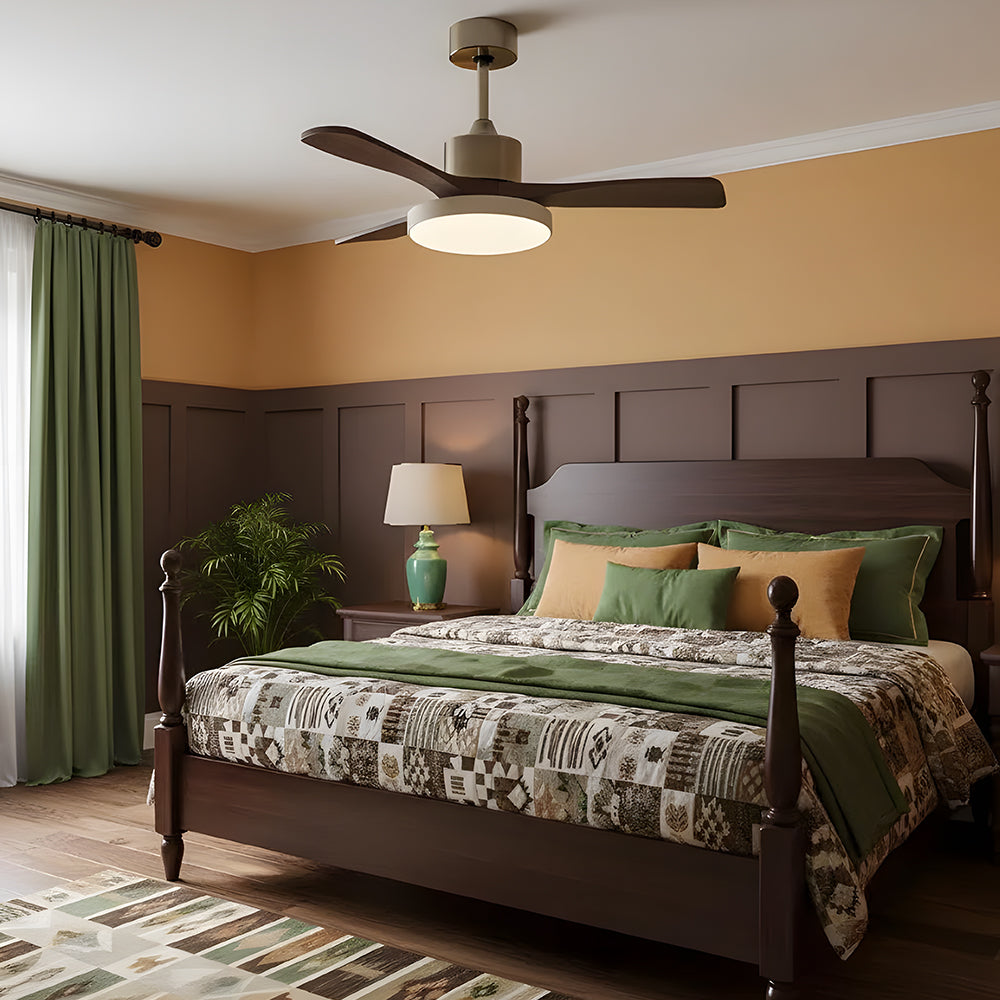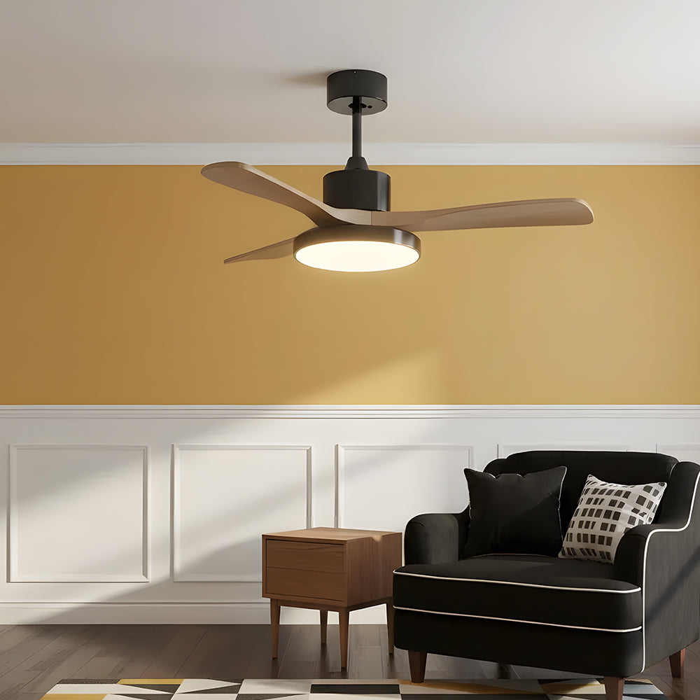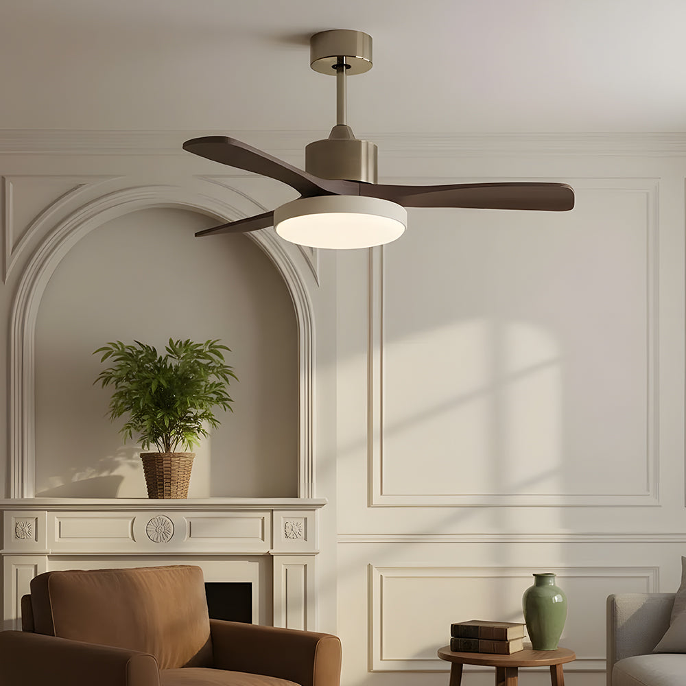 American Retro Minimalist Wooden LED Ceiling Fan