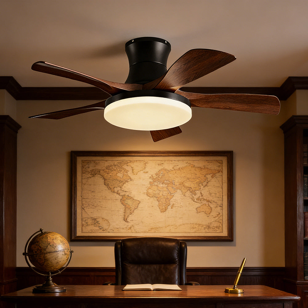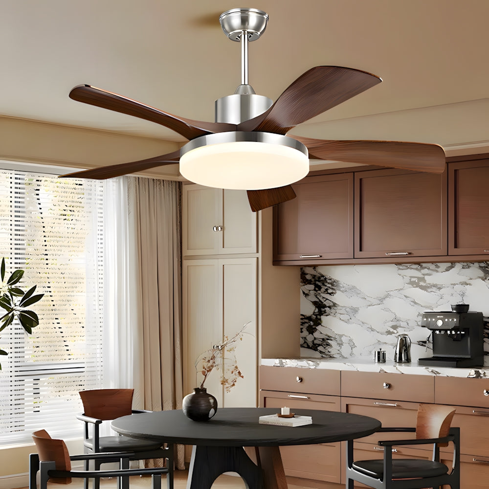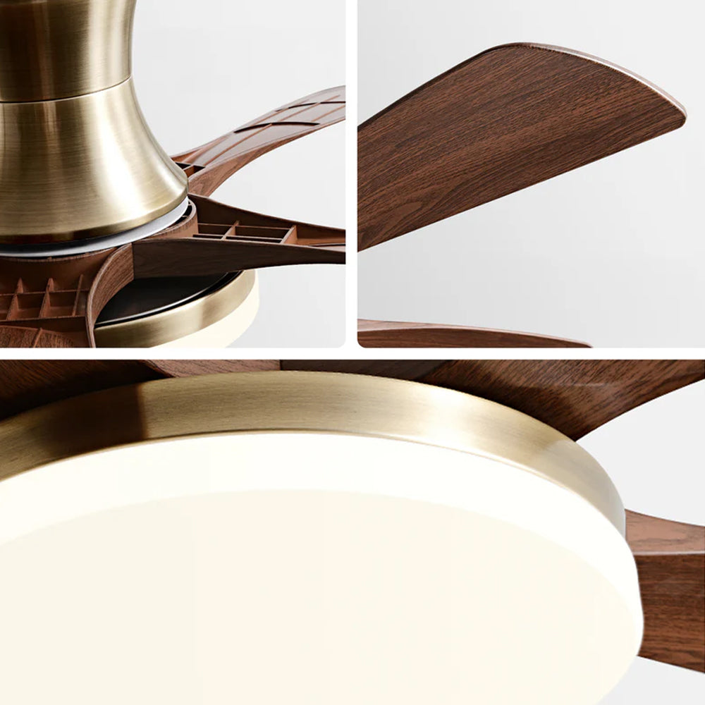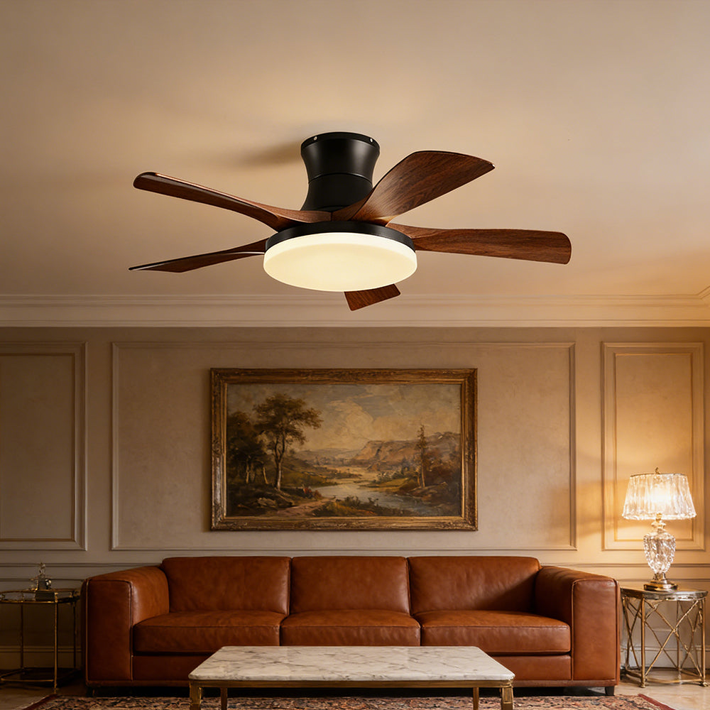 Elevate your space with this Modern Low Profile Acrylic LED Ceiling Fan. Its walnut finish and low-profile design blend mid-century style with modern comfort. Perfect for any room, this elegant fixture delivers refreshing airflow and vibrant lighting.
