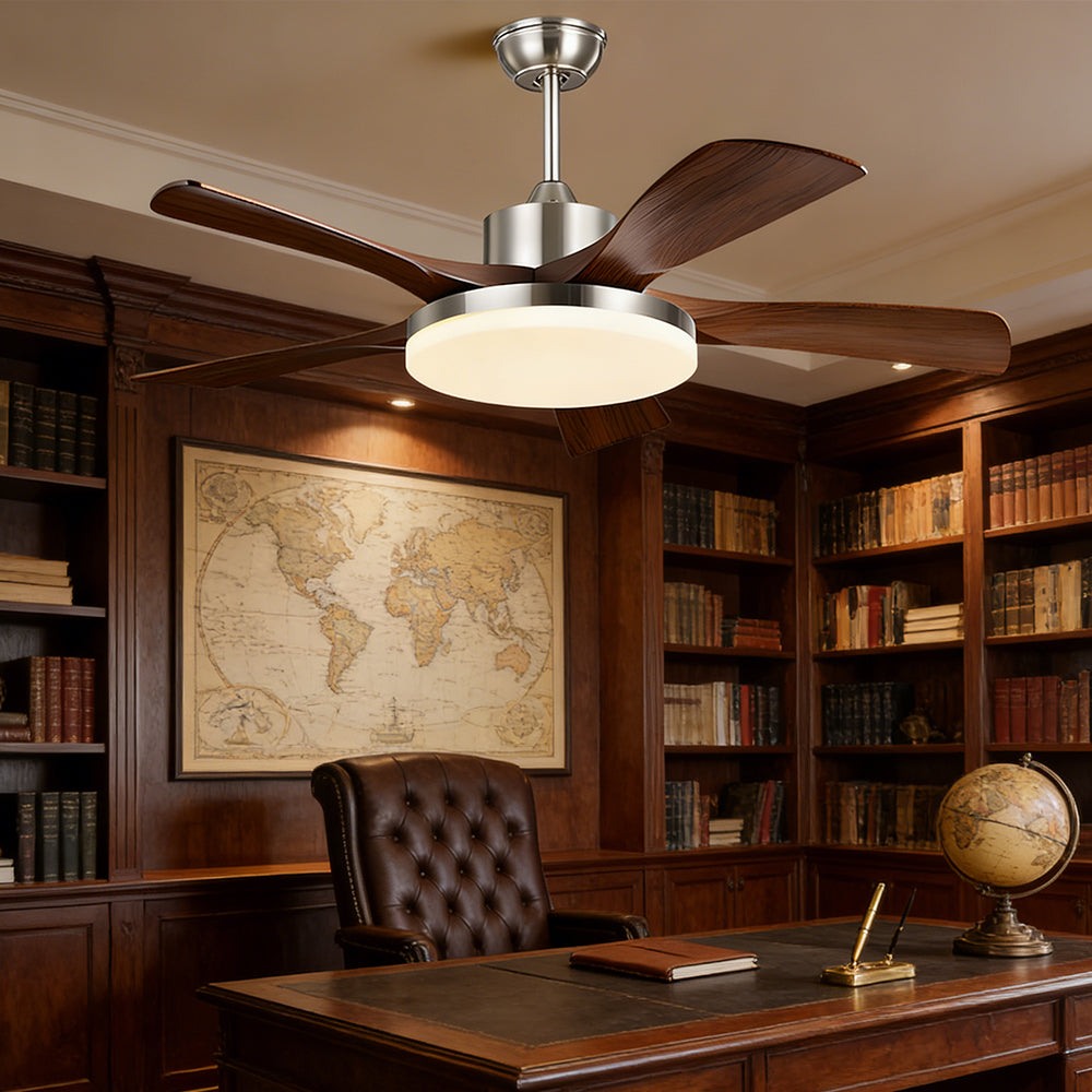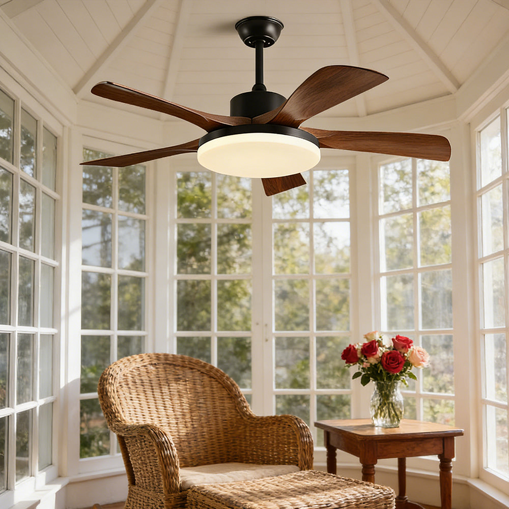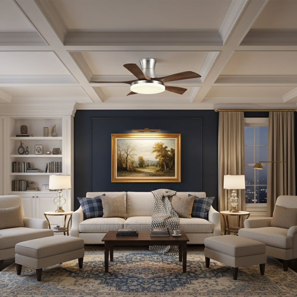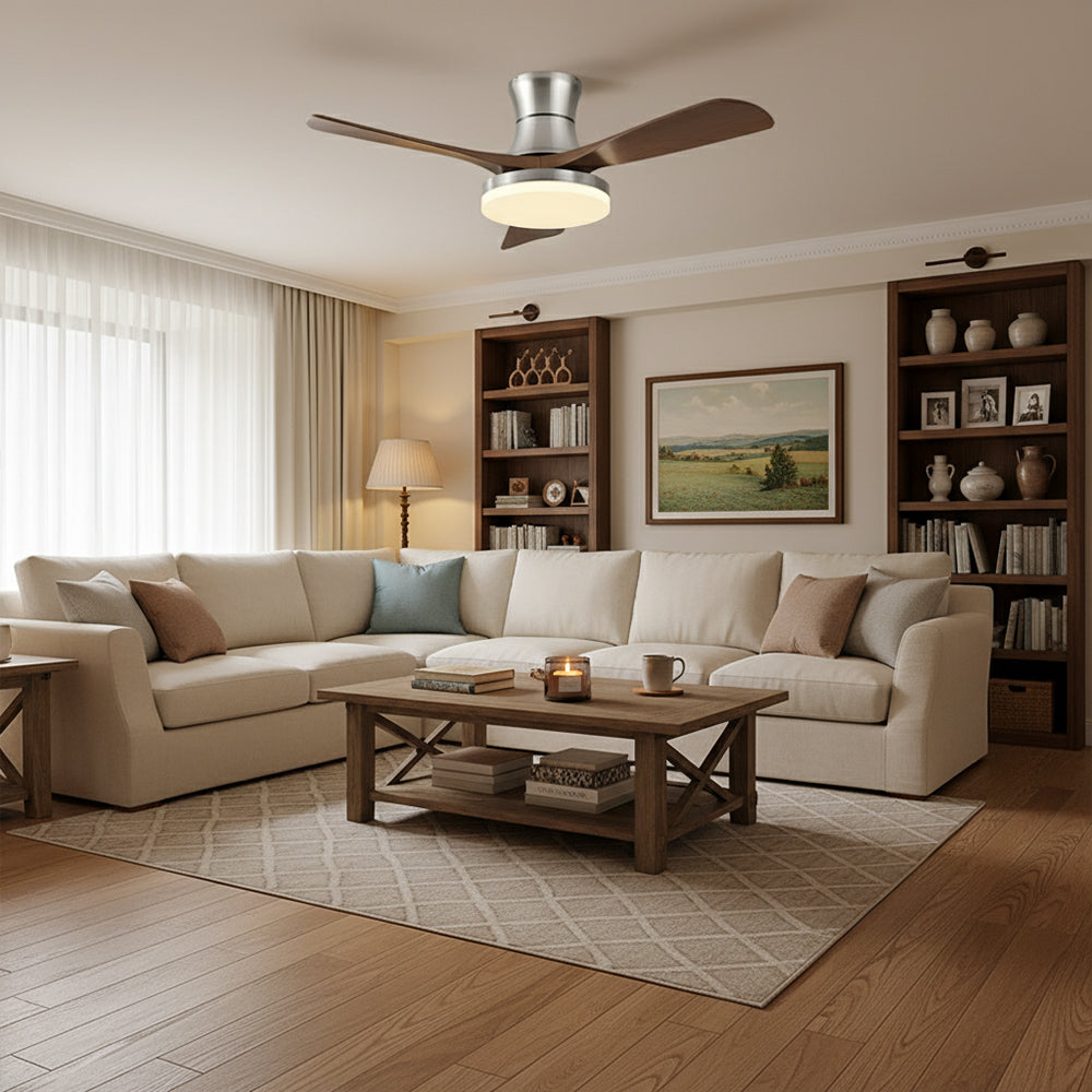 Elevate your space with this Modern Low Profile Acrylic LED Ceiling Fan. Its walnut finish and low-profile design blend mid-century style with modern comfort. Perfect for any room, this elegant fixture delivers refreshing airflow and vibrant lighting.