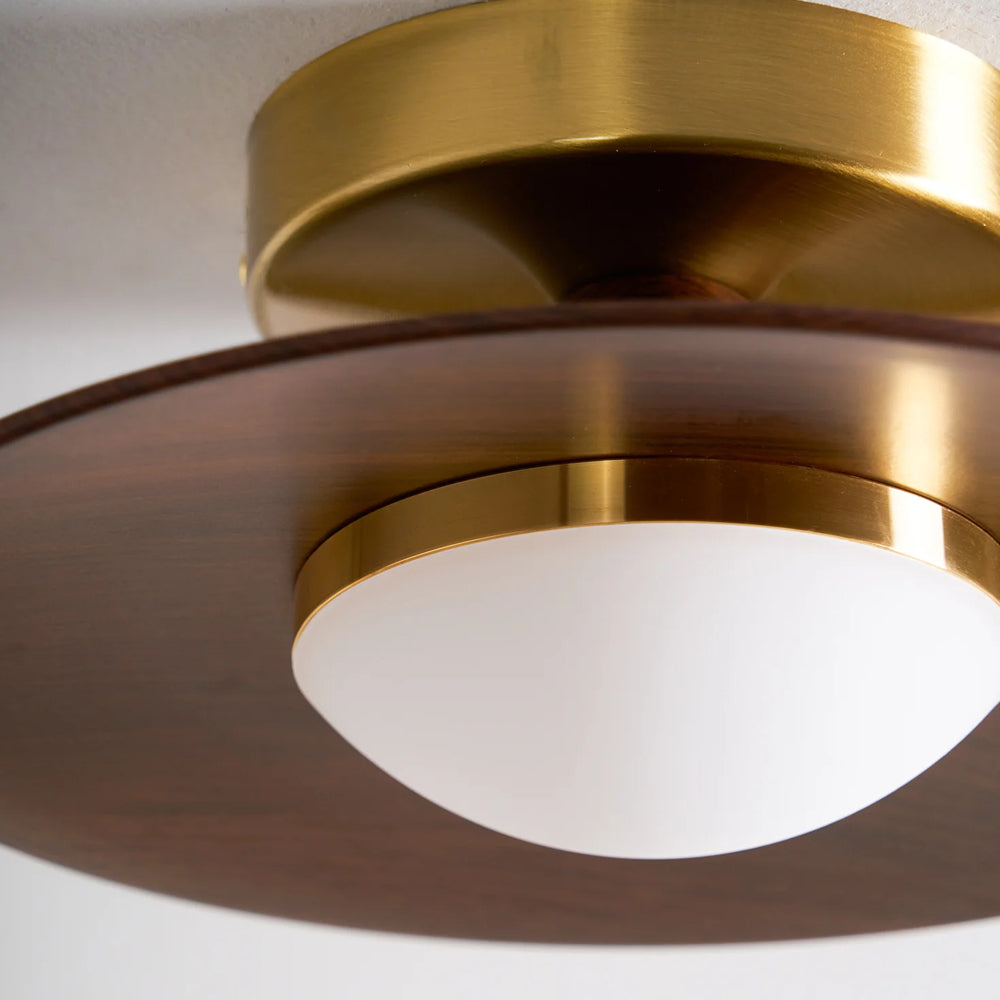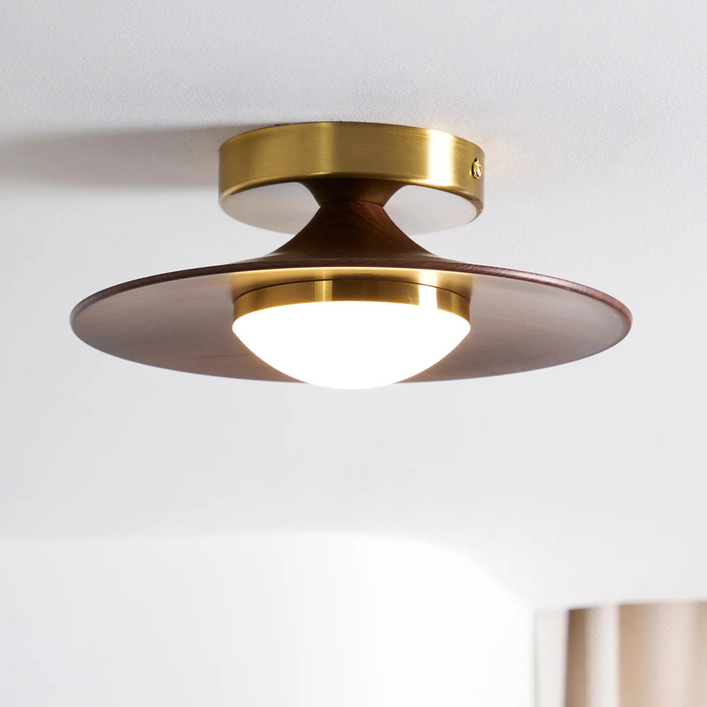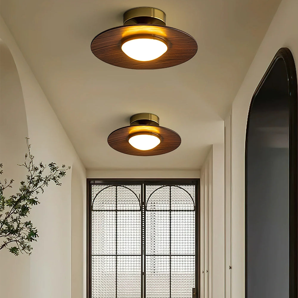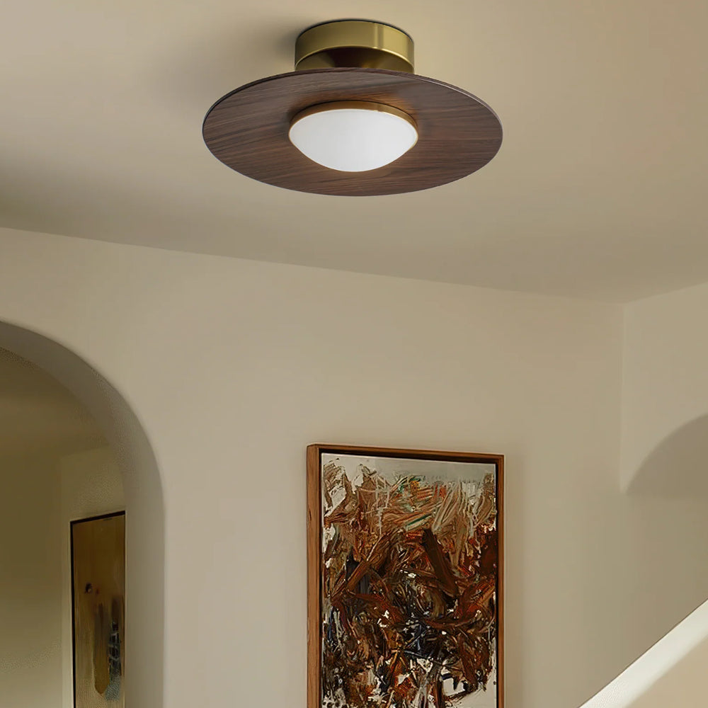 This ceiling lamp combines a sleek metal frame with a warm wood-textured accent for a look of contemporary elegance. Its compact design with clean lines brings a sophisticated, organic touch to kitchens, entries, and dining areas.