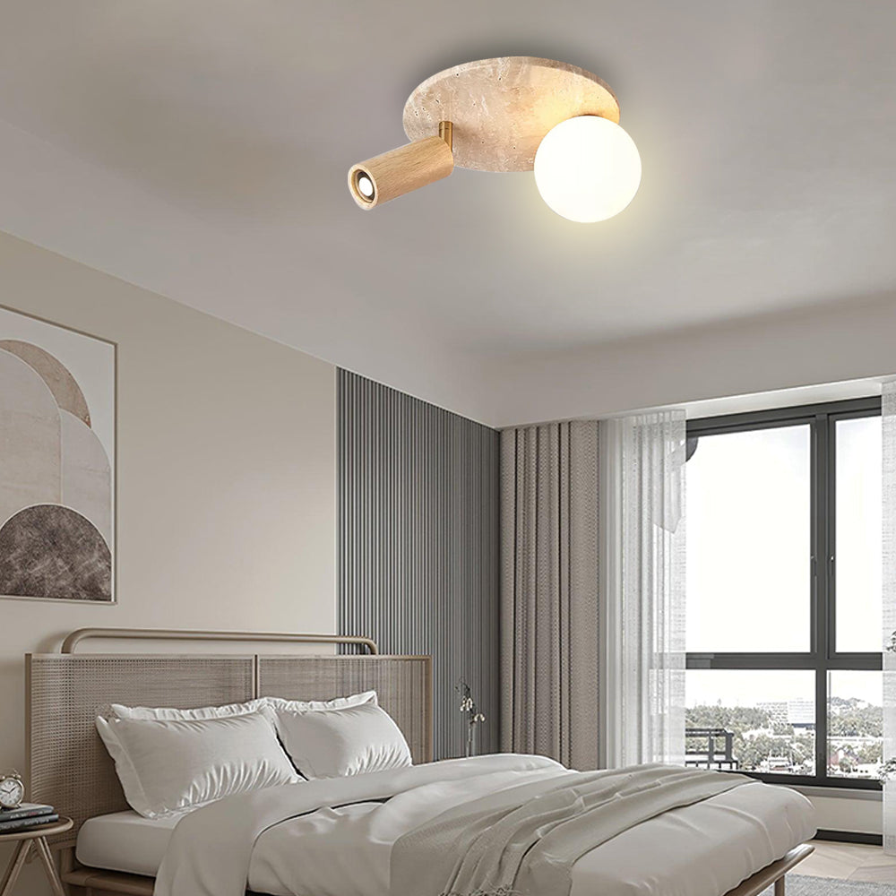 Design Style: In terms of design style, this ceiling lamp fully demonstrates the essence of Japanese wabi-sabi aesthetics. It pursues a kind of "imperfect" beauty, emphasizing the traces of time and the simplicity of nature. The lines of the lamp are smooth, without excessive decoration and modification, but through simple design language, it conveys a quiet, indifferent and detached attitude towards life. At the same time, it also cleverly uses the elements of travertine and logs, making the whole space full of natural breath and vitality of life.