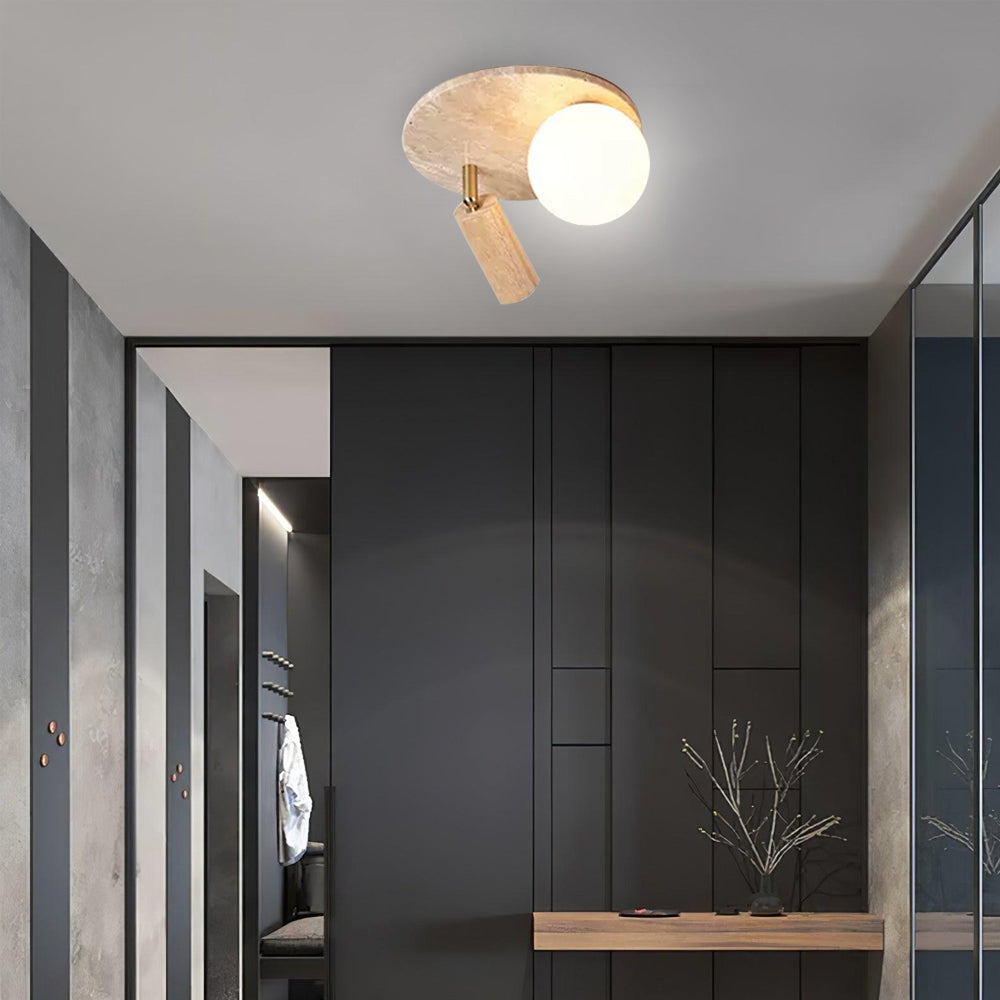 This ceiling lamp is designed for Japanese Wabi-Sabi style homes, especially the materials of travertine and logs. It cleverly combines natural elements with modern lighting technology to bring warm and peaceful light to the space. The design of the lamp is simple yet elegant, perfectly integrated into the natural texture of travertine and logs, creating a peaceful, simple and Zen atmosphere.