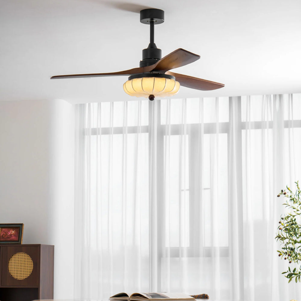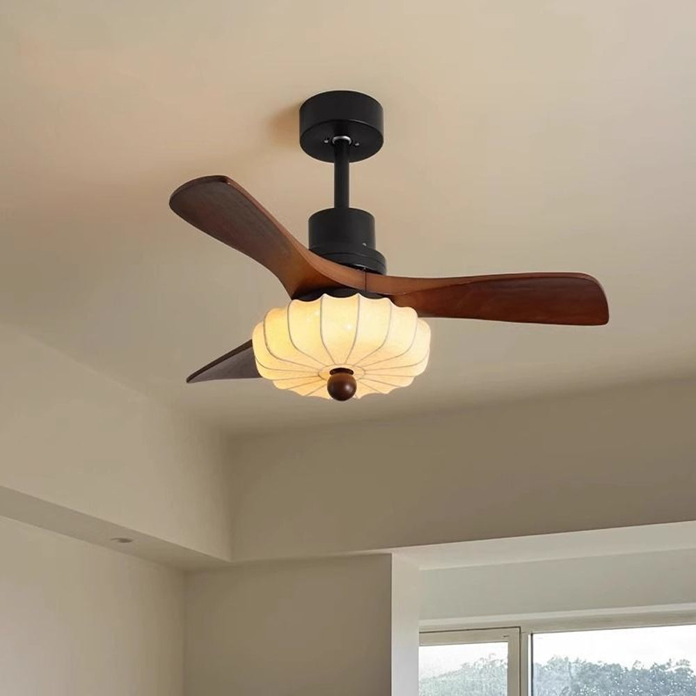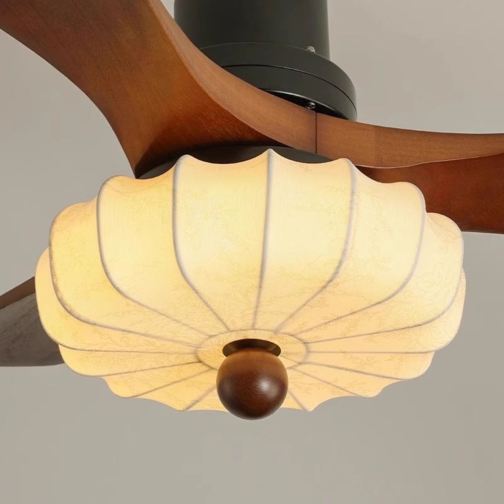 Minimalist Retro Wooden Lotus Bloom LED Ceiling Fan