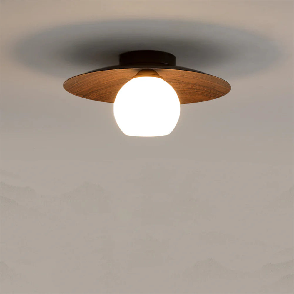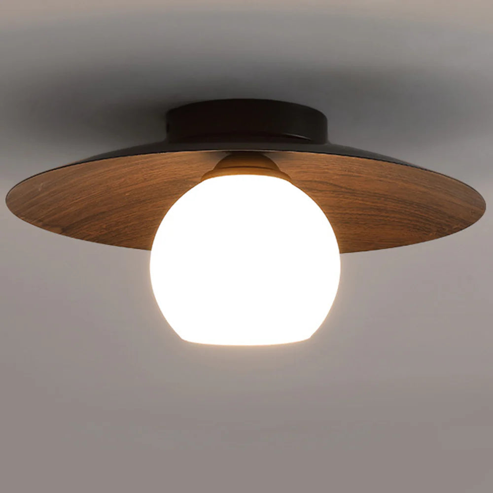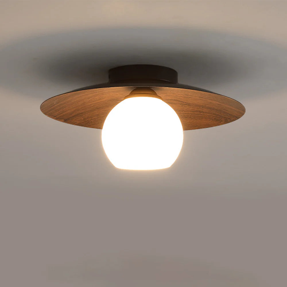 Modern Natural Wood Milky White Glass Ceiling Lamp