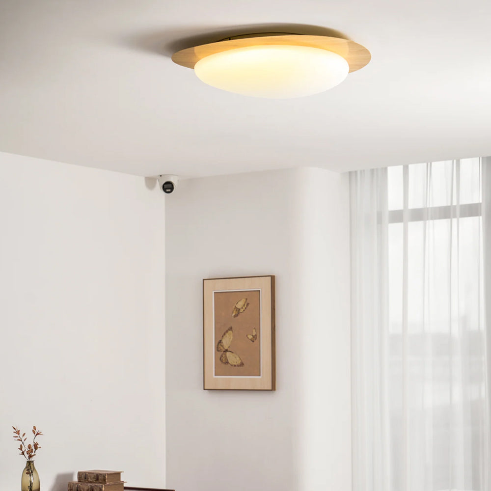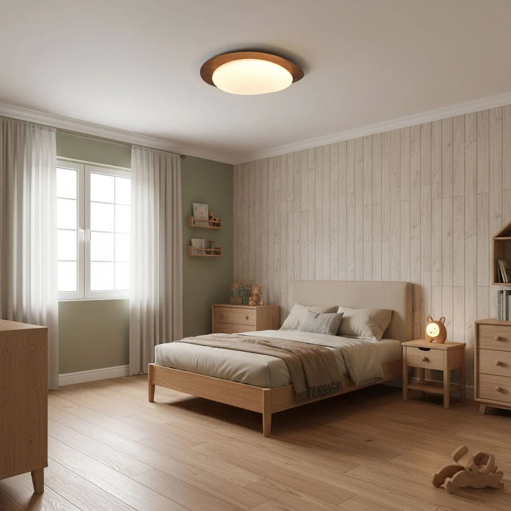 Modern Pebble-Shaped Walnut Veneer LED Ceiling Light