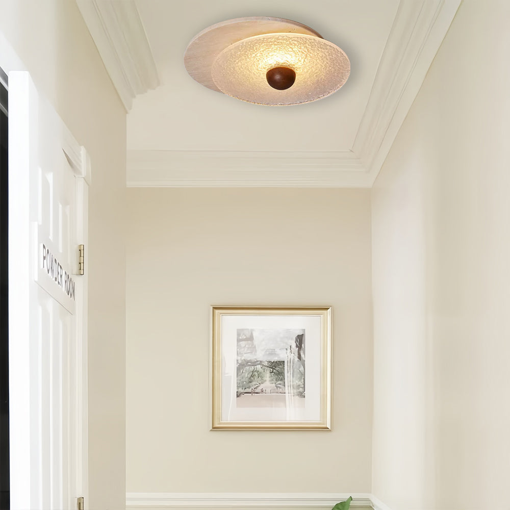 This ceiling lamp is a work of art that combines traditional travertine elements with modern design concepts. It uses natural travertine as the base material, and through exquisite craftsmanship, it is polished into a delicate and smooth surface, presenting a unique texture. This lamp adopts a solid wood and glass ceiling design, which not only ensures the uniform distribution of light sources, but also adds a warm and natural beauty to the entire space.
