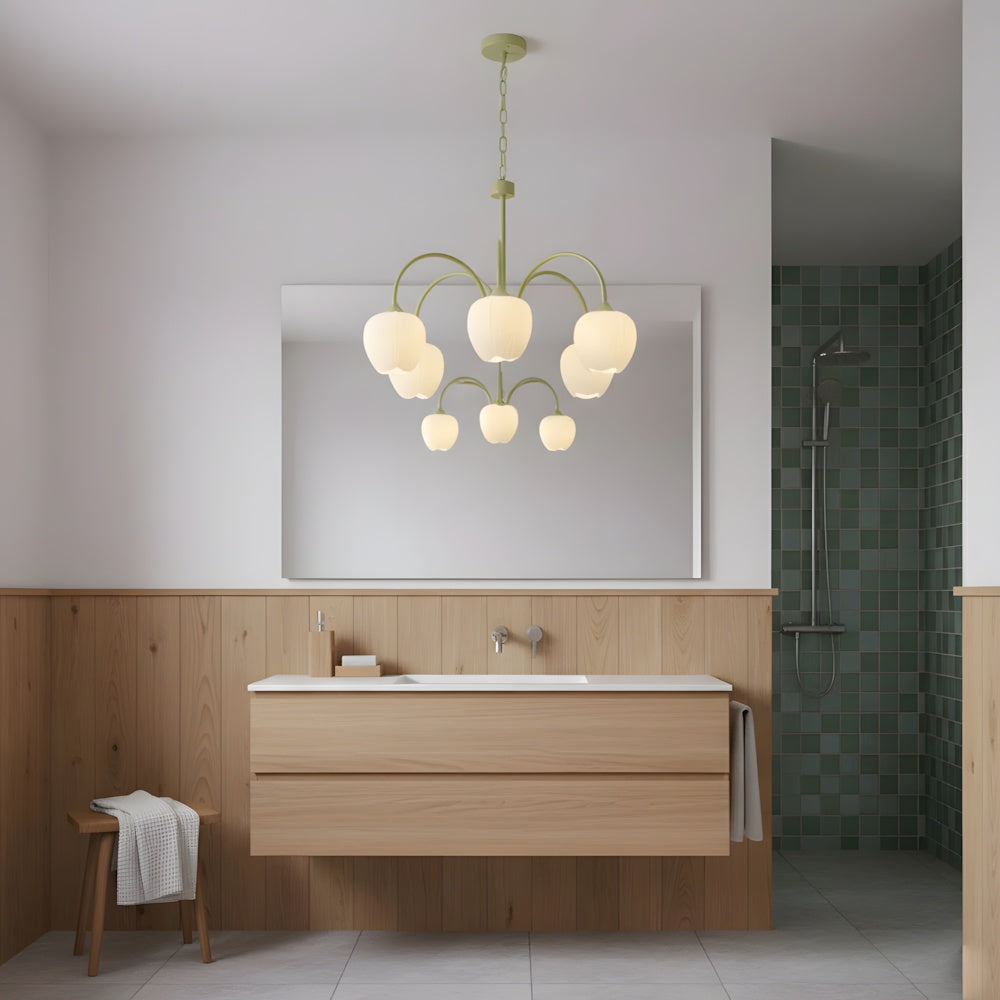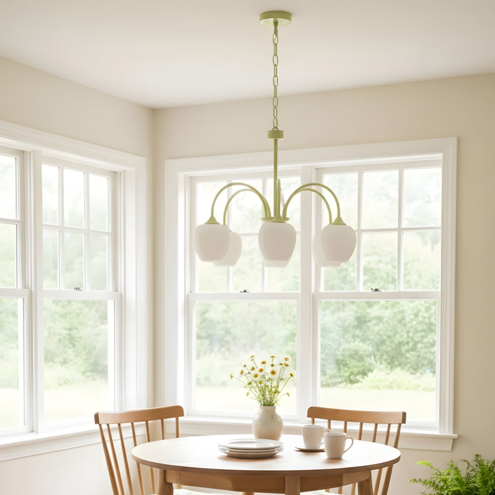 The Elegant Tulip Glass Chandelier reimagines Nordic simplicity through organic forms. Inspired by tulip blossoms, it diffuses a soft and natural glow—perfect for creating hygge in dining rooms or entryways. With its clean lines and minimalist elegance, this piece brings timeless tranquility to your space.