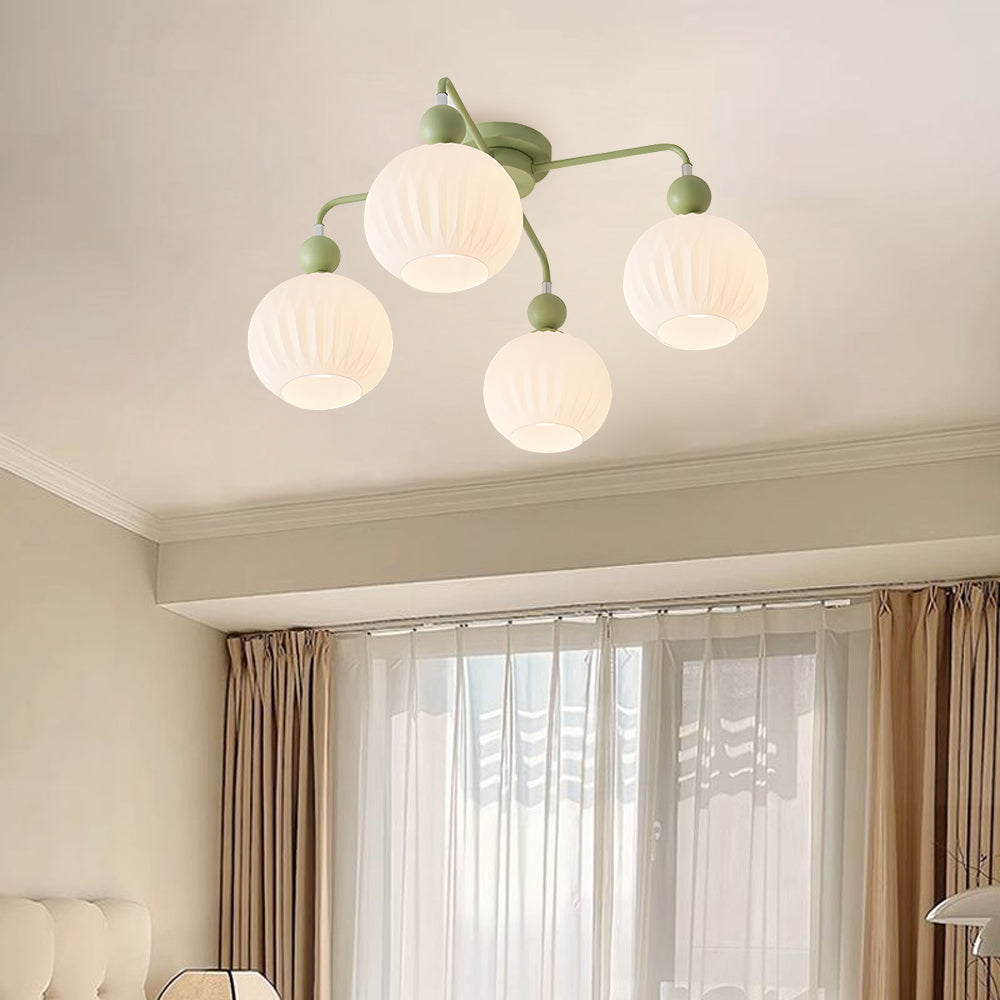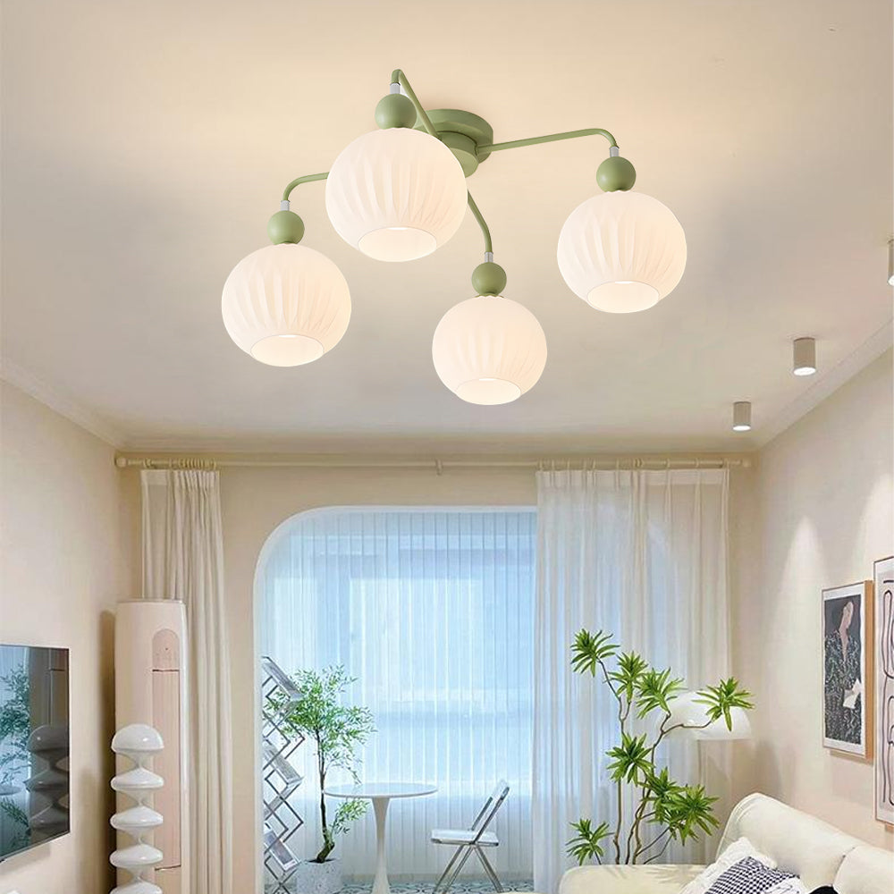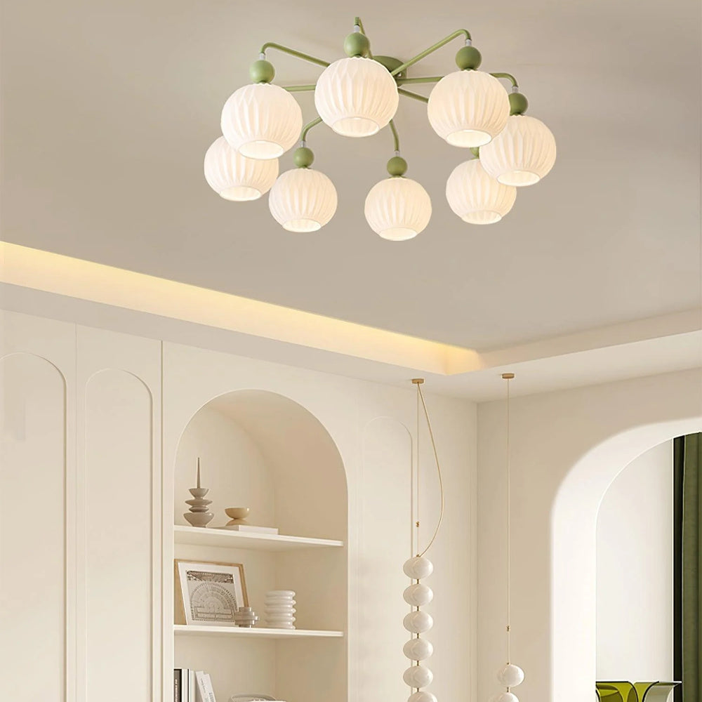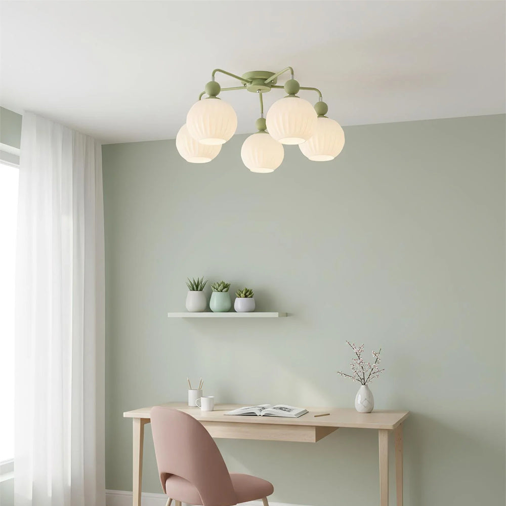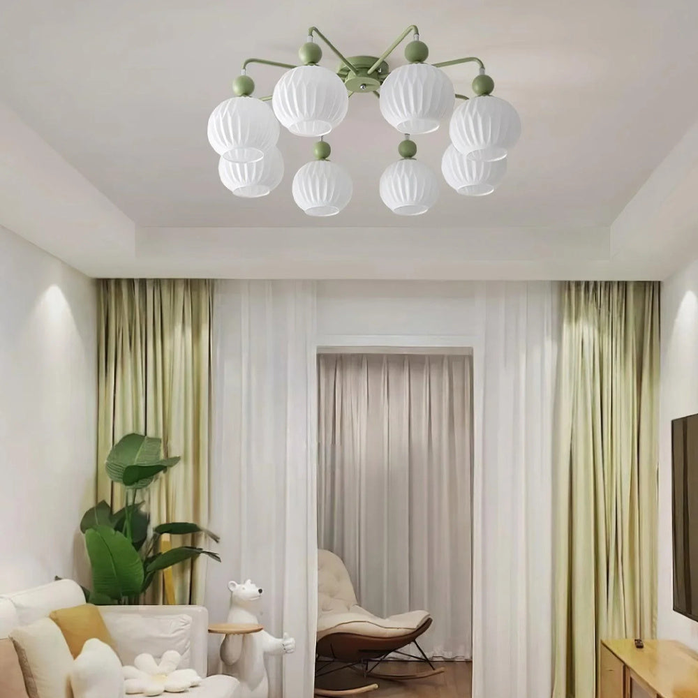 A sophisticated ceiling light featuring a unique pumpkin-shaped shade in subtle matcha green. Crafted from premium materials, this eye-catching piece adds a touch of timeless luxury to any space.
