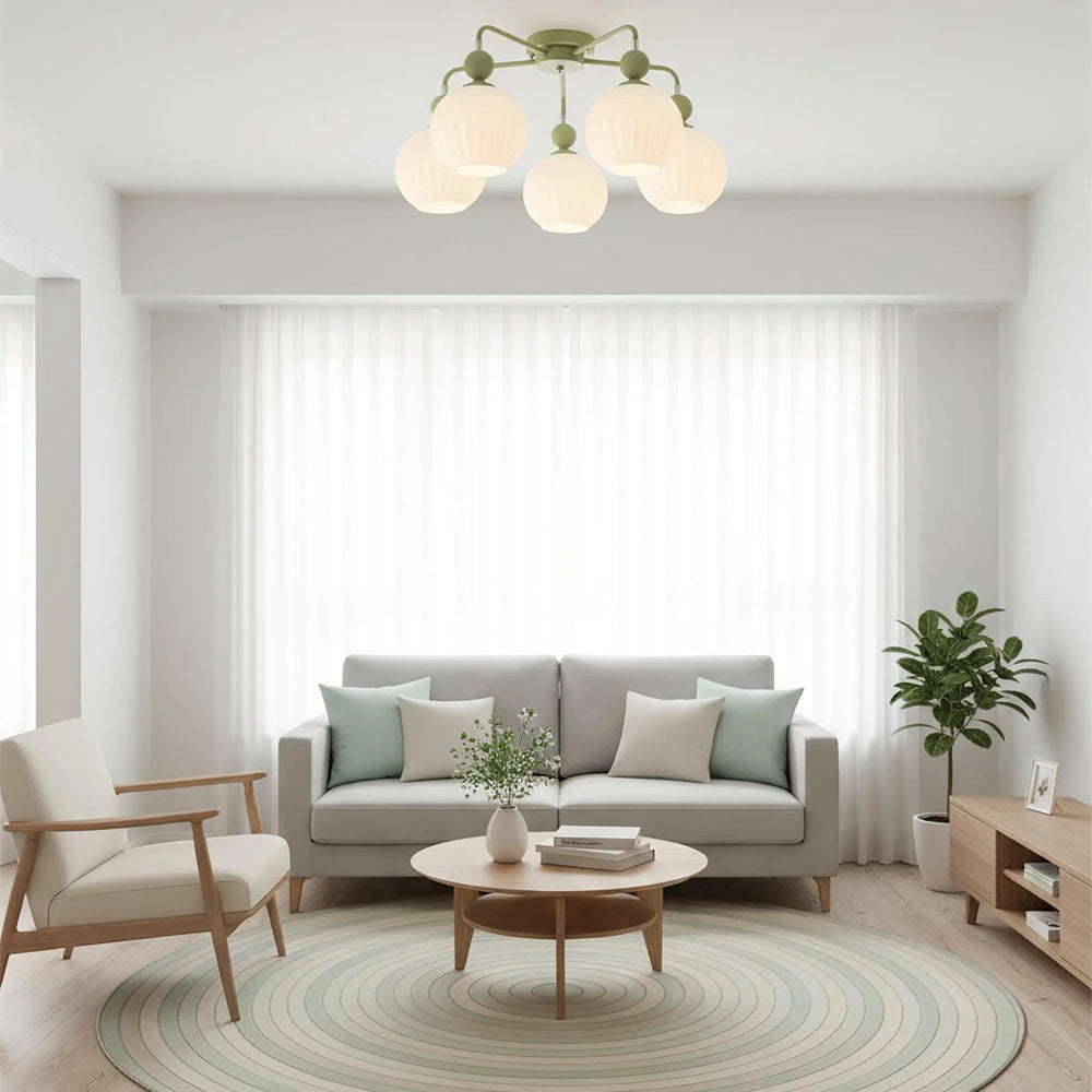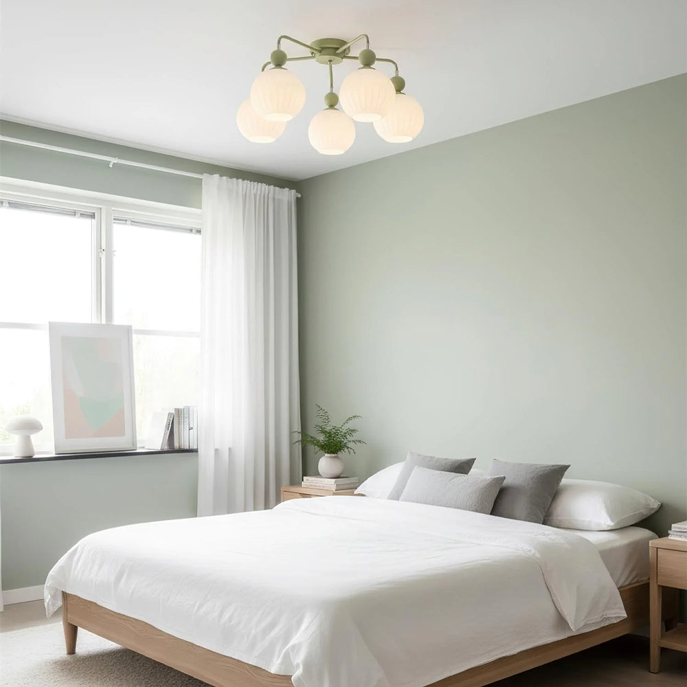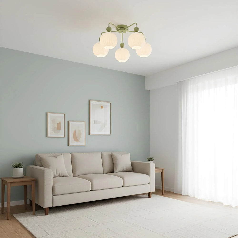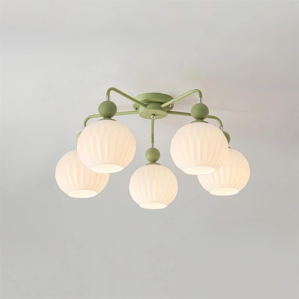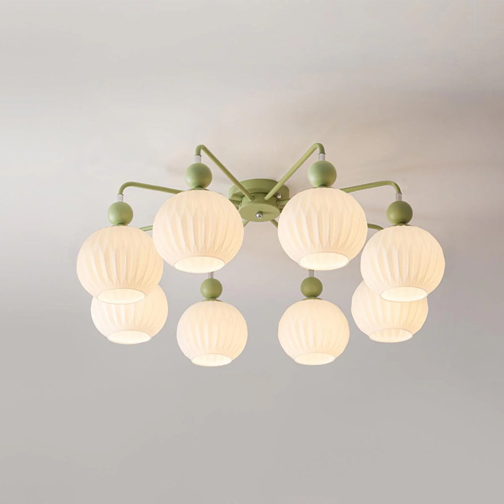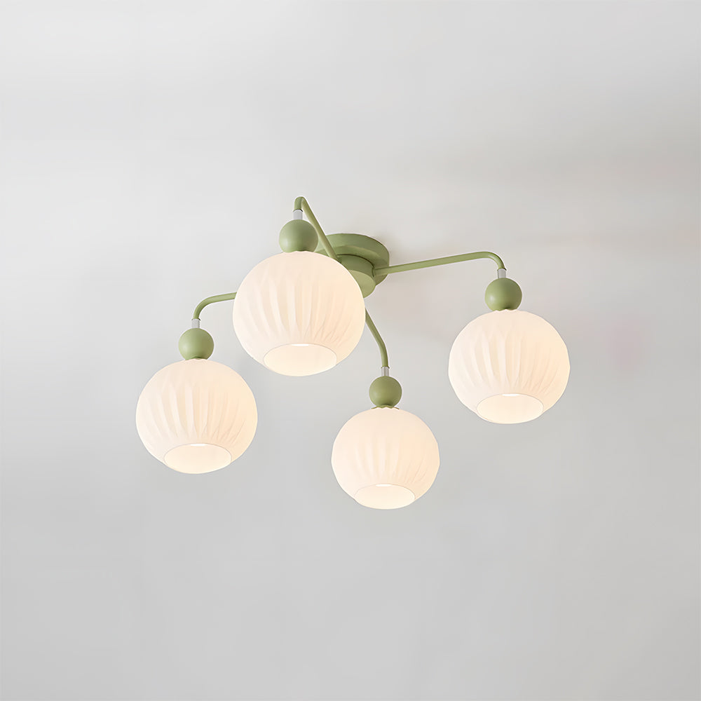 A sophisticated ceiling light featuring a unique pumpkin-shaped shade in subtle matcha green. Crafted from premium materials, this eye-catching piece adds a touch of timeless luxury to any space.