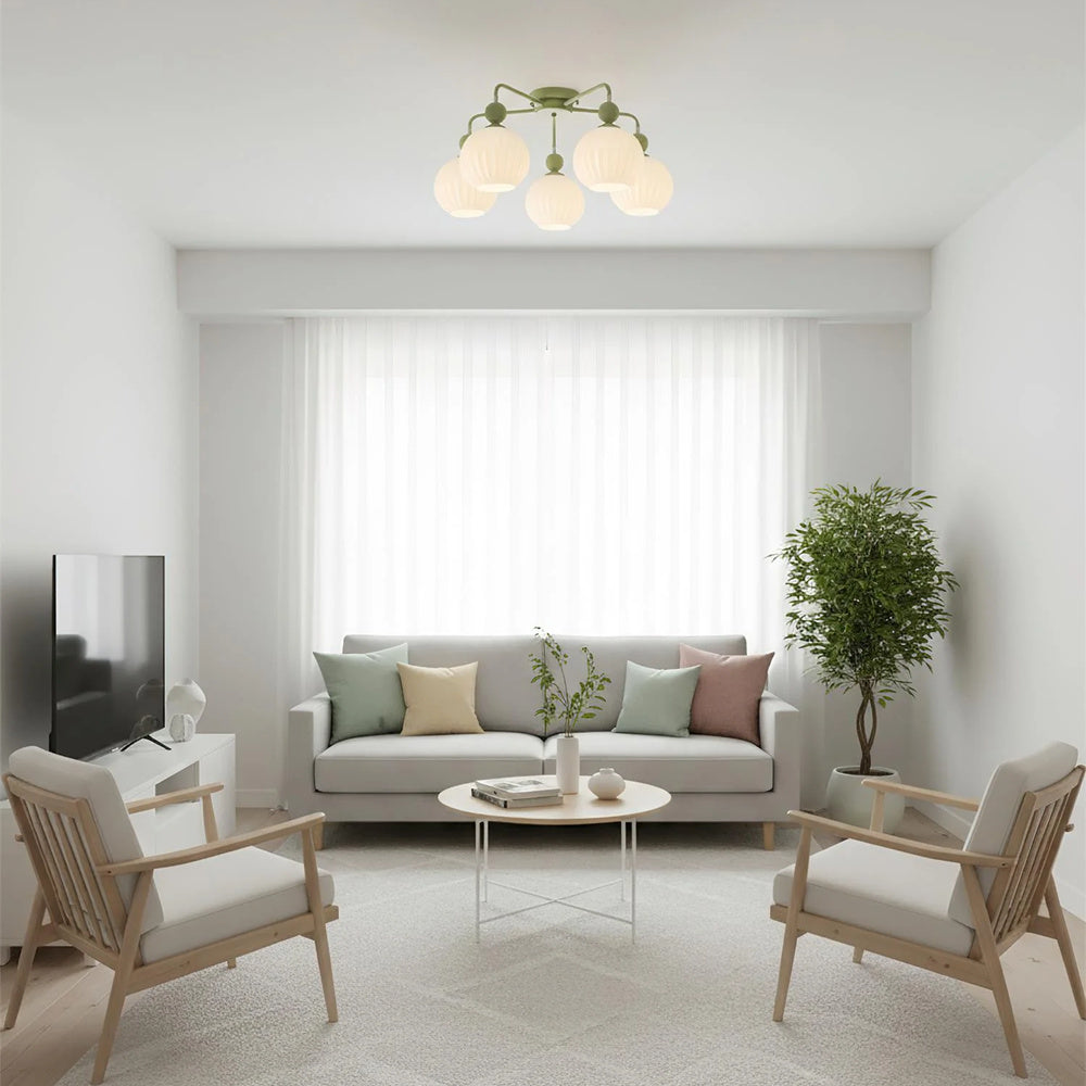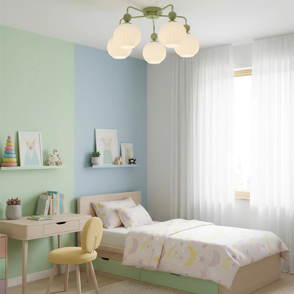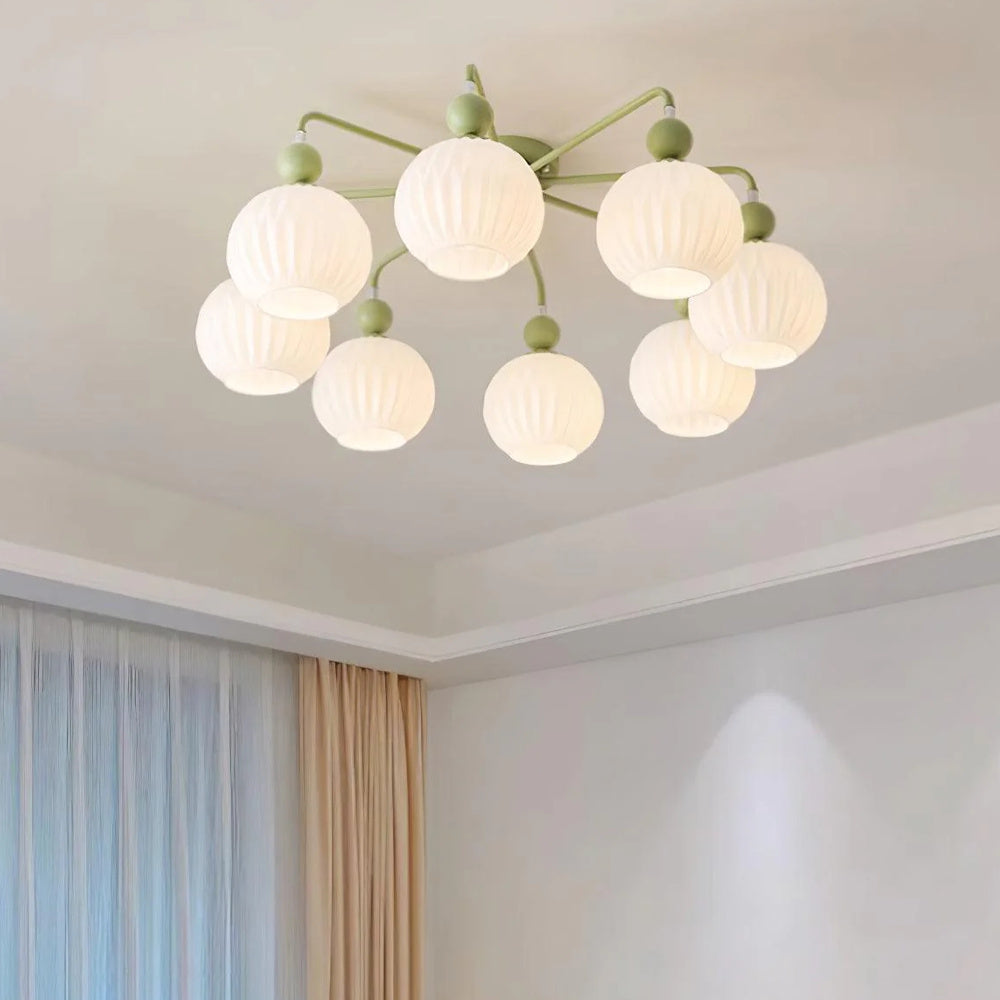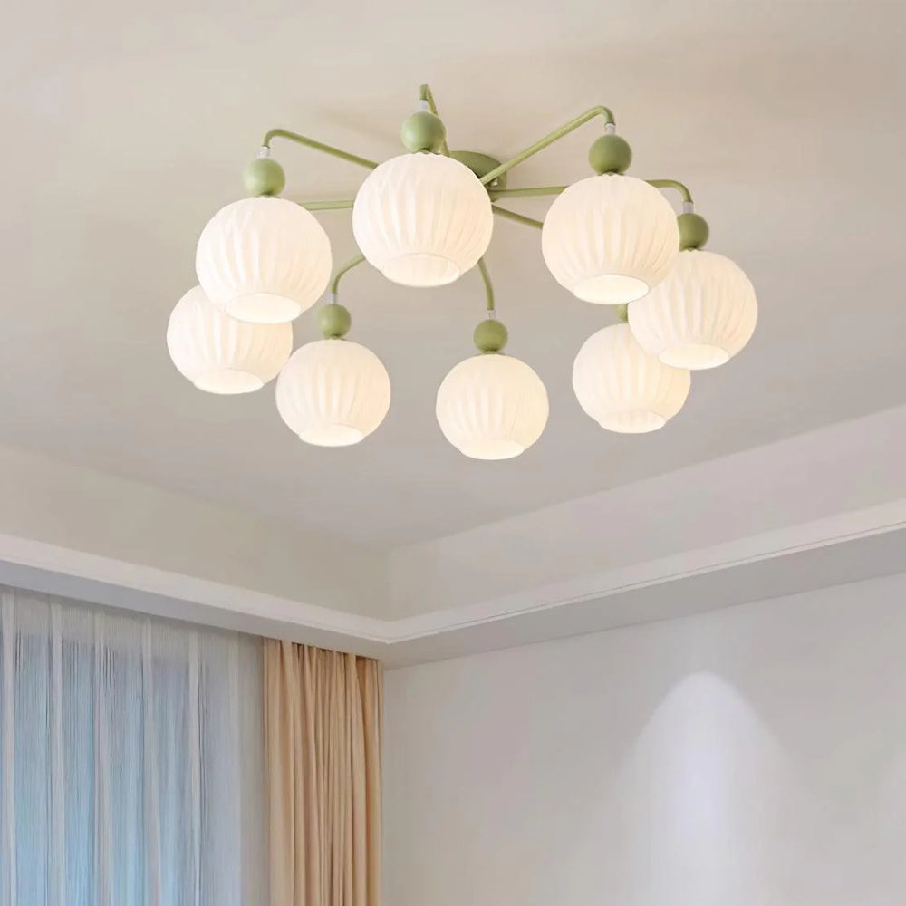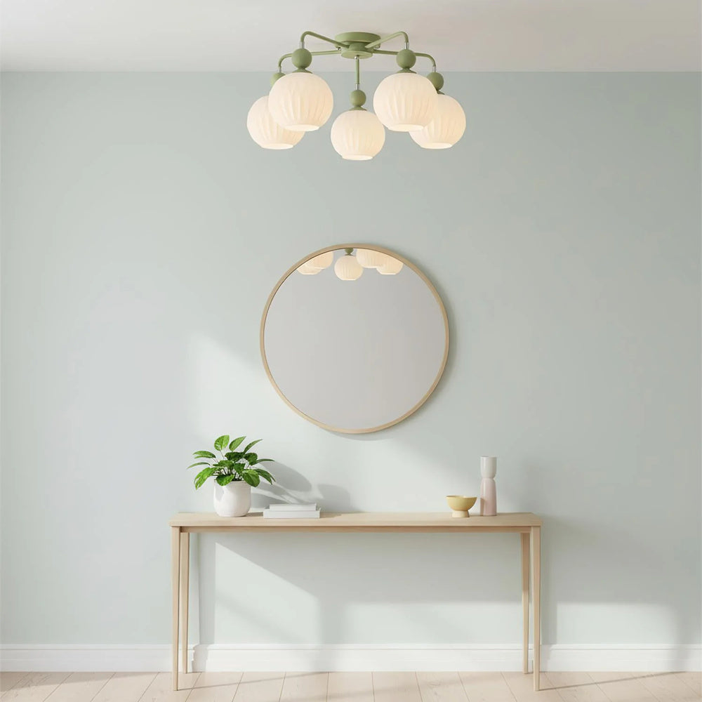 A sophisticated ceiling light featuring a unique pumpkin-shaped shade in subtle matcha green. Crafted from premium materials, this eye-catching piece adds a touch of timeless luxury to any space.