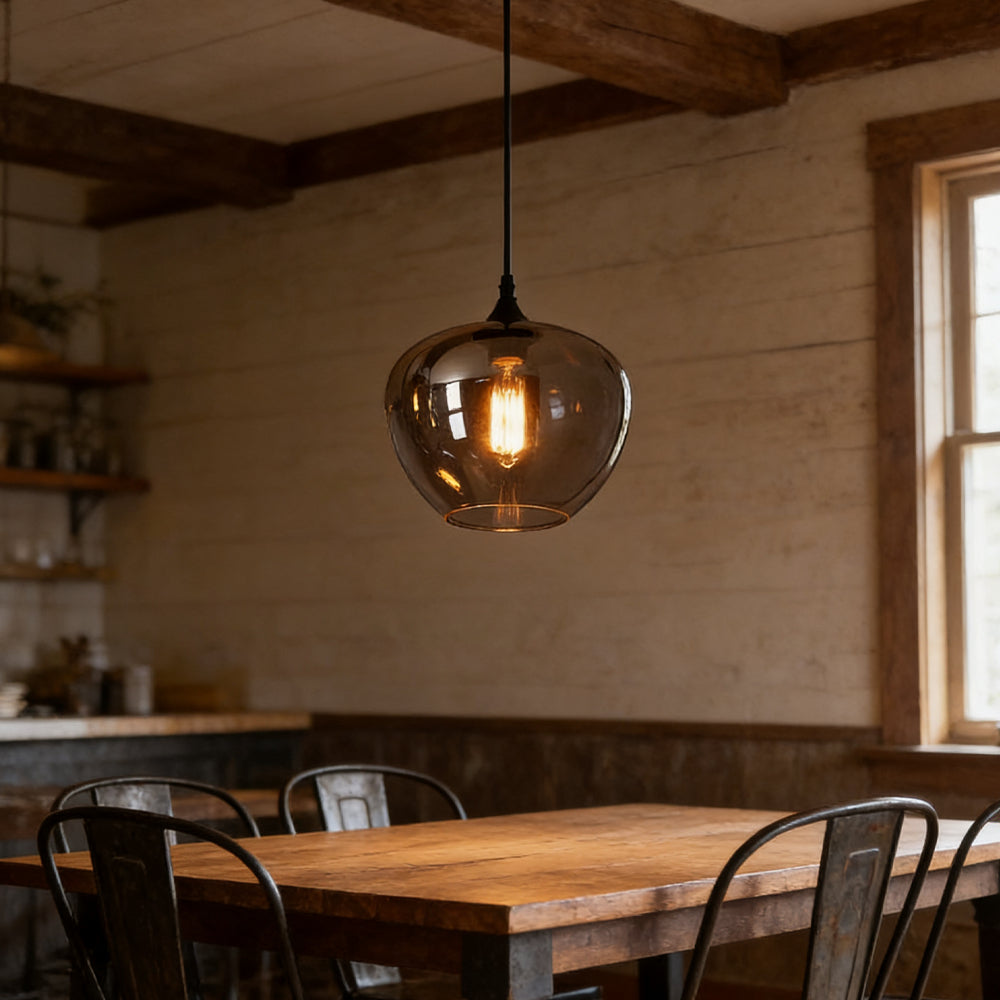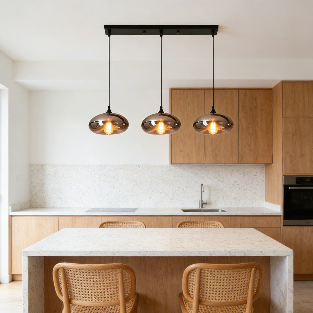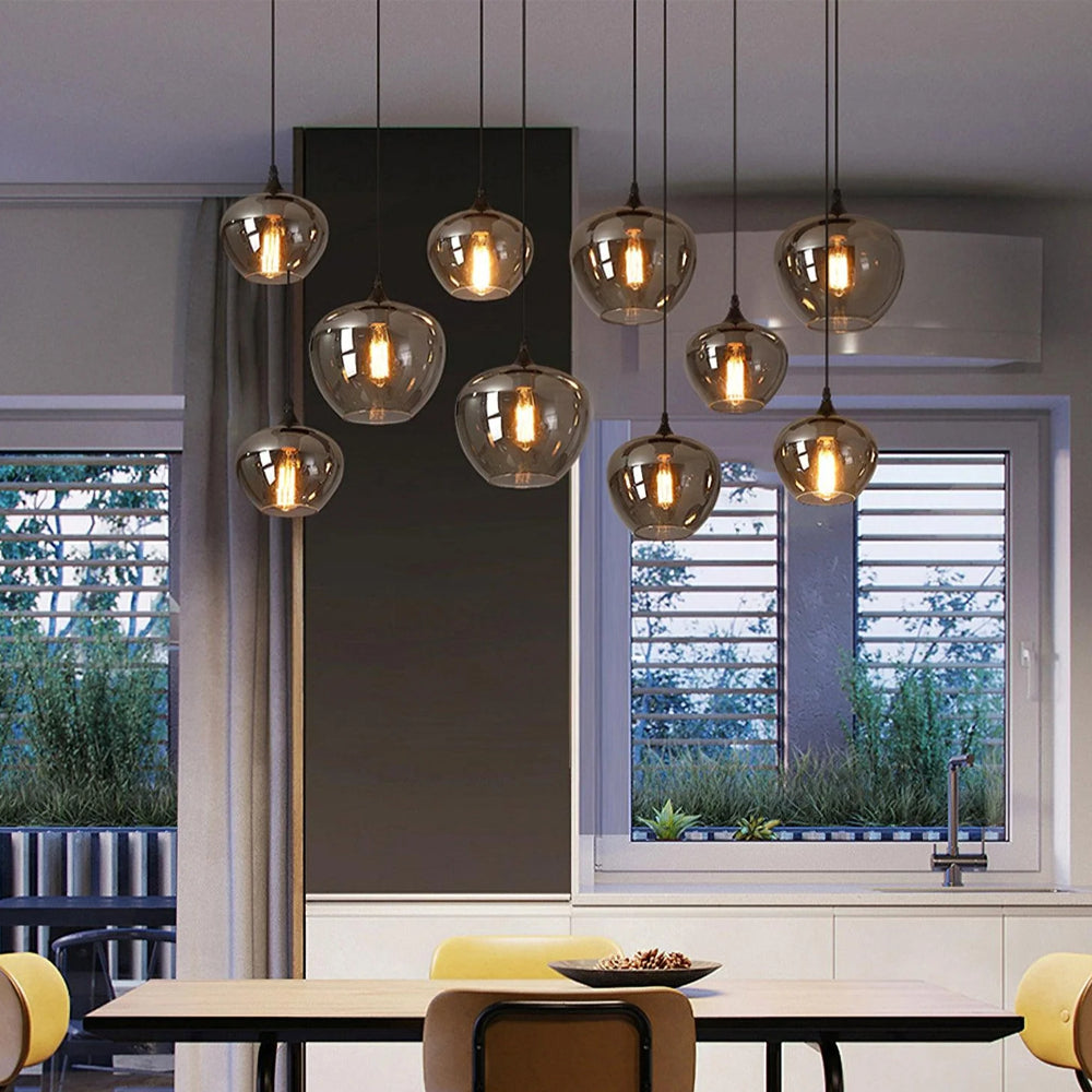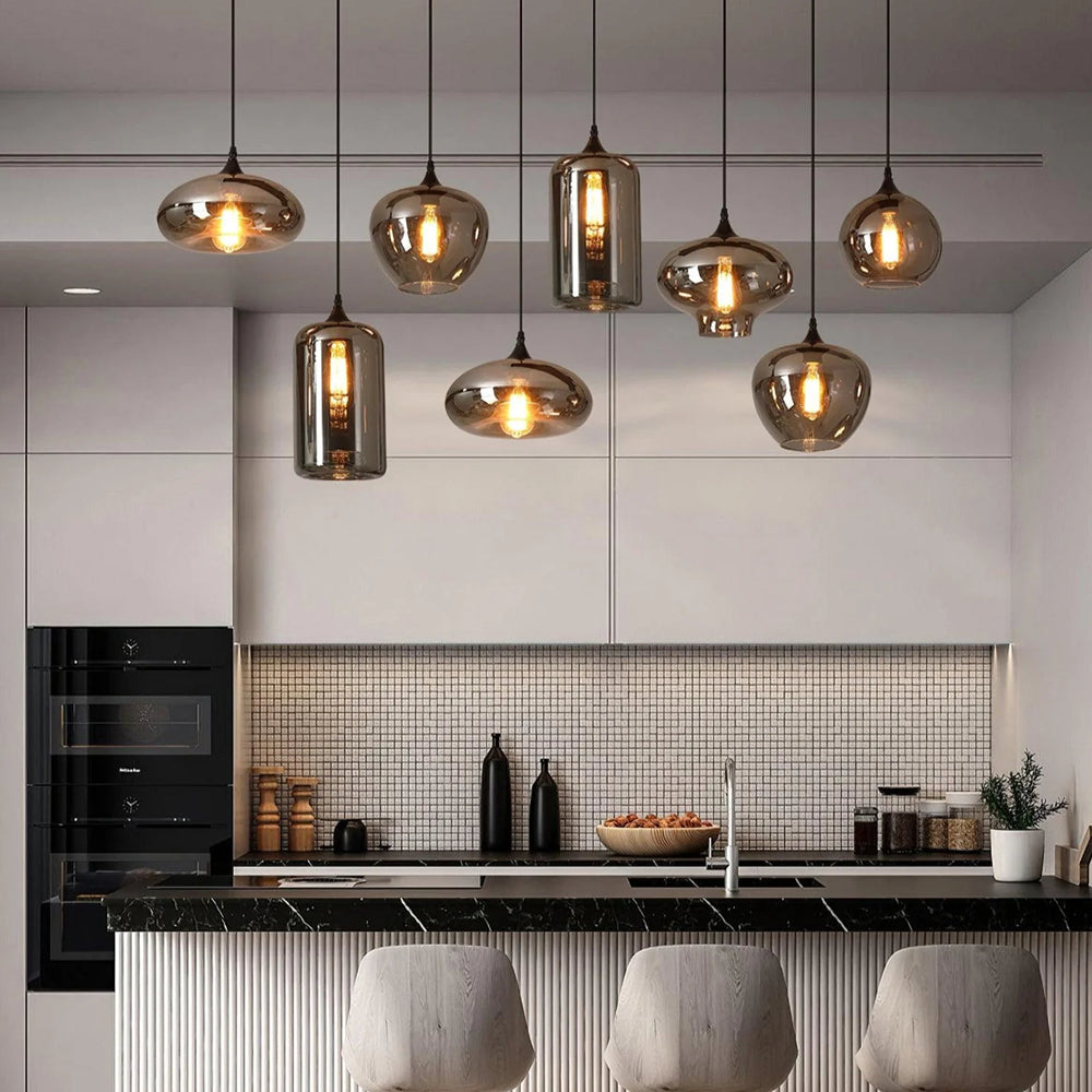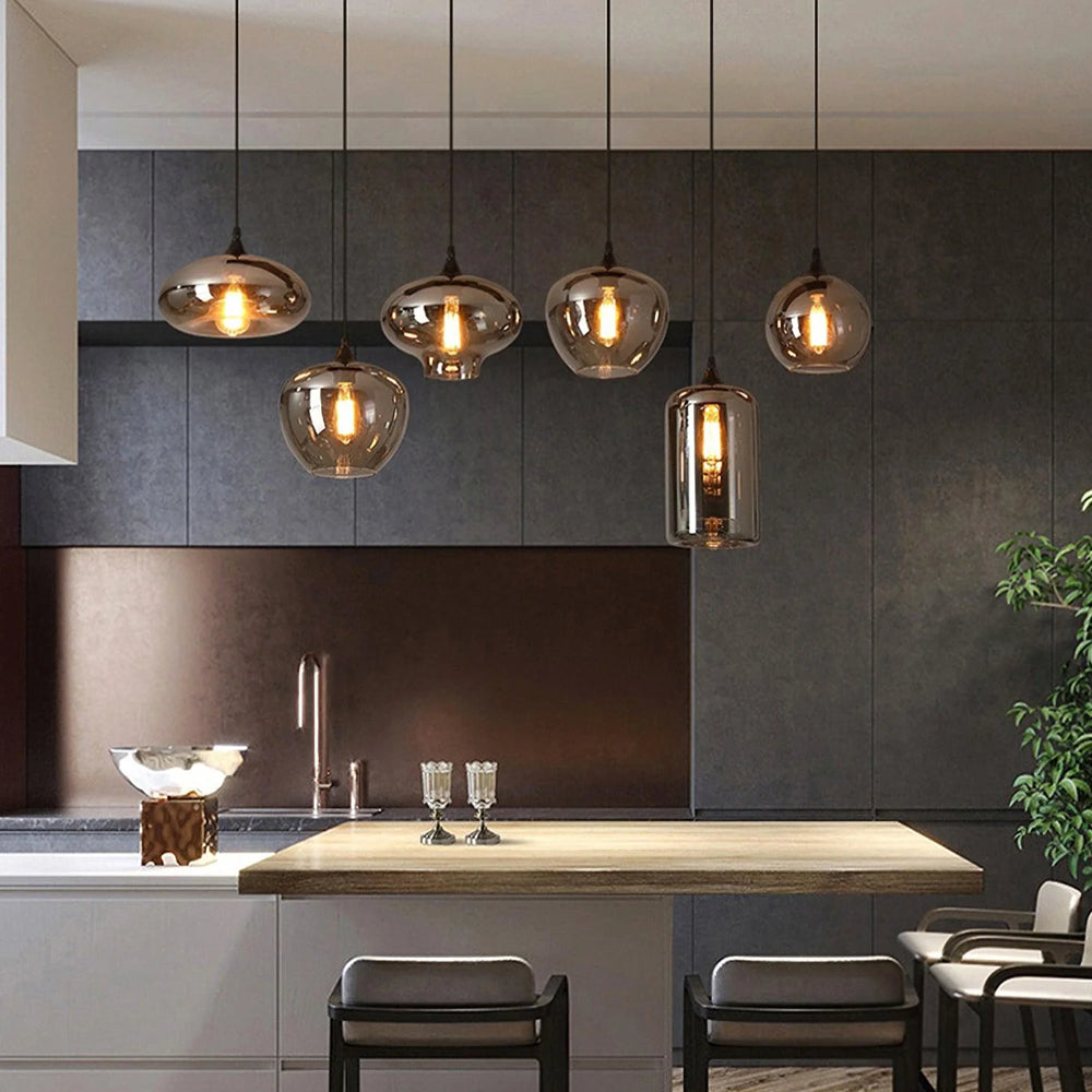 Simple Nordic Smoked Glass LED Kitchen Pendant Light