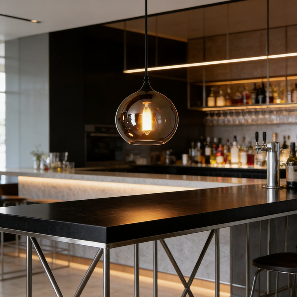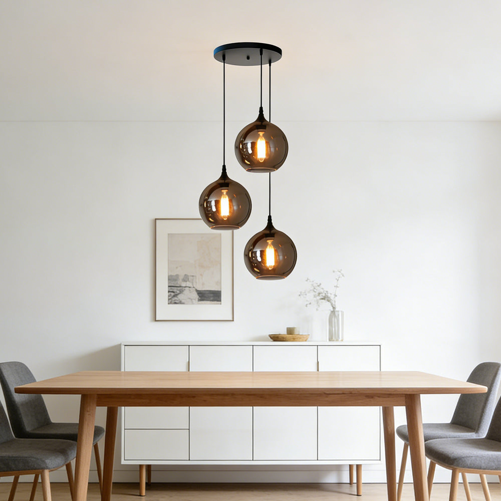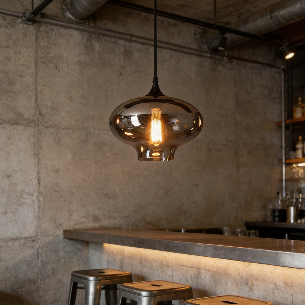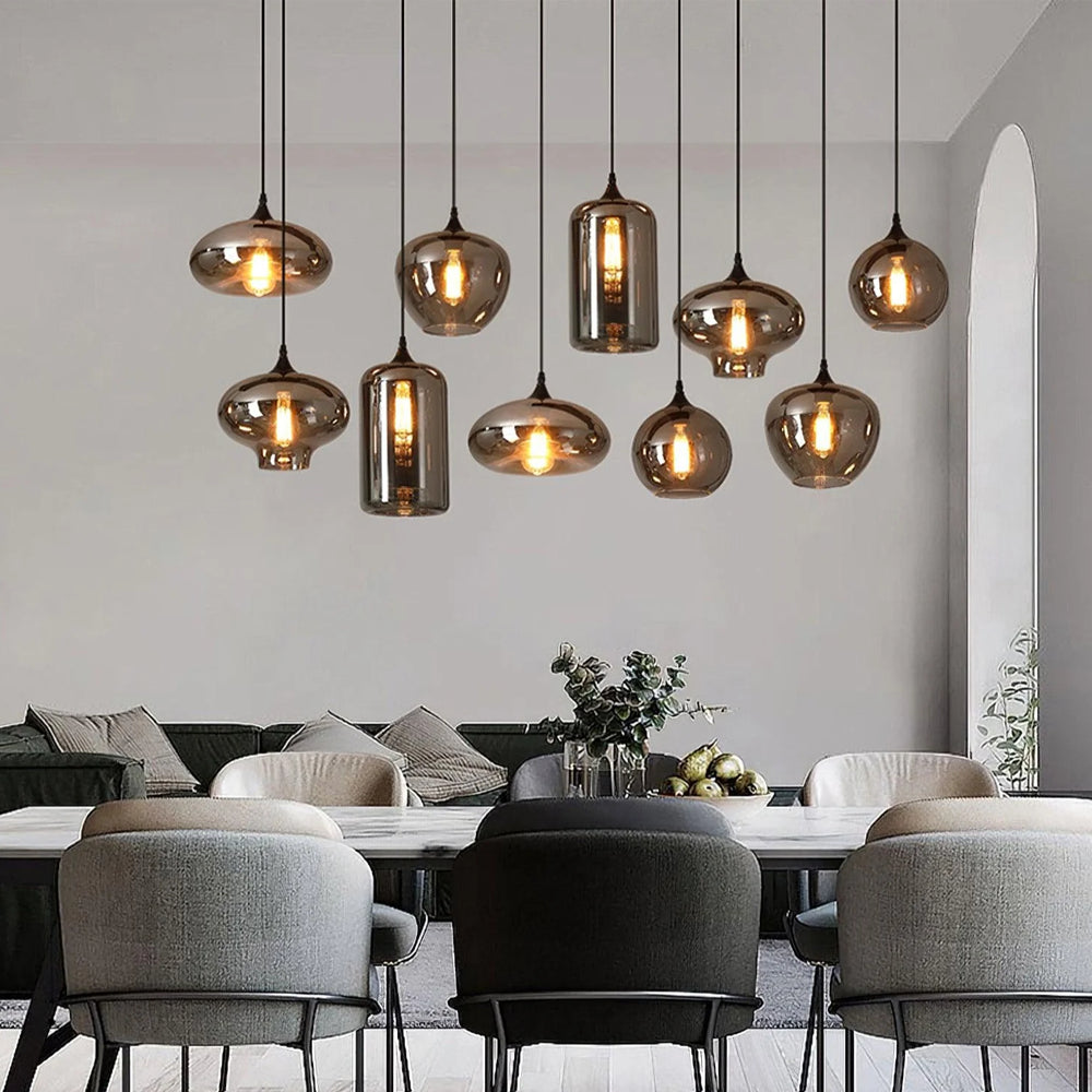 Simple Nordic Smoked Glass LED Kitchen Pendant Light