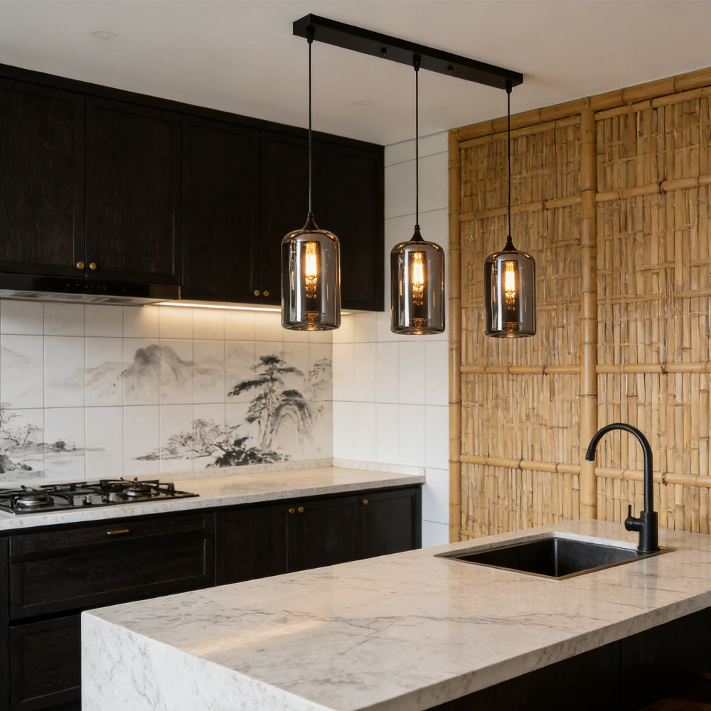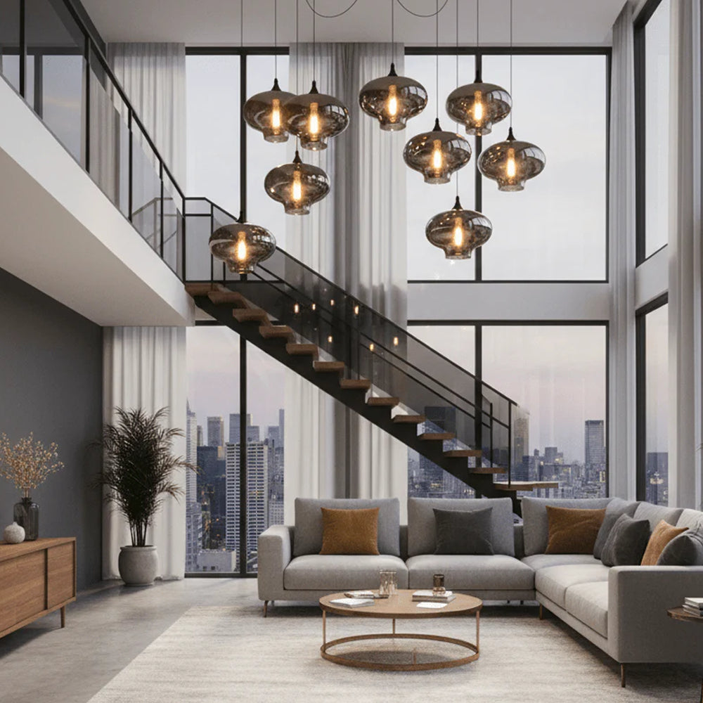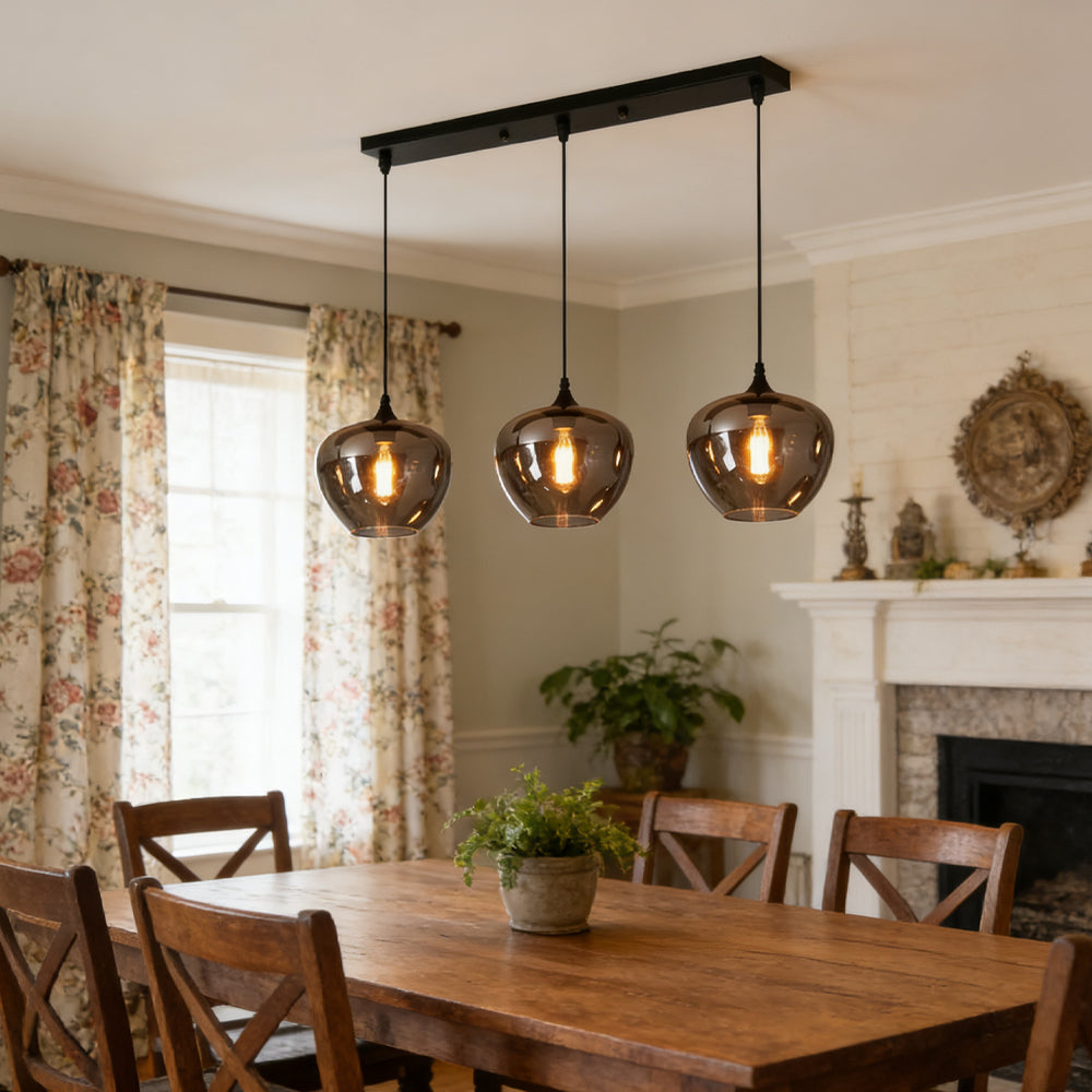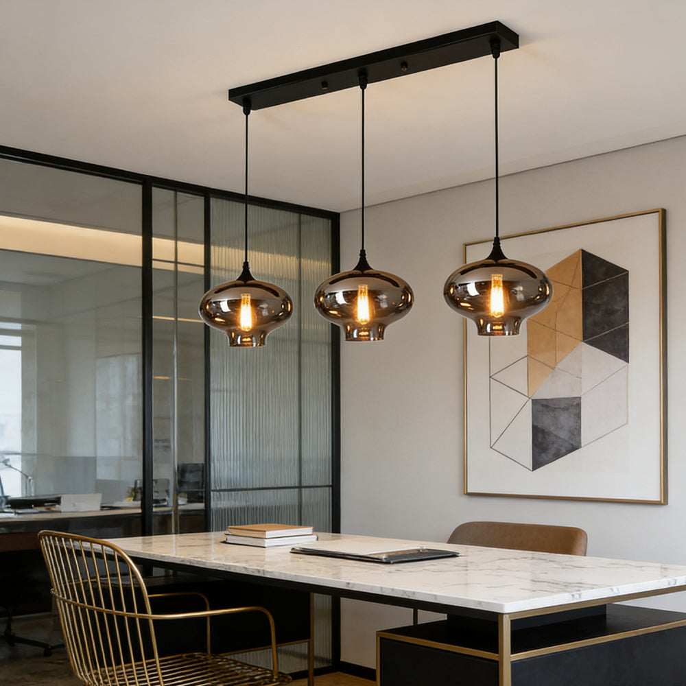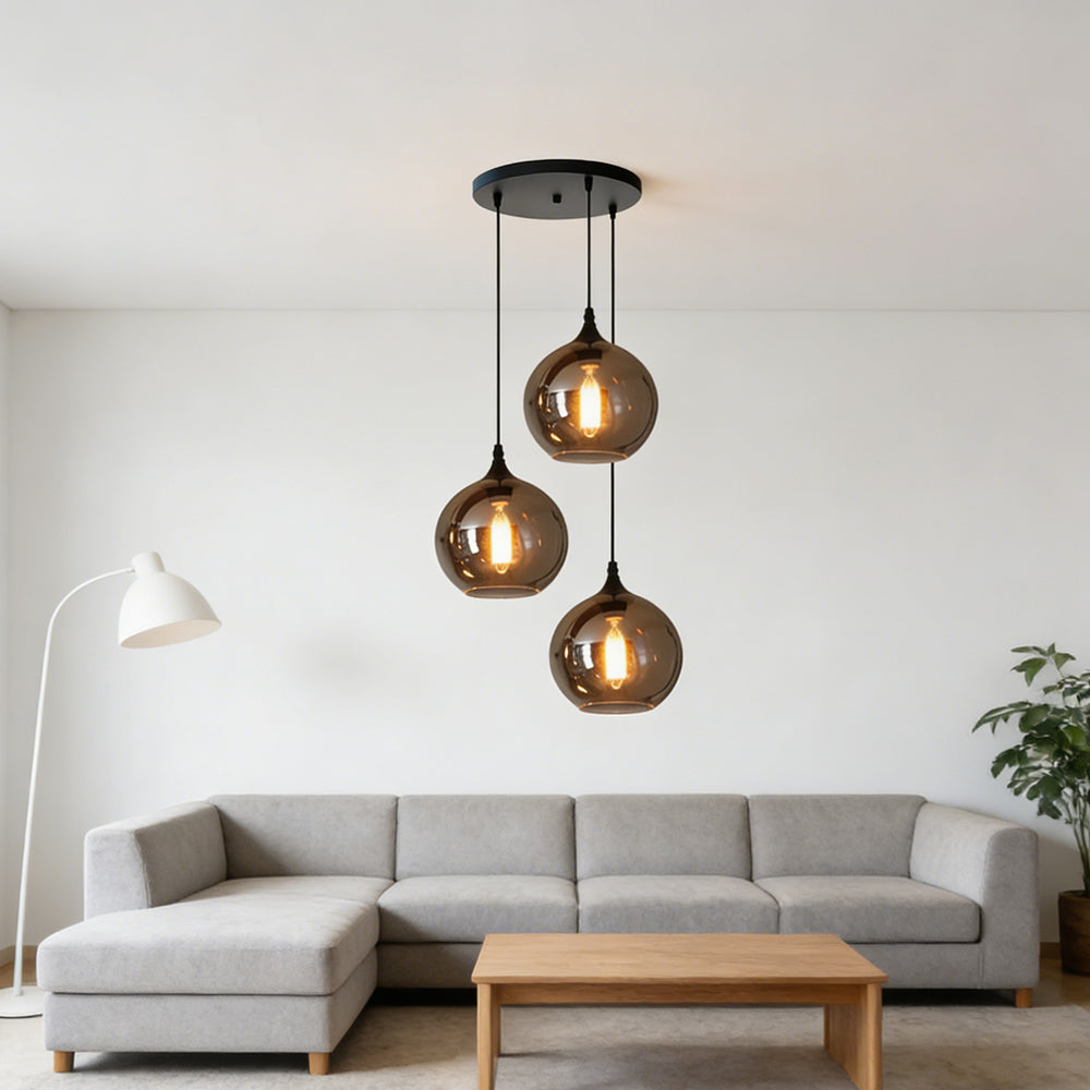 Simple Nordic Smoked Glass LED Kitchen Pendant Light