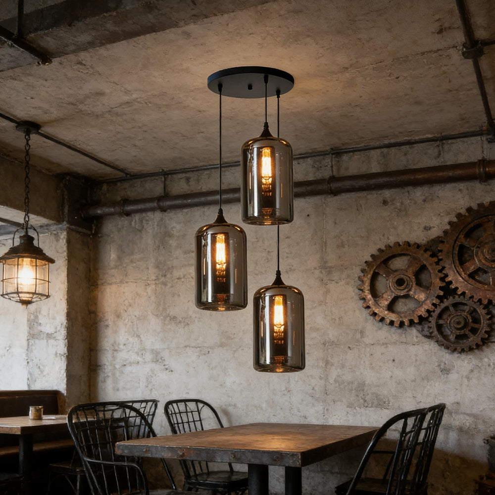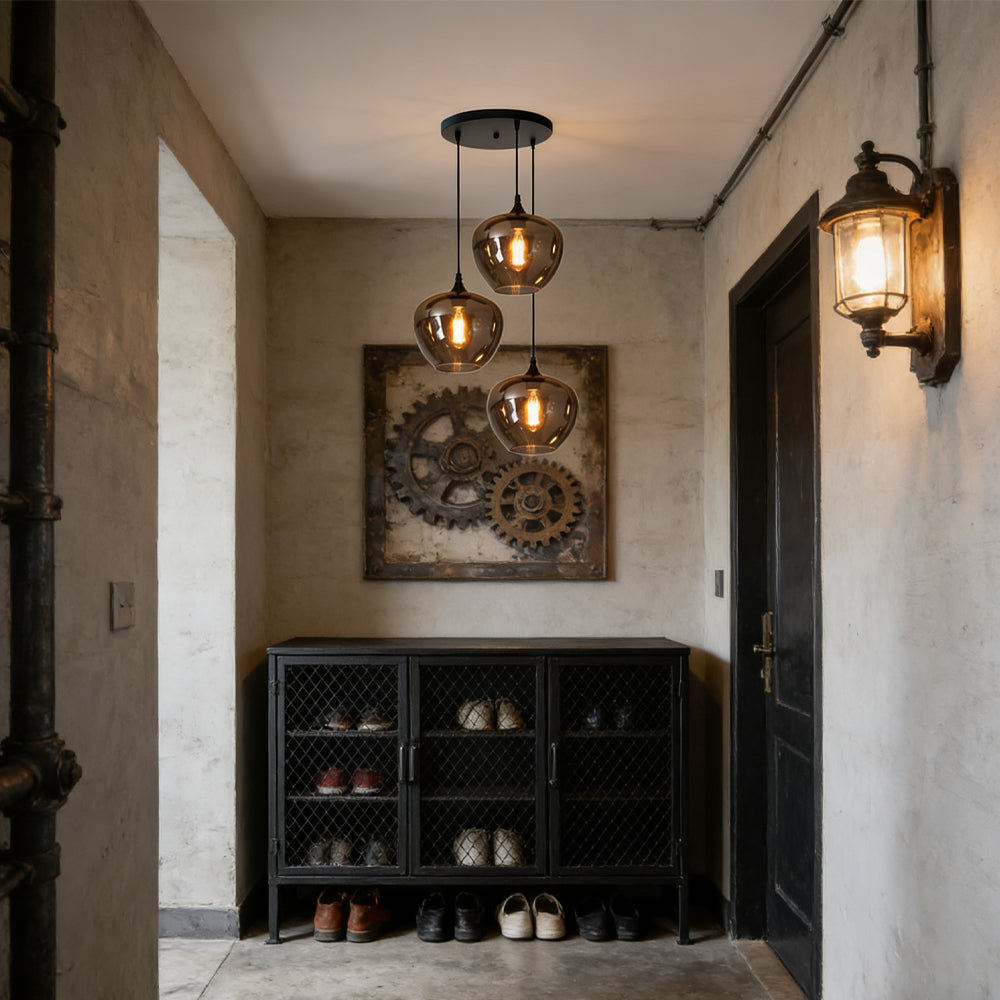 Vintage Rustic Industrial Farmhouse Hanging Glass Pendant Light