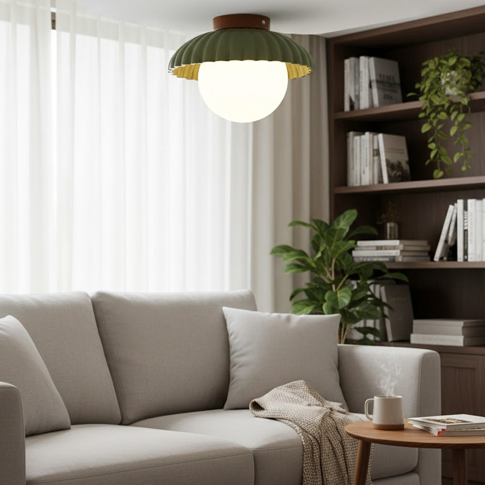 With its graceful bud-shaped glass shade and sturdy iron base, this ceiling light combines elegant design with durability. The cream finish emits a soft, warm glow, adding a refined and inviting atmosphere to your hallway.