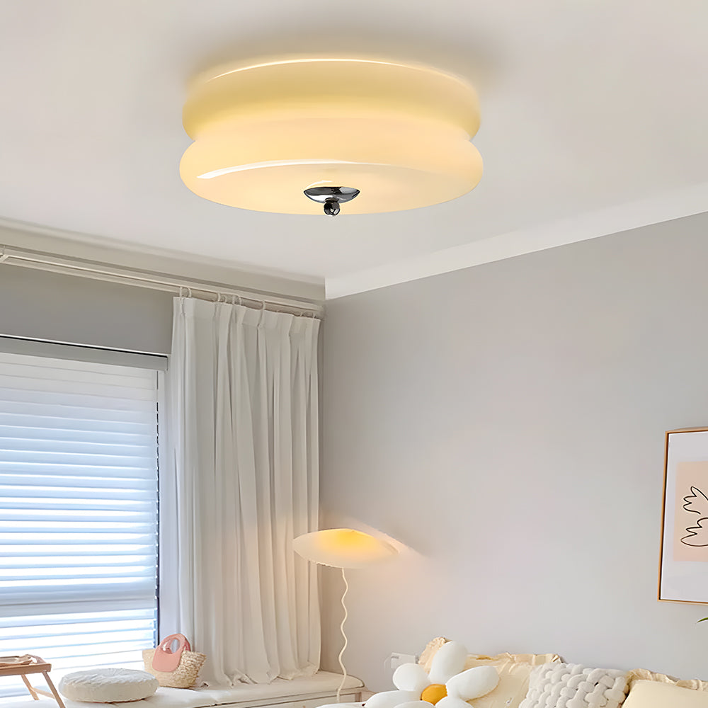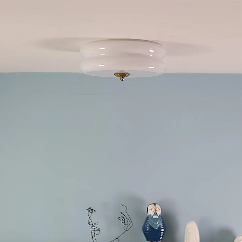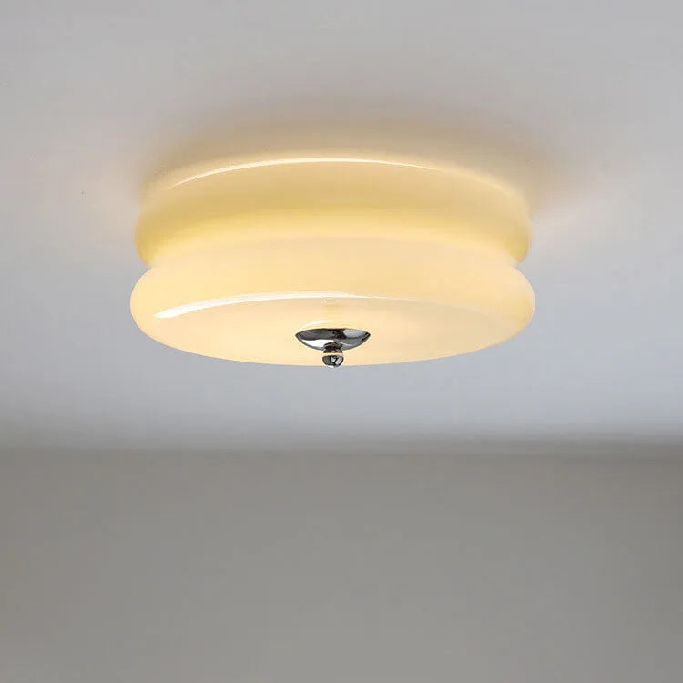 Modern Cream Round Ceiling Lamp Bauhaus Milky Glass Lighting