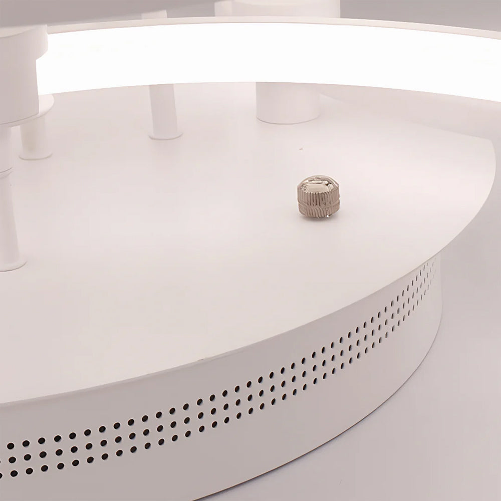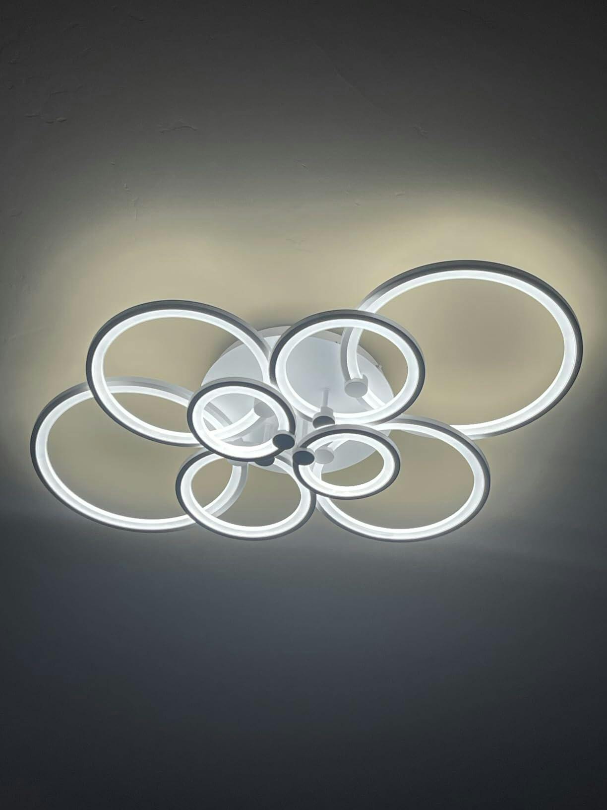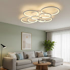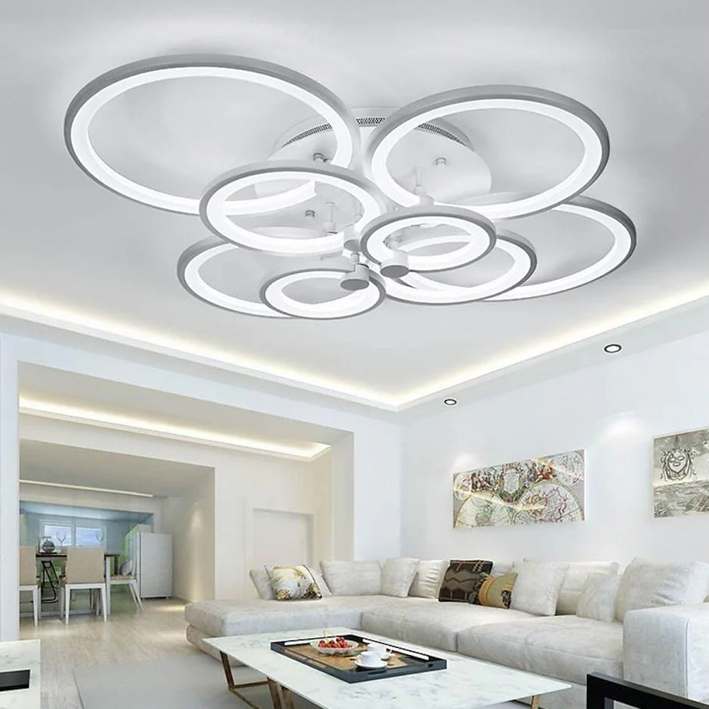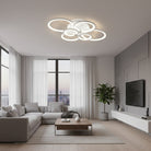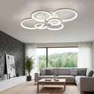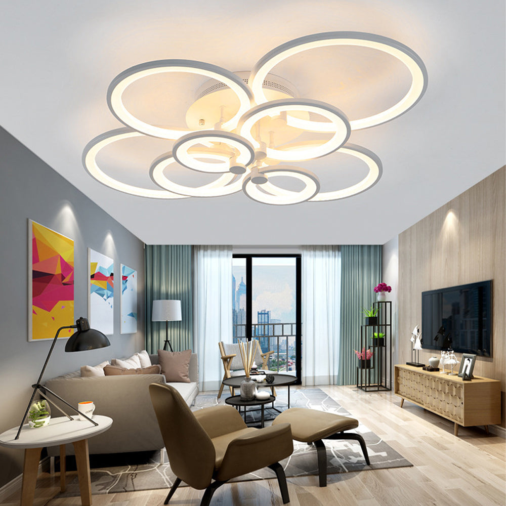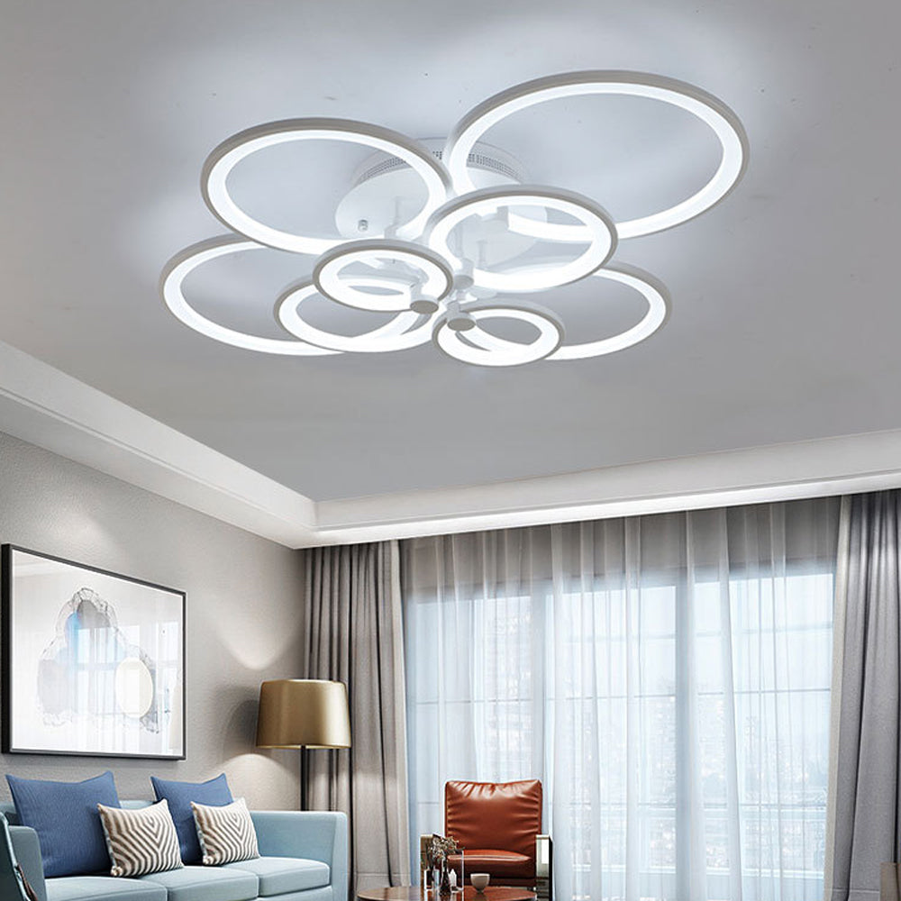 This modern semi-flush mount light features overlapping circular rings for a sculptural silhouette. Crafted from premium metal and acrylic, it offers a perfect blend of durability and contemporary style, ideal for living rooms, bedrooms, and hallways.
