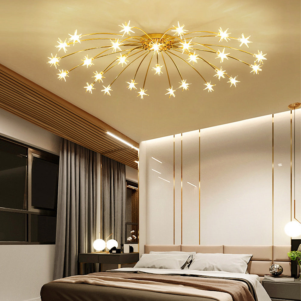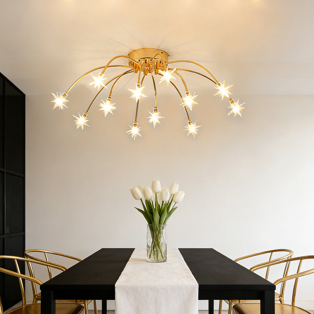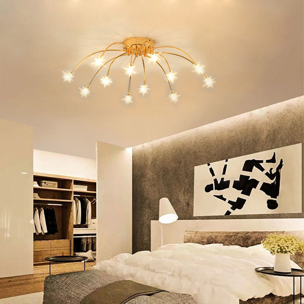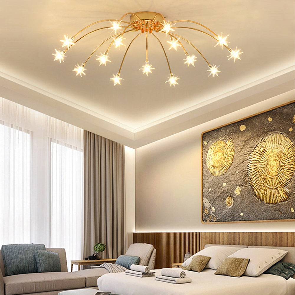 Personalized Art Deco Starry Metal Glass LED Flush Mount Ceiling Light