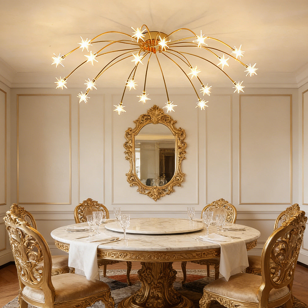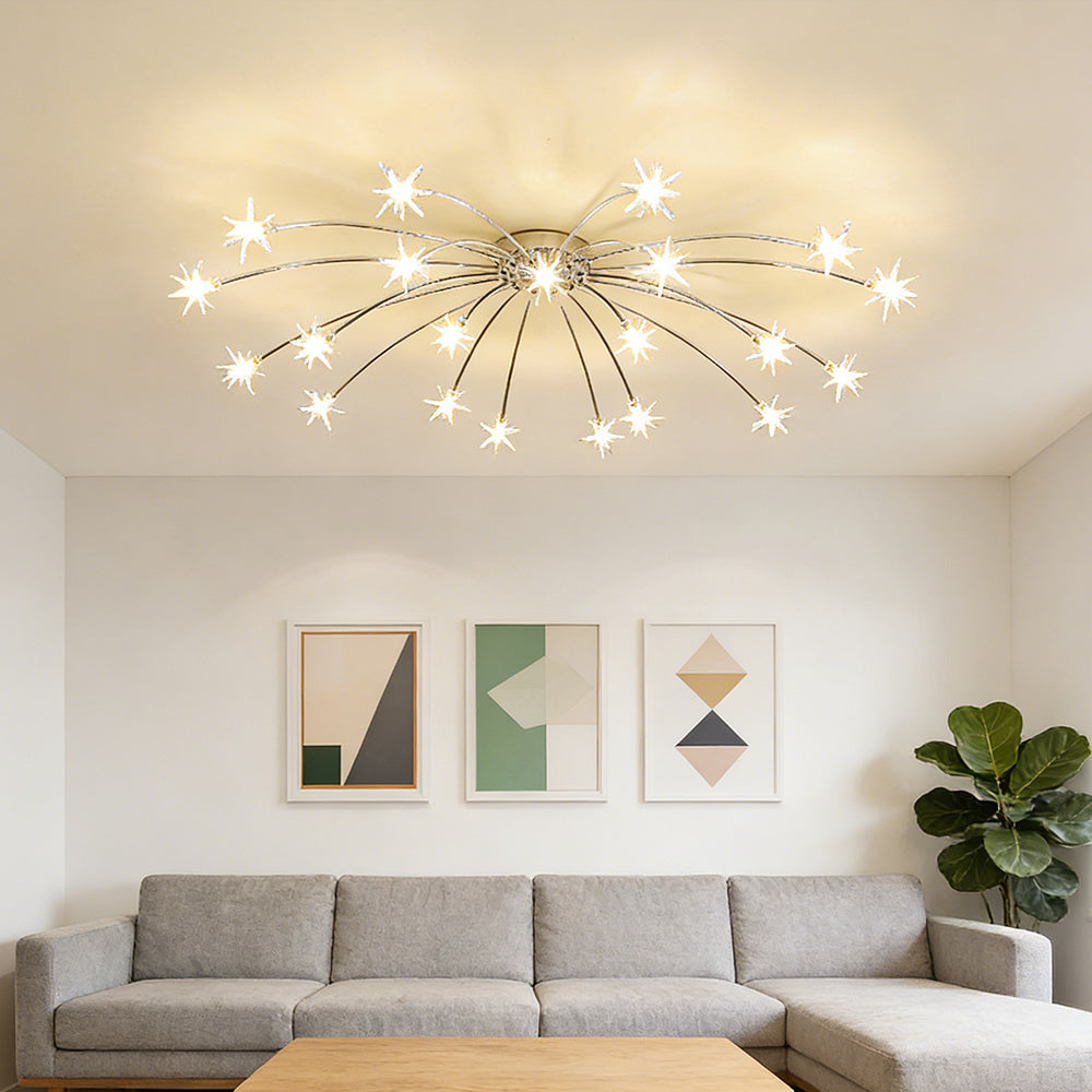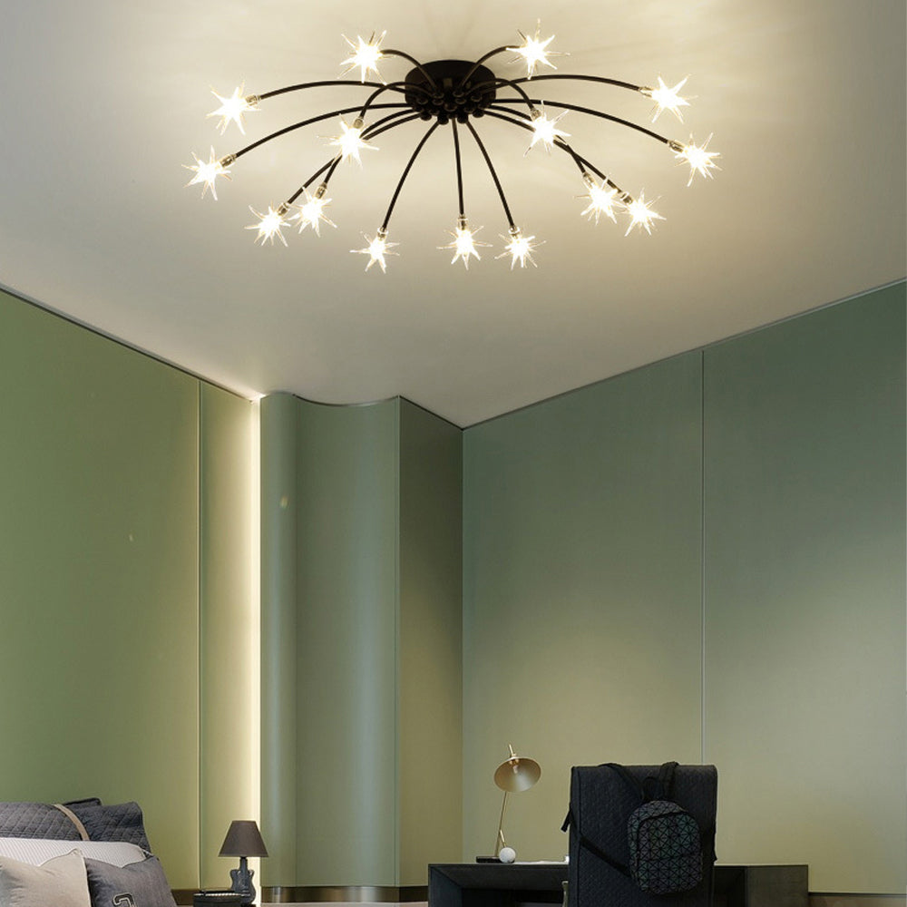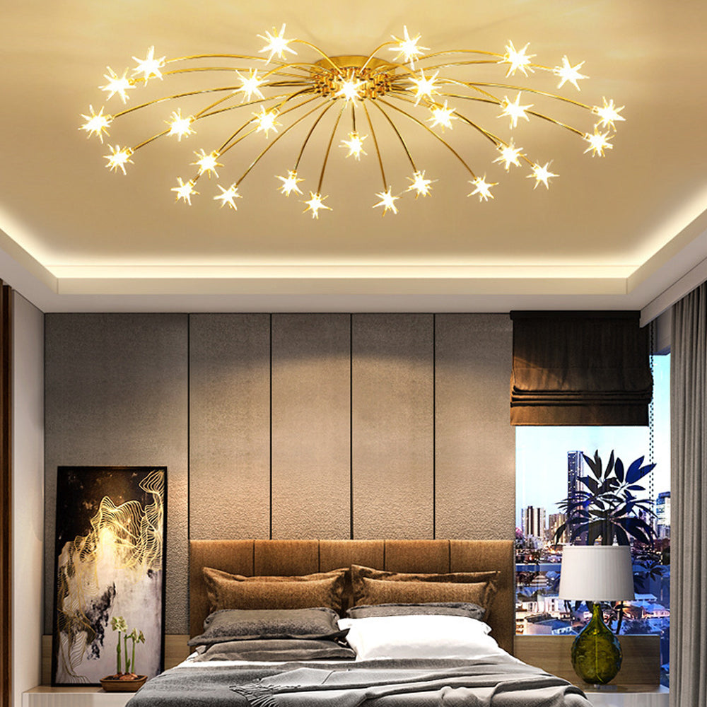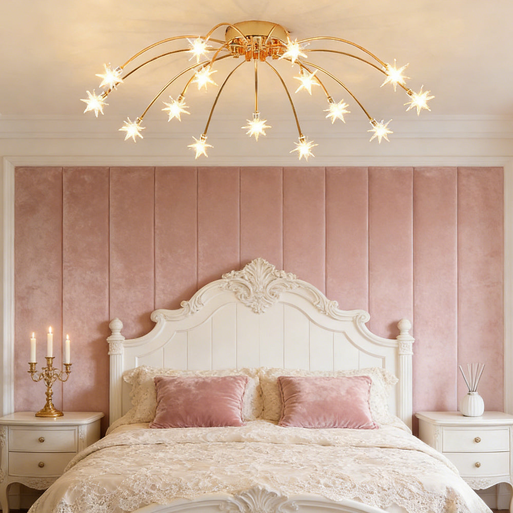 Personalized Art Deco Starry Metal Glass LED Flush Mount Ceiling Light